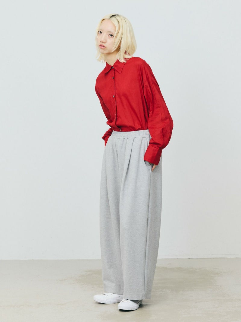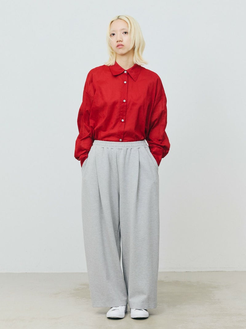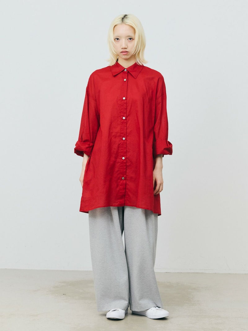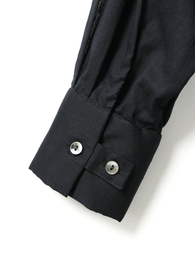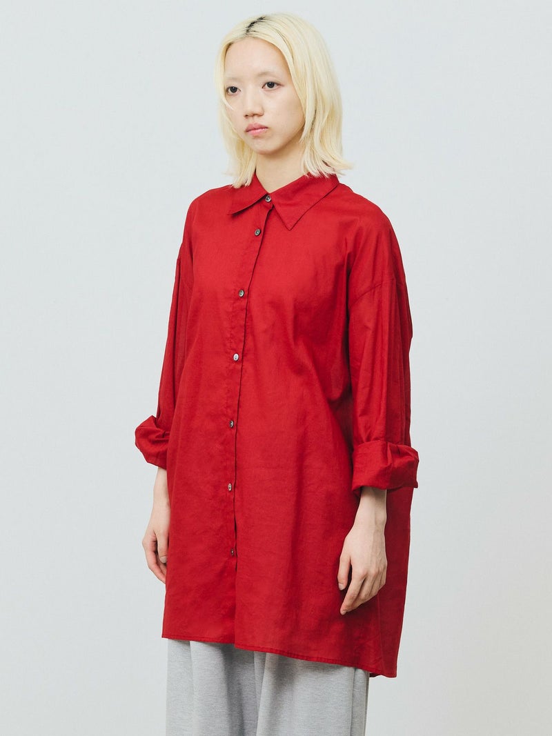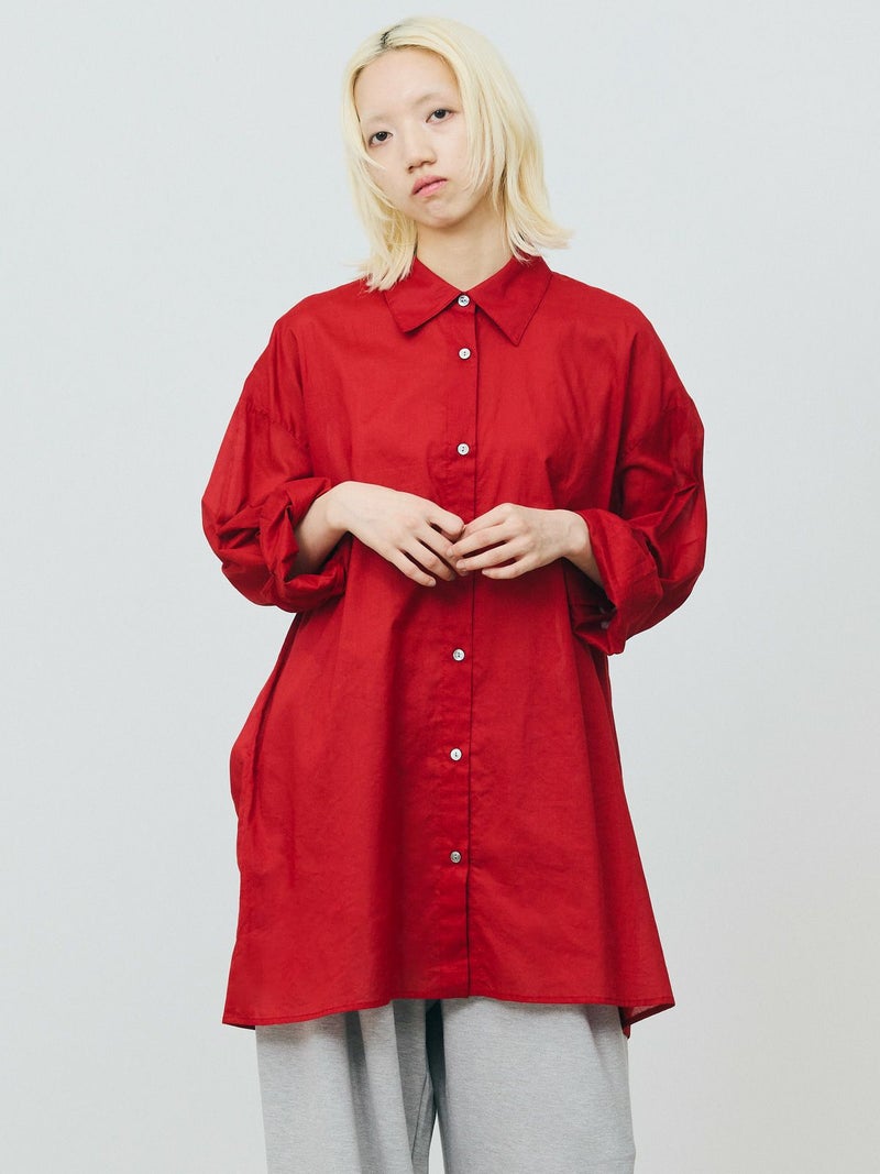 長い期間で色々なスタイリングを楽しめるシアー素材のシャツの提案です。暑さが残る時期には軽く羽織って涼しく着ていただけるシアーワイドシャツ。冷房や日除け対策としても使い勝手が良いシャツで、シアー素材ならではのレイヤードスタイルもオススメです。上にニットやベストなどを合わせてもらうと素材のコントラストが素敵なコーディネートを演出。シンプルなシャツなので、デザインポイントにカフスの釦調整が可能なディテールを入れています。