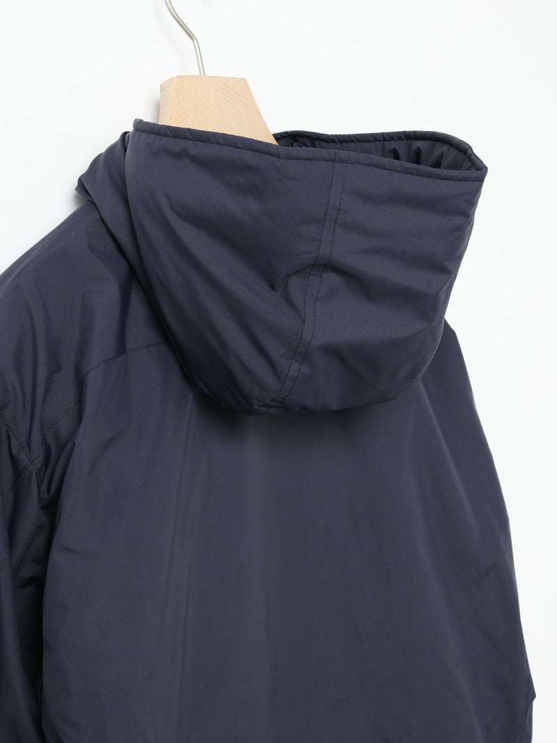 冬場の中間着となる中綿ジャケットアイテムでもあるインシュレーションコートです。90年代後半から00年代、色々なアウトドアブランドやスポーツブランドが確立したレイヤリングシステムを参考にした1枚。見る人が見るとわかる90年代~00年代の名作と感じているアイテムの色々をいいとこ取りしたデザイン。シルエットはゆるめで保温性の高いアウターです。