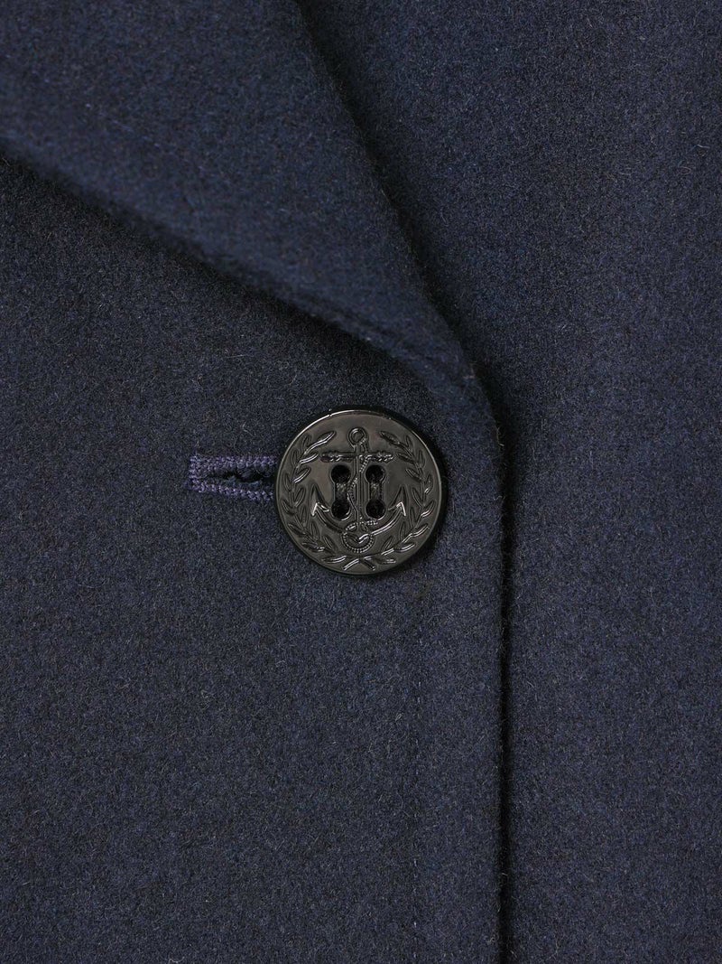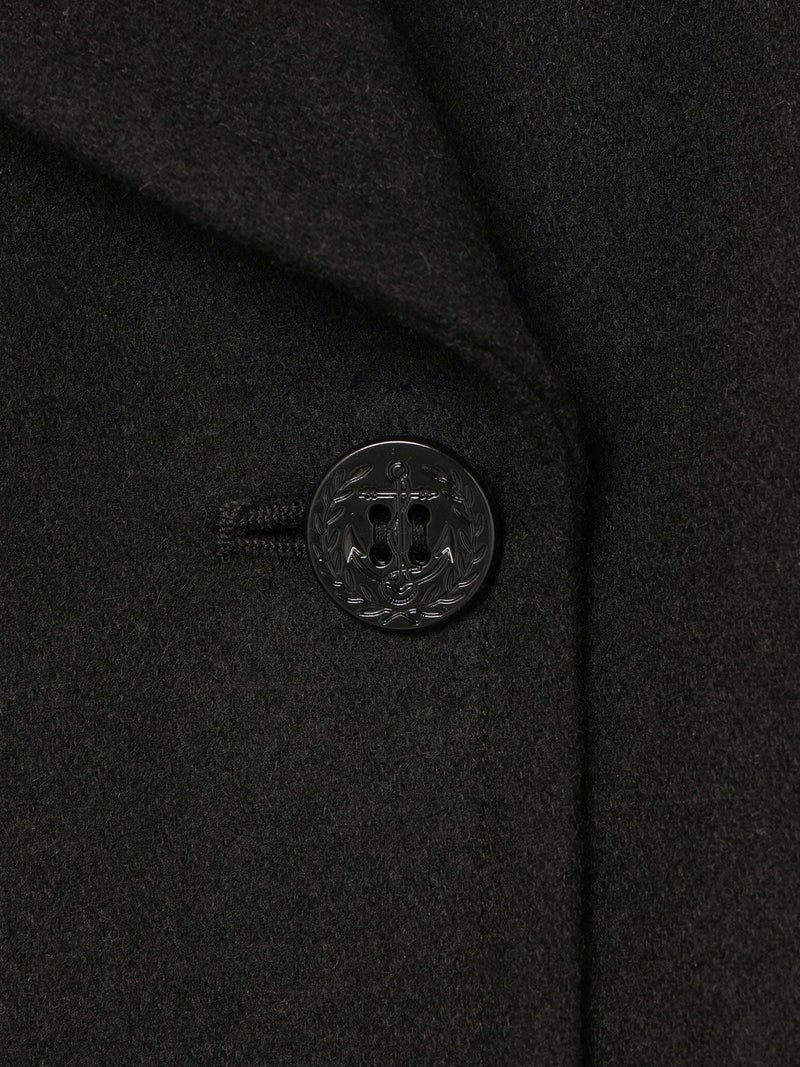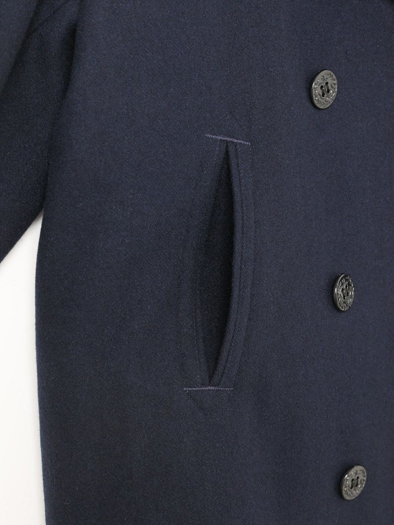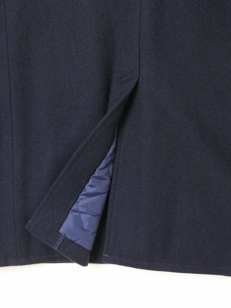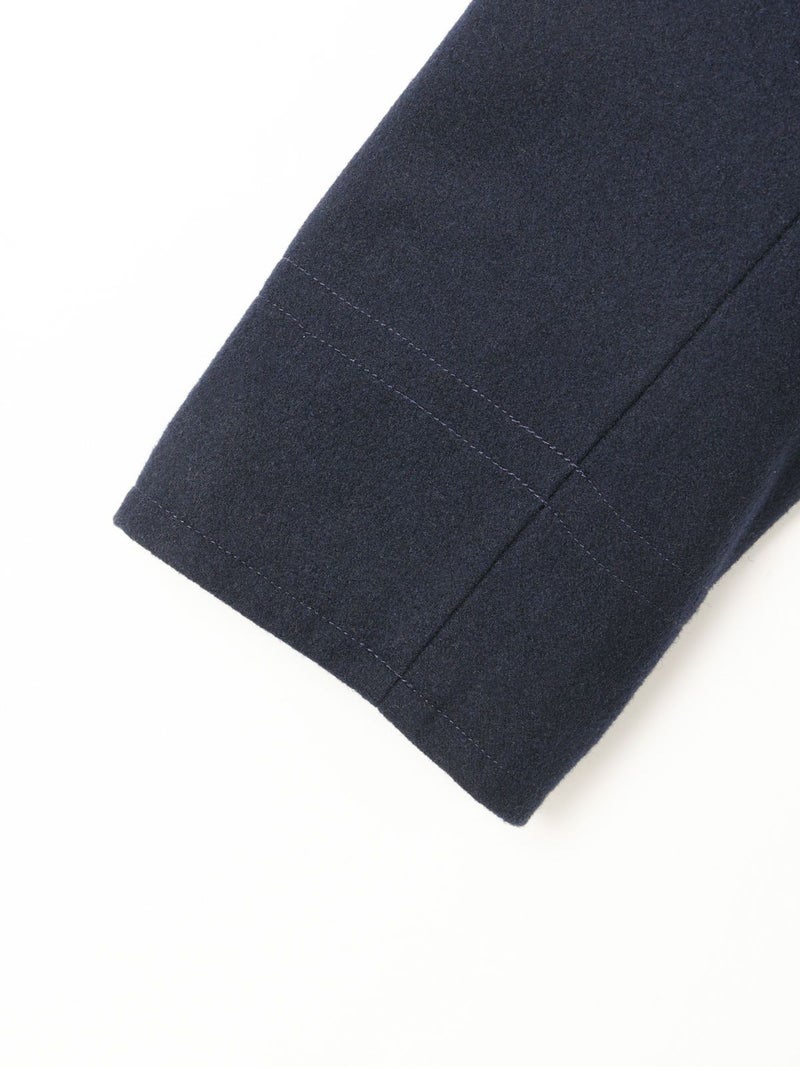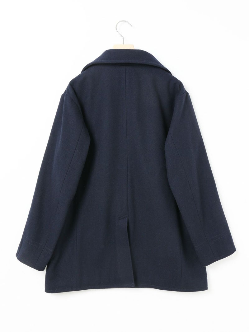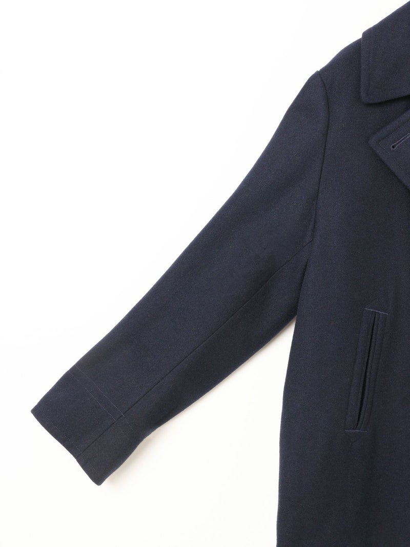 冬定番のピーコートです。1950年代以前の10ボタンよりも、それ以降の8ボタンの方が服のバランスとして見た時にラペルがキレイなので、こちらを採用。拘りのディテールとしては、ピーコートのポケット。極細の両玉縁ポケットに対して入るステッチのカッコよさ。そして意外と知られていない40年代〜60年代後半までのディテールとして袋布がコーデュロイになっている事。8ボタンで女性に合う現代的なラペルのバランスを作り、このポケットを綺麗に再現することで、本物を理解したオリジナリティのあるピーコートに。シルエットはビックシルエットでなく綺麗に着れるシルエット。右上前、左上前、どちらでも着用できる仕様です。