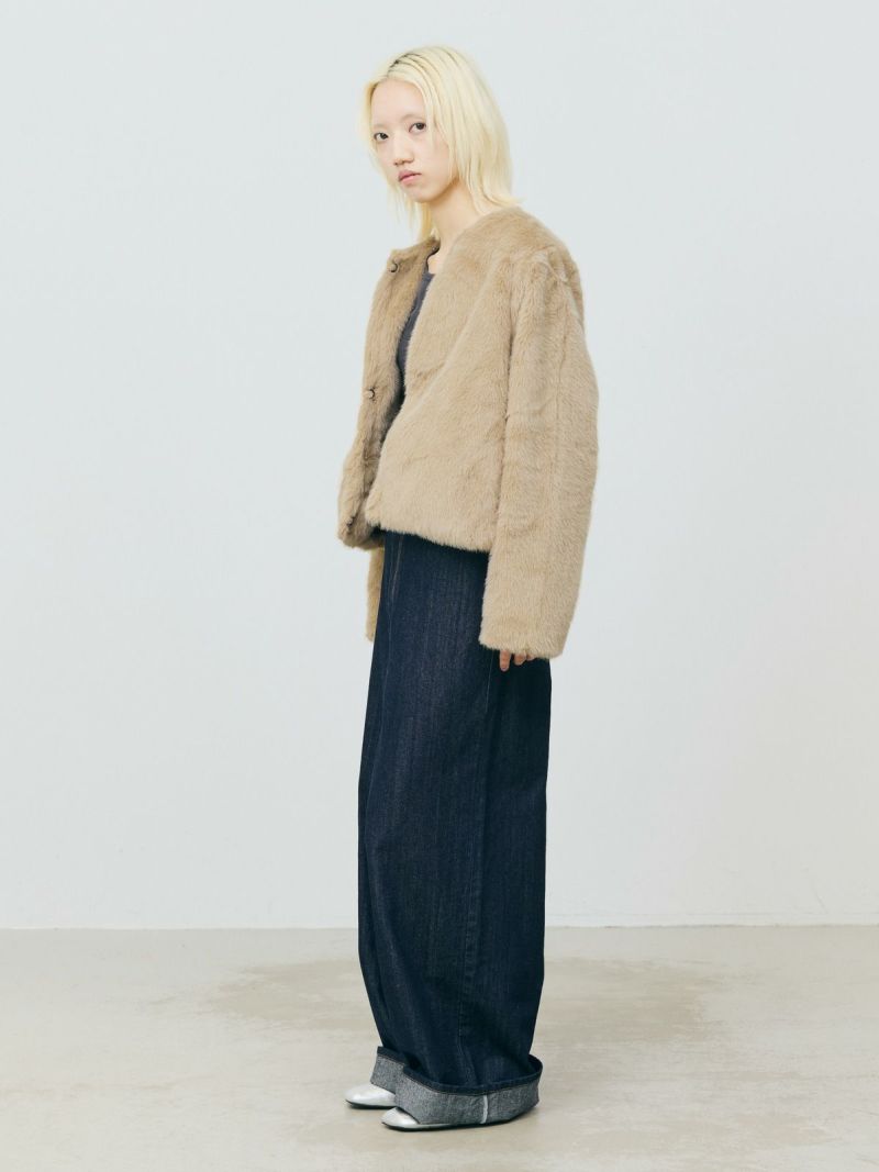 柔らかく温かみのあるファーを使用したファーブルゾンです。クルーネックにフロントフックのシンプルなデザインが特徴。ボリュームが出過ぎないサイズ感とヒップ上のすっきりとした丈なので小柄な方も着用しやすいのもポイント。カジュアルアイテムとのコーディネートにもお勧めで気軽に羽織りやすいブルゾンです。