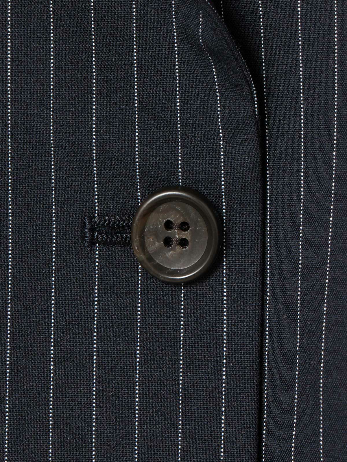ダブルのジャケットを着崩せる人。古着屋で買ったメンズのジャケットを格好良くラフに着る。そんな女性をイメージしてデザインしました。少し低目のゴージライン。少し広めのラペル。フロントにダーツのない、極力シェイプされていないシルエット。肩周りは程よくゆとりはあるものの決してビッグシルエットにならない。着丈は少しだけ長目。シルエットや細かいディテールのバランスで、懐かしくもフレッシュに感じるアイテムに仕上げた1枚です。素材:無地→防シワ性があり、ドライタッチで通年着用が可能なウール混。ストライプ→2WAYストレッチのTR素材(スラックスと同素材、セットアップ着用可)。