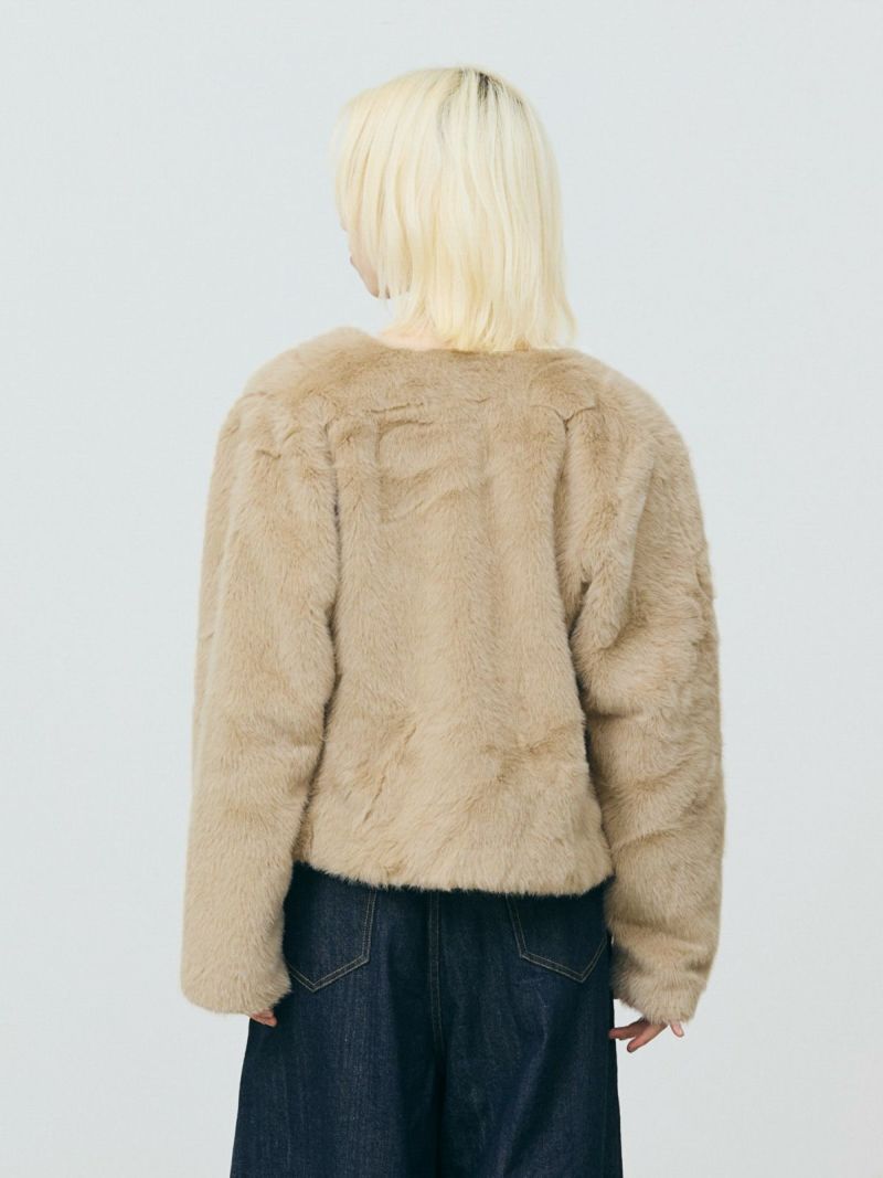 柔らかく温かみのあるファーを使用したファーブルゾンです。クルーネックにフロントフックのシンプルなデザインが特徴。ボリュームが出過ぎないサイズ感とヒップ上のすっきりとした丈なので小柄な方も着用しやすいのもポイント。カジュアルアイテムとのコーディネートにもお勧めで気軽に羽織りやすいブルゾンです。
