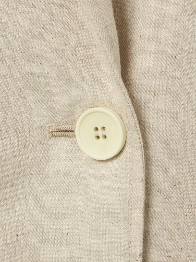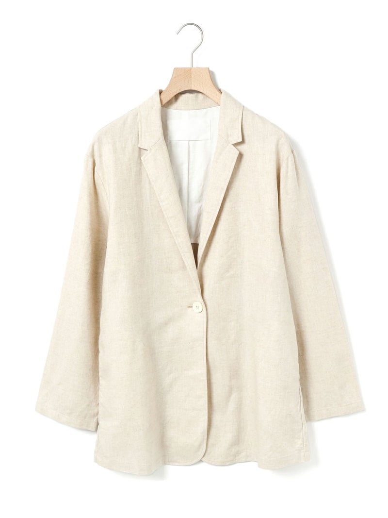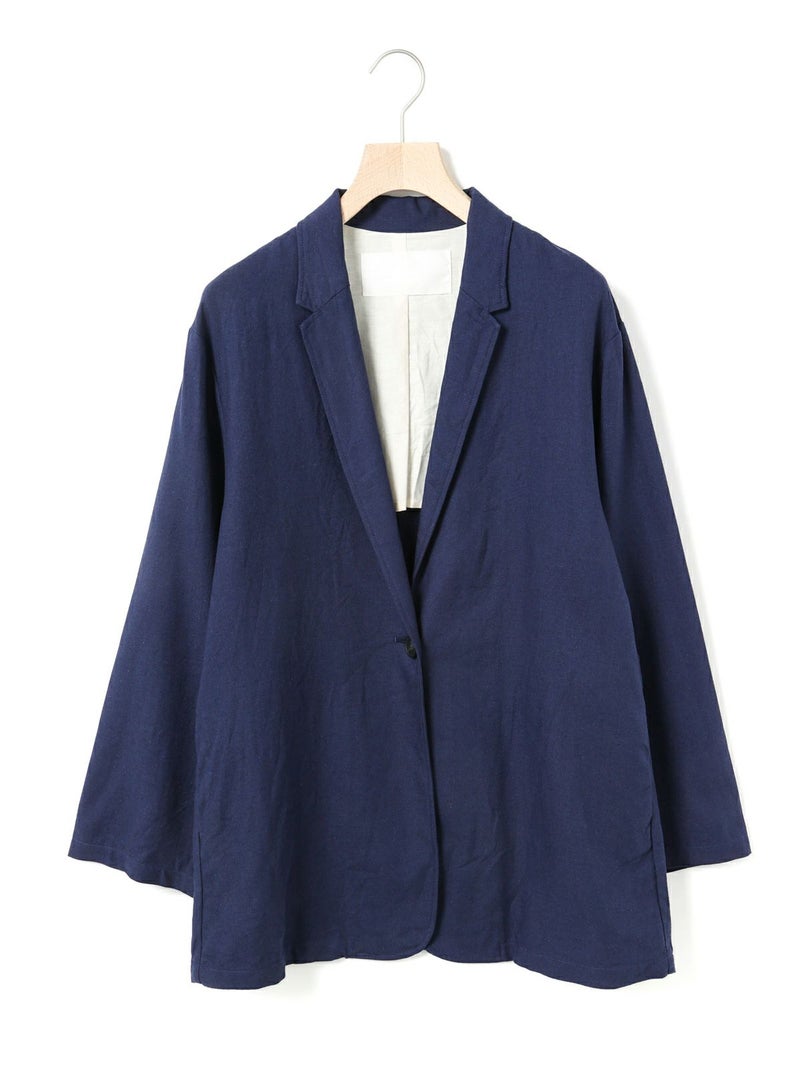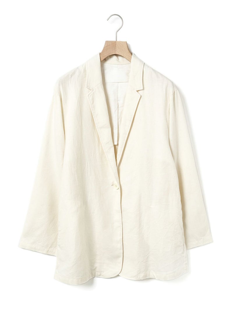 ナチュラルな素材感でラフに羽織れるテーラージャケットです。襟はスッキリシャープ目にし、ゆるさはありつつ縦長なシルエットのため大人カジュアルなスタイリングにぴったりな1枚。同素材の1-860025/リネンワイドストレートパンツパンツとセットアップで着用可能。コットン×リネンヘリンボンのドライタッチな肌触りでヘリンボン組織の凹凸感が特徴的。洗い仕上げで背裏(スレキ)あり。