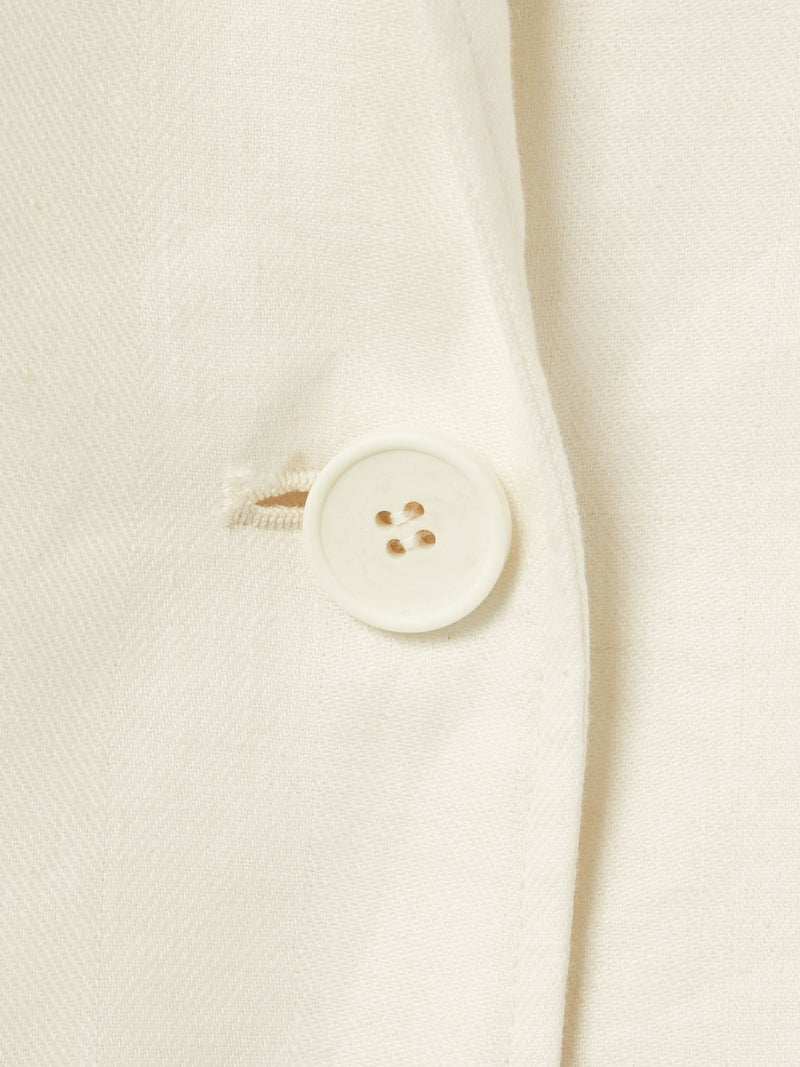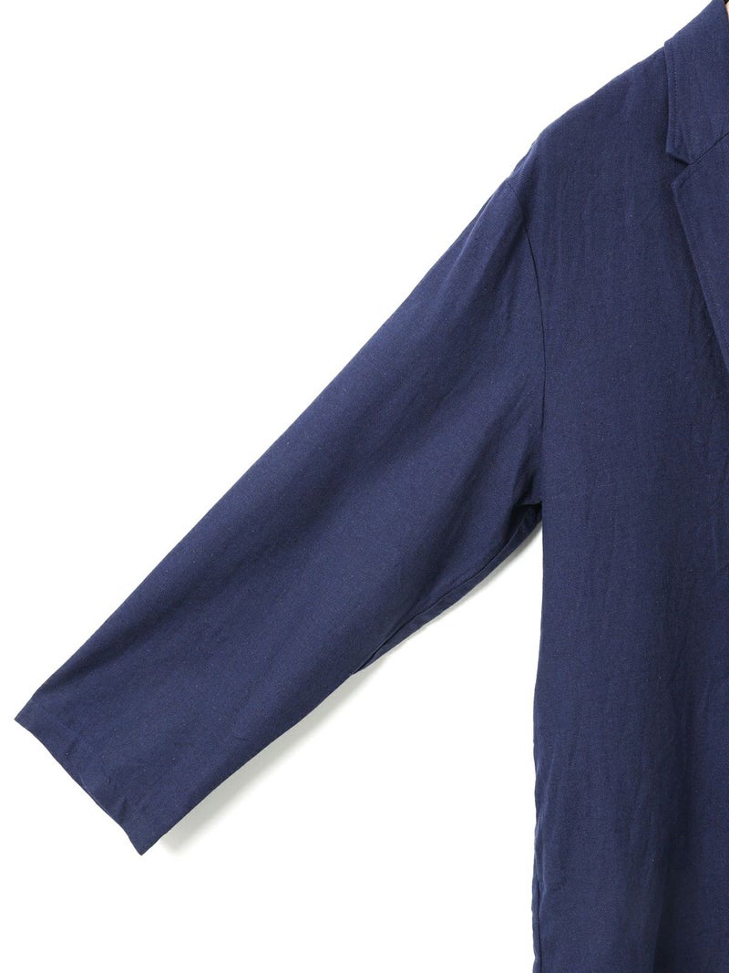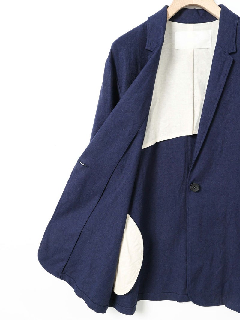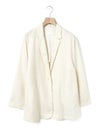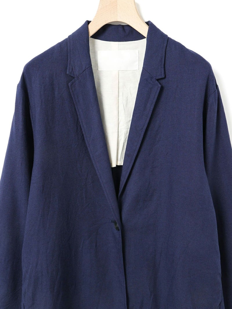 ナチュラルな素材感でラフに羽織れるテーラージャケットです。襟はスッキリシャープ目にし、ゆるさはありつつ縦長なシルエットのため大人カジュアルなスタイリングにぴったりな1枚。同素材の1-860025/リネンワイドストレートパンツパンツとセットアップで着用可能。コットン×リネンヘリンボンのドライタッチな肌触りでヘリンボン組織の凹凸感が特徴的。洗い仕上げで背裏(スレキ)あり。