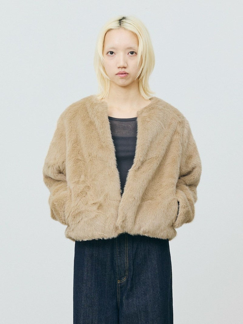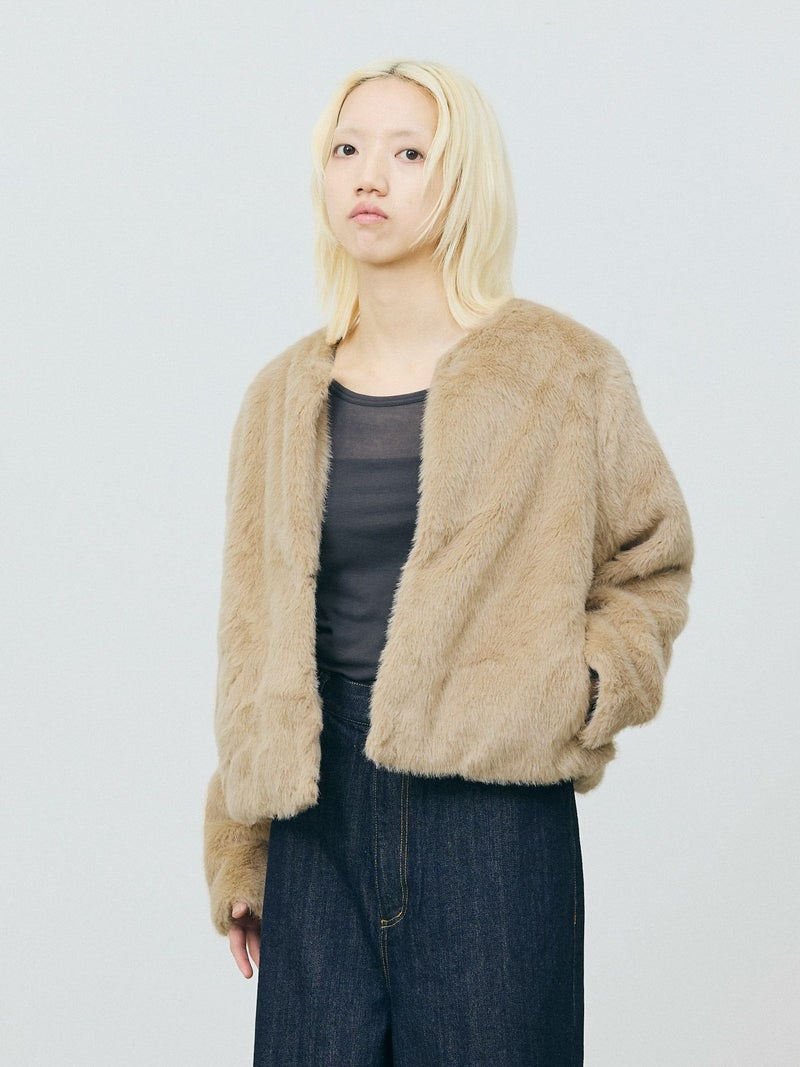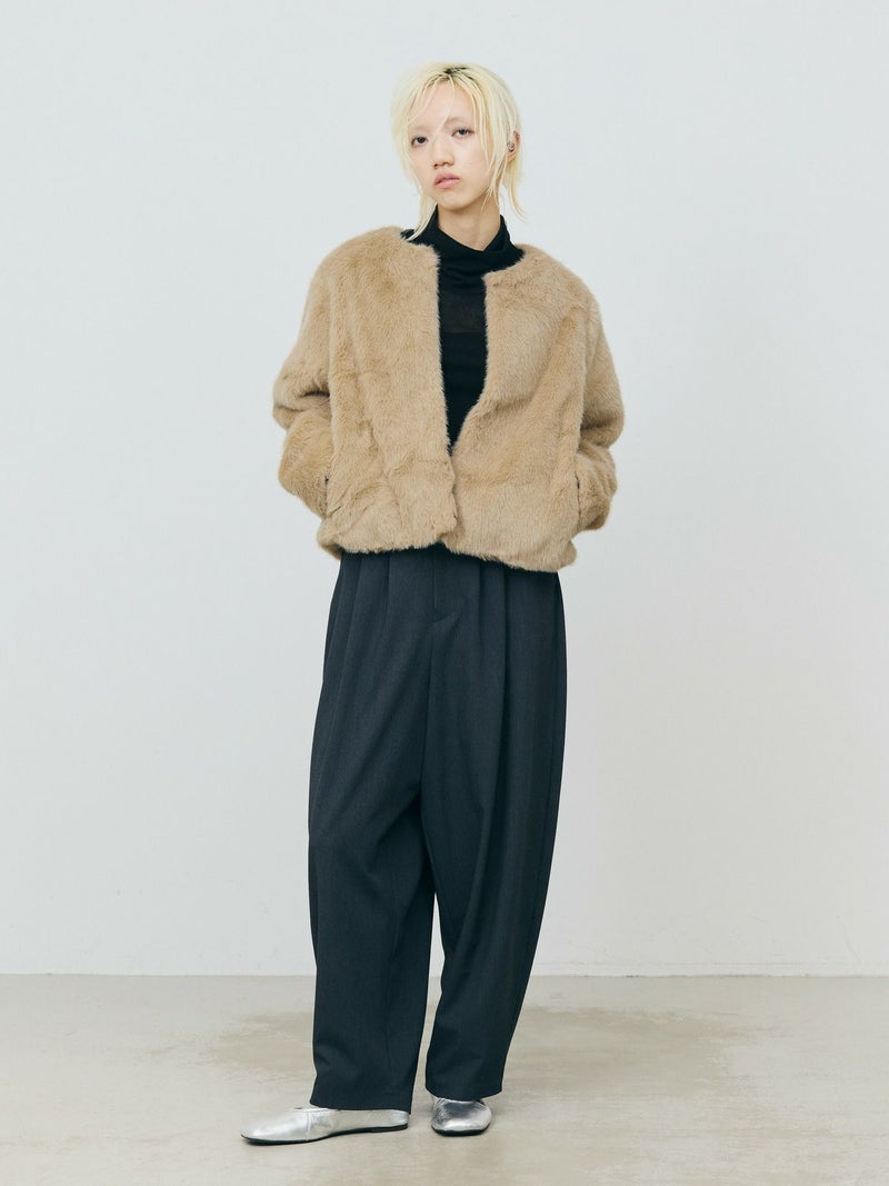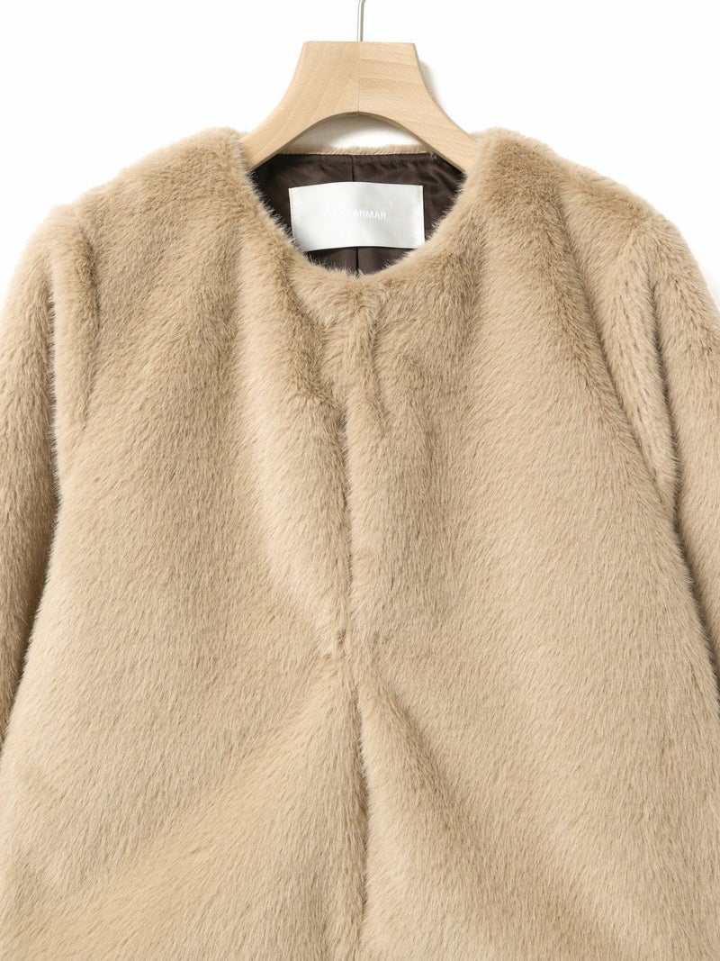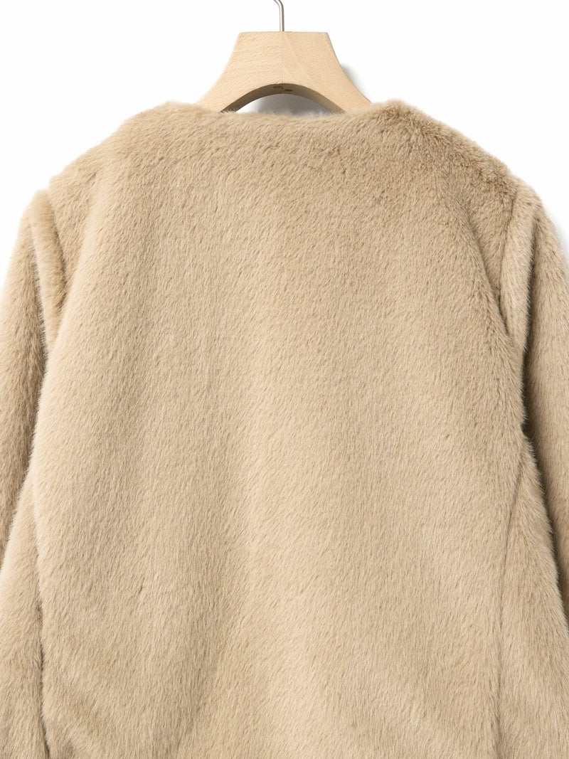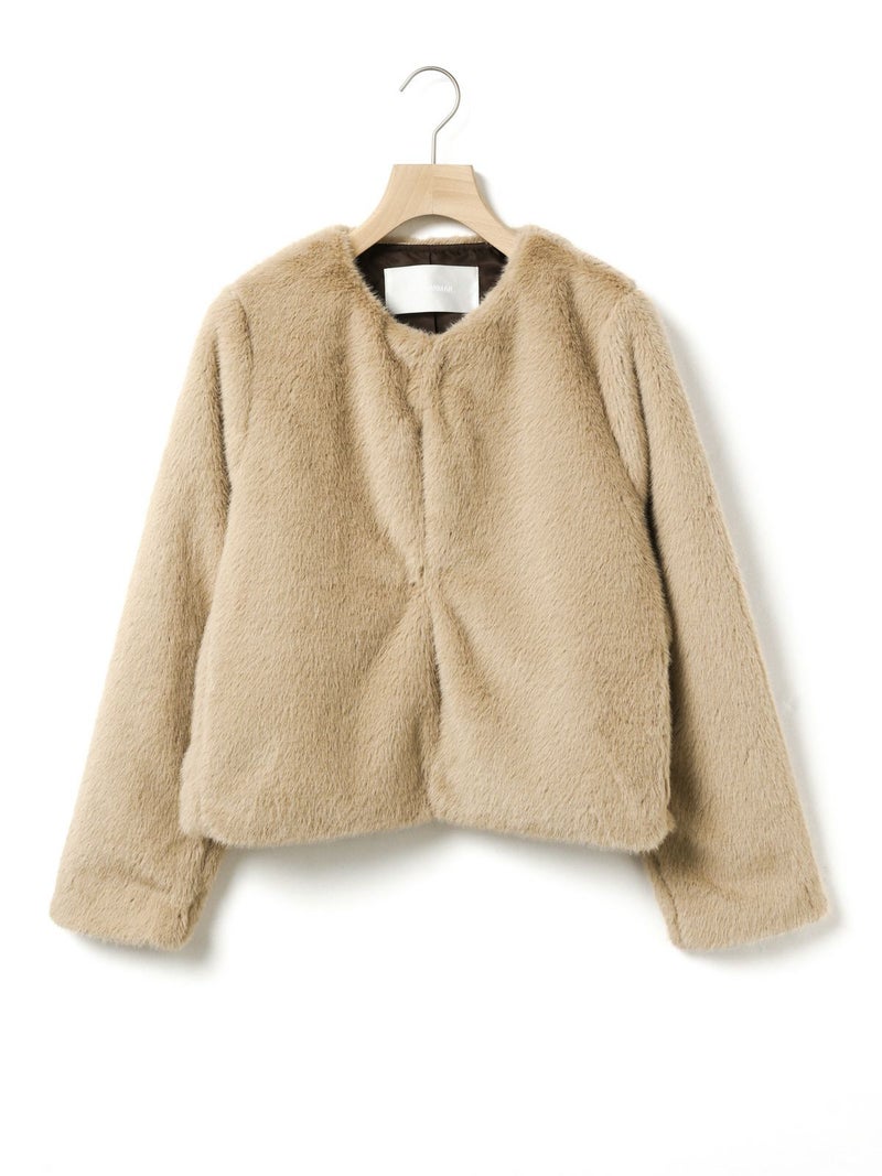 柔らかく温かみのあるファーを使用したファーブルゾンです。クルーネックにフロントフックのシンプルなデザインが特徴。ボリュームが出過ぎないサイズ感とヒップ上のすっきりとした丈なので小柄な方も着用しやすいのもポイント。カジュアルアイテムとのコーディネートにもお勧めで気軽に羽織りやすいブルゾンです。