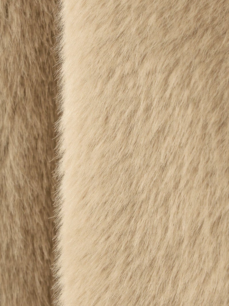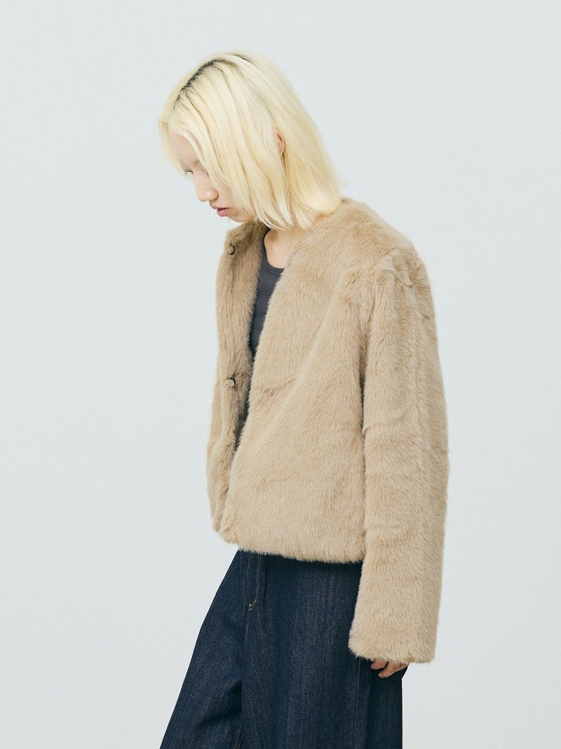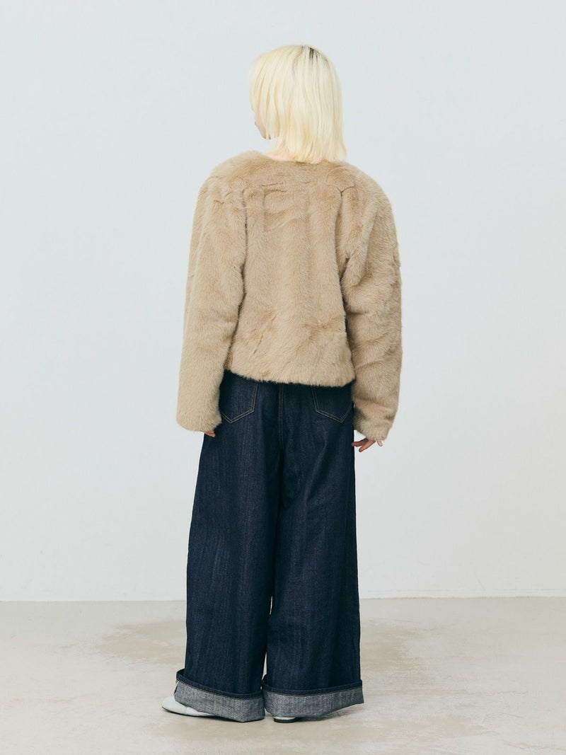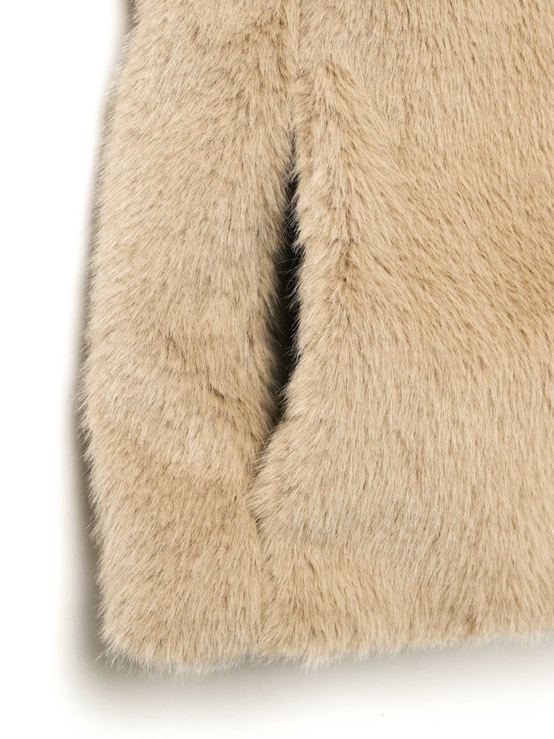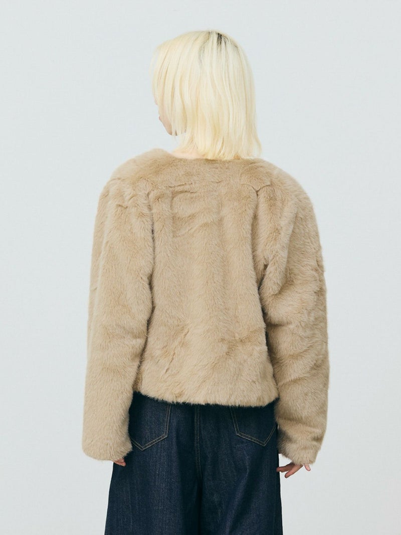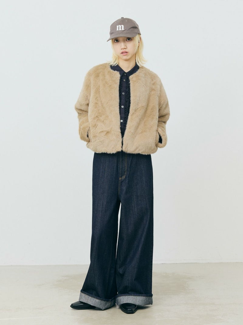 柔らかく温かみのあるファーを使用したファーブルゾンです。クルーネックにフロントフックのシンプルなデザインが特徴。ボリュームが出過ぎないサイズ感とヒップ上のすっきりとした丈なので小柄な方も着用しやすいのもポイント。カジュアルアイテムとのコーディネートにもお勧めで気軽に羽織りやすいブルゾンです。