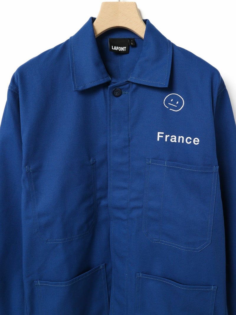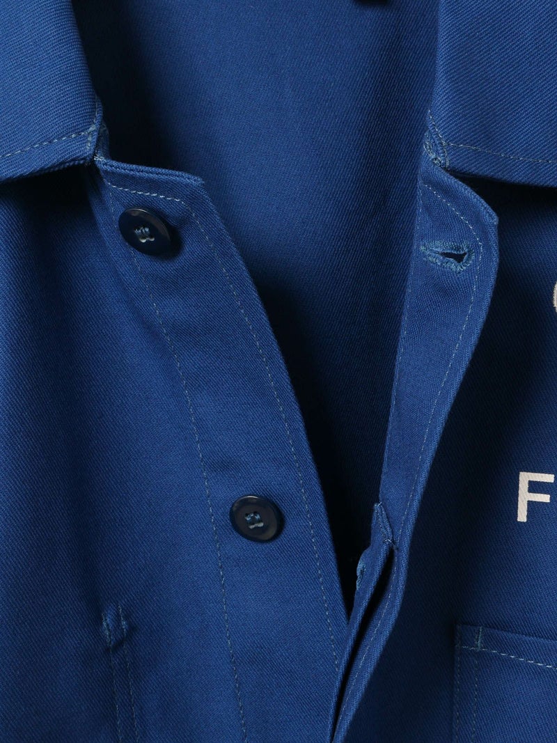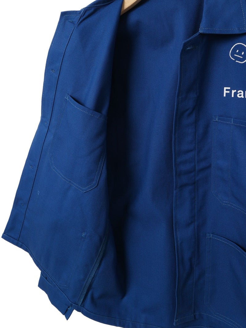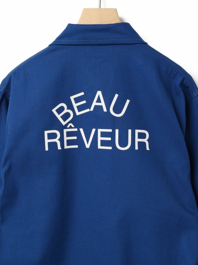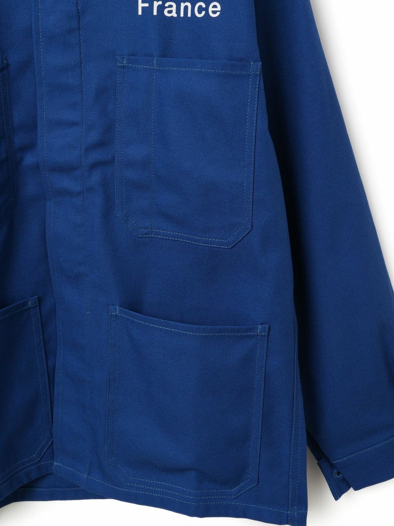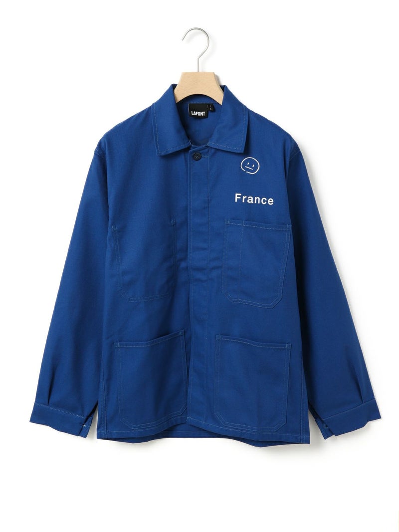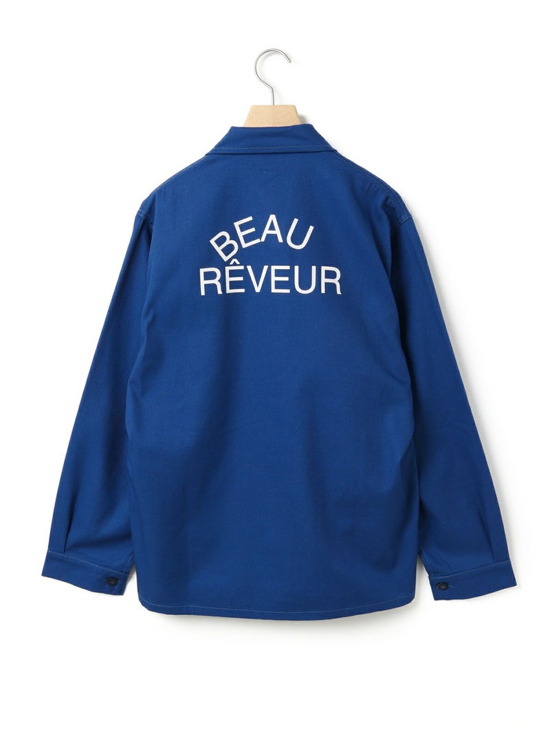 フレンチワークのインクブルー×プリント&刺繍のDIY感が目を惹くラフォンワークジャケットです。コーディネートのポイントになるアイテムでバックプリントには夏の終わりを感じる、キャッチーでみんなが知っている言葉(Beautiful Dreamer)をフランス語で入れています。MARMARMARらしい遊び心の効いた刺繍やプリントを施してオリジナルのアクセントをプラスしたワークジャケット。季節の変わり目に重宝する1枚です。