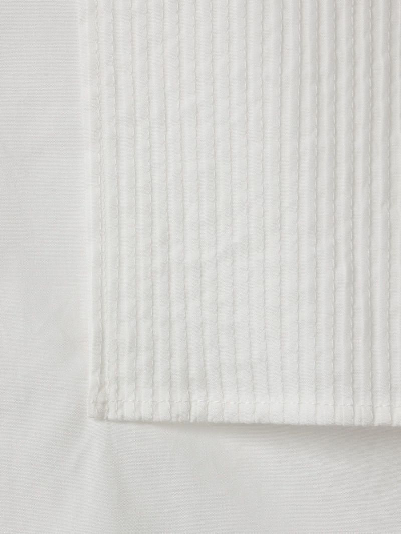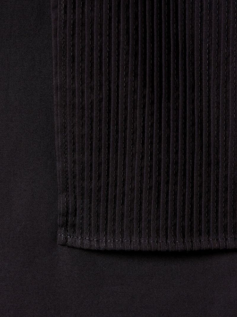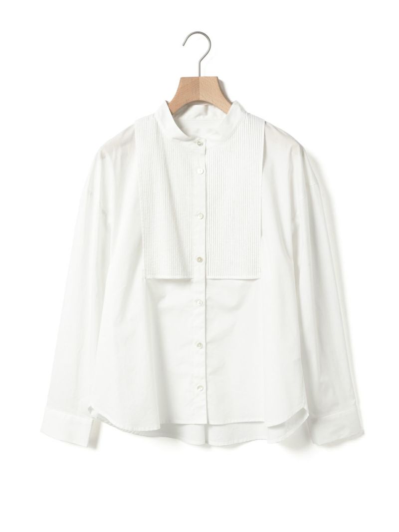 フロントヨークがピンタックの別パーツを乗せたデザインになっており、あそび心のあるシャツに仕上げたスタンドカラーピンタックシャツです。3-830089/フリルドレスシャツのフリルデザインシャツと同様に、1枚でデザイン性のあるシャツを表現。フォーマルな装いにも使え、またデニムやカジュアルパンツに合わせることでミックス感のあるスタイリングも楽しめるアイテムです。