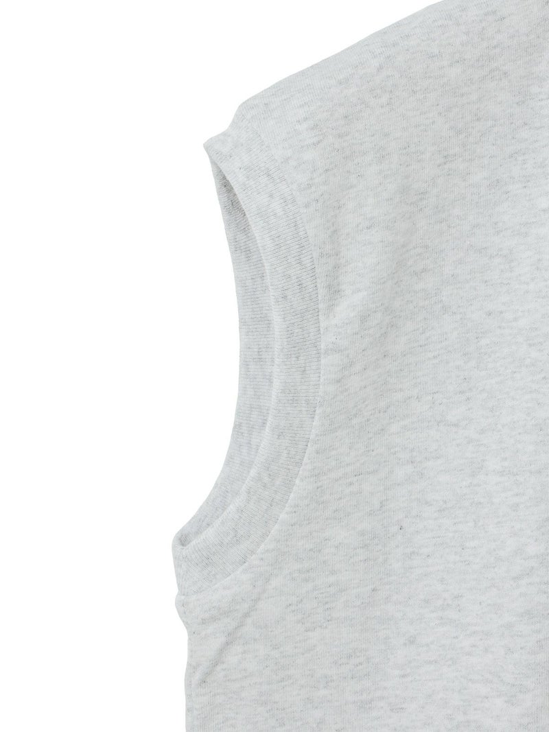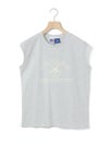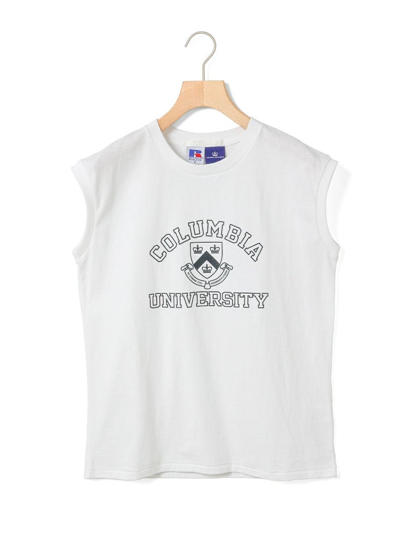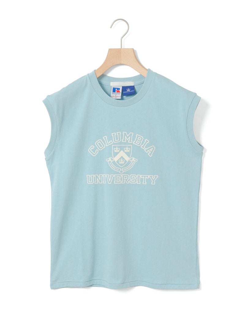 シーズン定番になっているMARMARMAR×RUSSELL ATHLETICとのコラボレーション、ノースリーブTシャツです。今季は三品番全て(1-816013、1-816014)共通でアメリカの有名大学とのコラボレーションシリーズになっています。カレッジTシャツのオーセンティックなイメージを元にMARMARMARらしい女性らしさを少し加えたデザインに仕上げました。古着に挑戦するのは難しいと考える方にもオススメのコレクションになっています。本品番は「COLUMBIA UNIVERSITY」さんの有名なロゴを使い、ノースリーブのTシャツをデザインしました。他の2品番とは異なり、コットン100%のRUSSELLさんの定番素材を使用し、元々インラインで合ったノースリーブのパターンをアップデートさせたものになります。春先はシャツなどのインナーとして、夏には1枚で楽しんでいただけます。