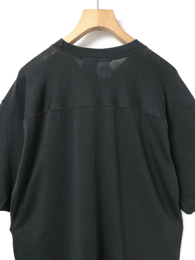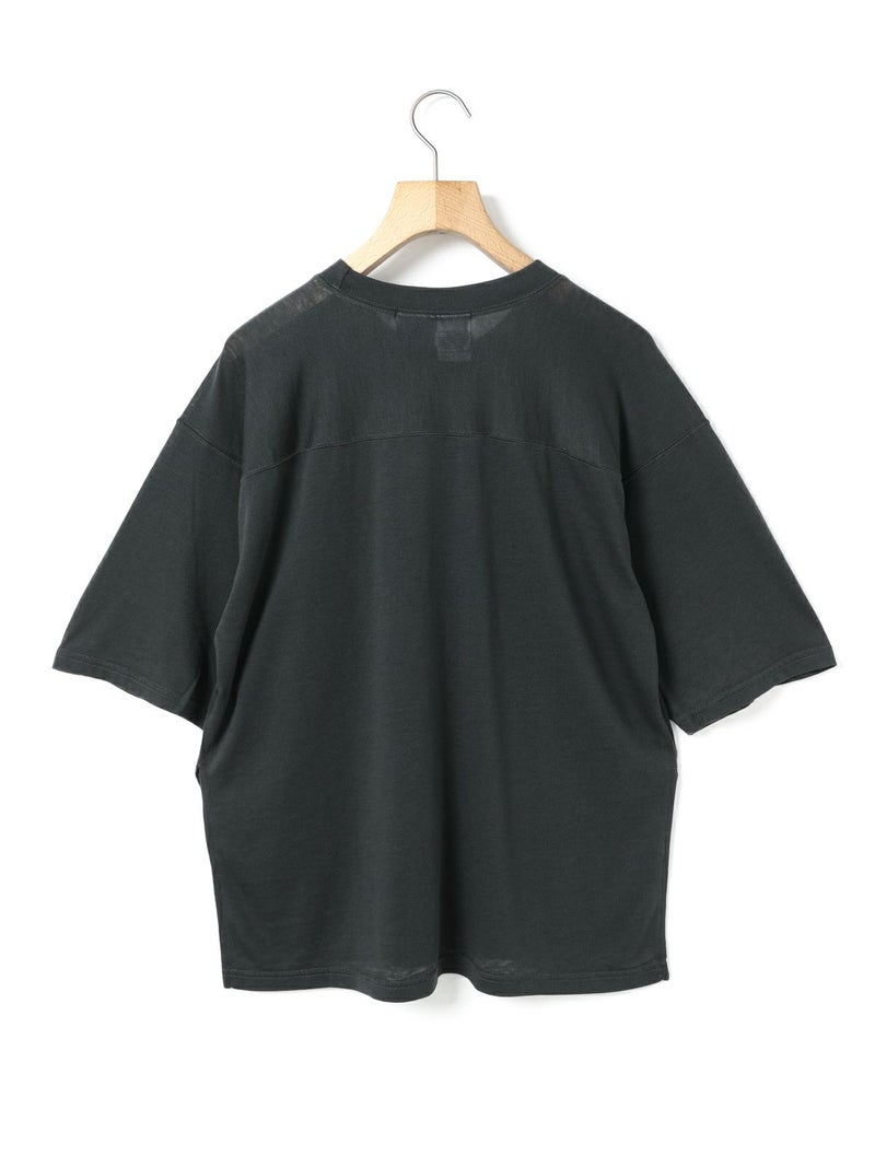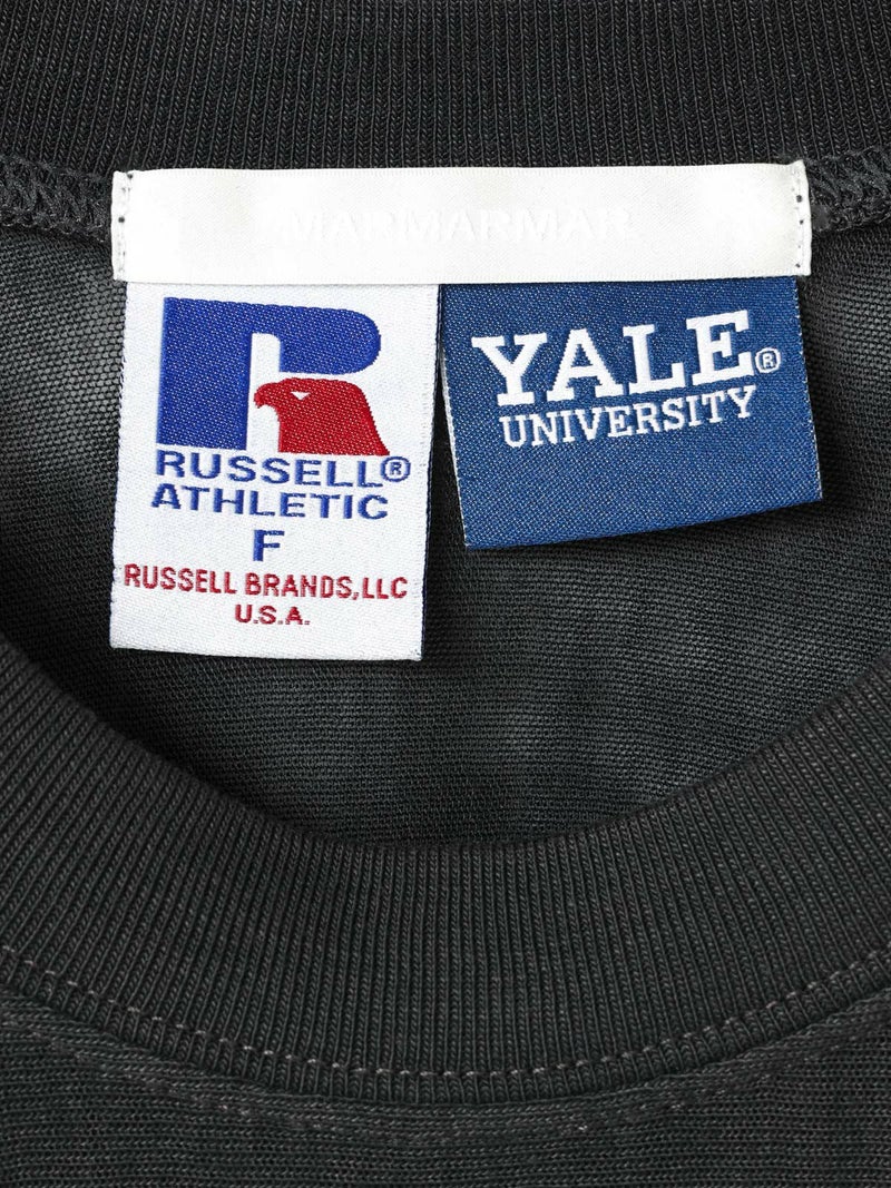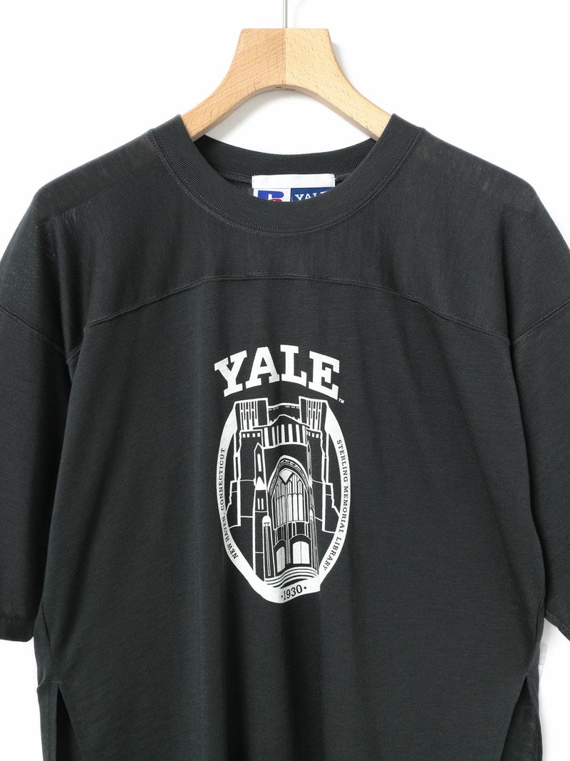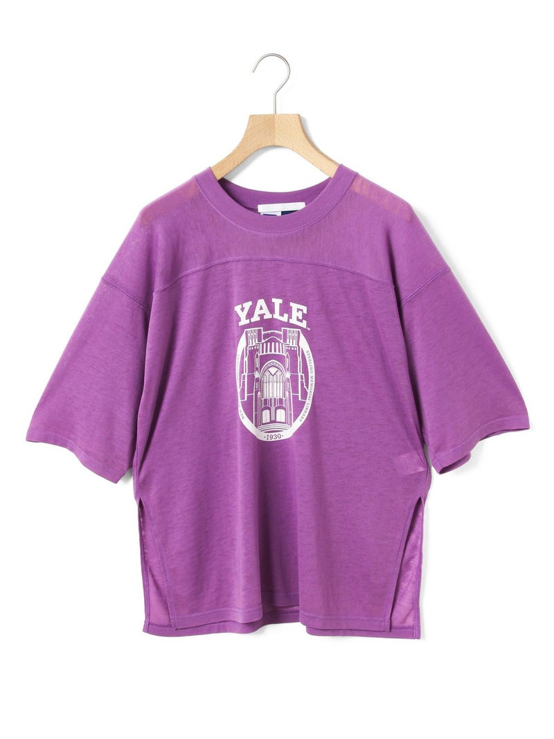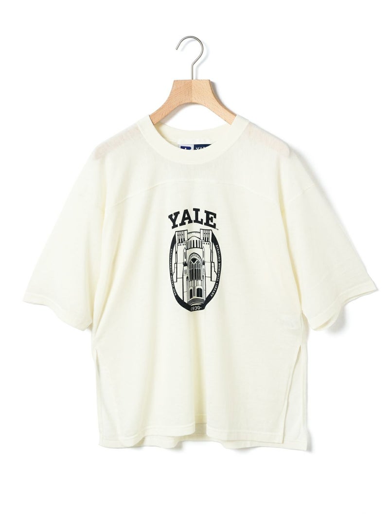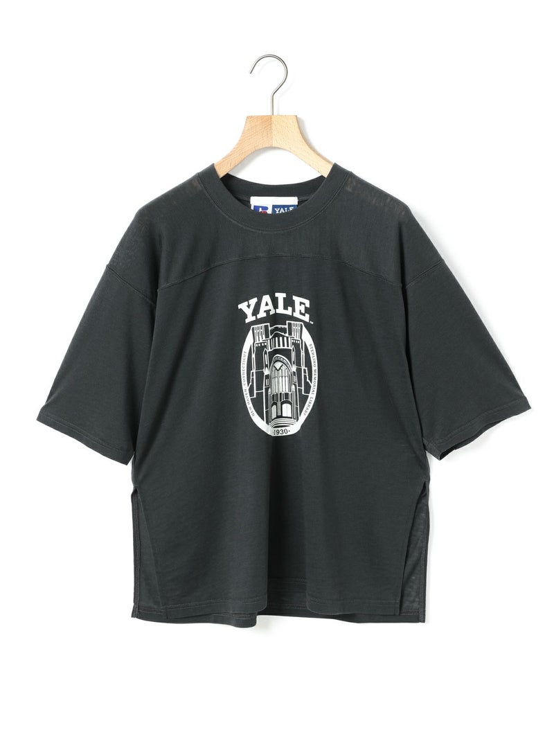 ここ数シーズン定番になっているMARMARMAR×RUSSELL ATHLETICとのコラボレーション今、イェールTシャツです。今季は三品番全て(1-816012、1-816013)共通でアメリカの有名大学とのコラボレーションシリーズになっています。カレッジTシャツのオーセンティックなイメージを元にMARMARMARらしい女性らしさを少し加えたデザインに仕上げました。古着に挑戦するのは難しいと考える方にもオススメのコレクションになっています。本品番は「YALE」さんの有名なロゴを使用し、フットボールTを元にデザインしました。1-816013「HARVARD T SHIRT」と同様に、古着のバンドTeeなどでよく見られる、いわゆる”パキメン”をイメージしたBlend Jerseyを使用しています。メンズ要素の強いフットボールTをこの素材で作ることにより、女性が着るからこそ生きるデザインになっています。ボーイッシュなコーディネートはもちろん、綺麗なパンツやスカートと合わせて女性らしさの外しに使っても面白いアウトフィットになるオススメのアイテムです。