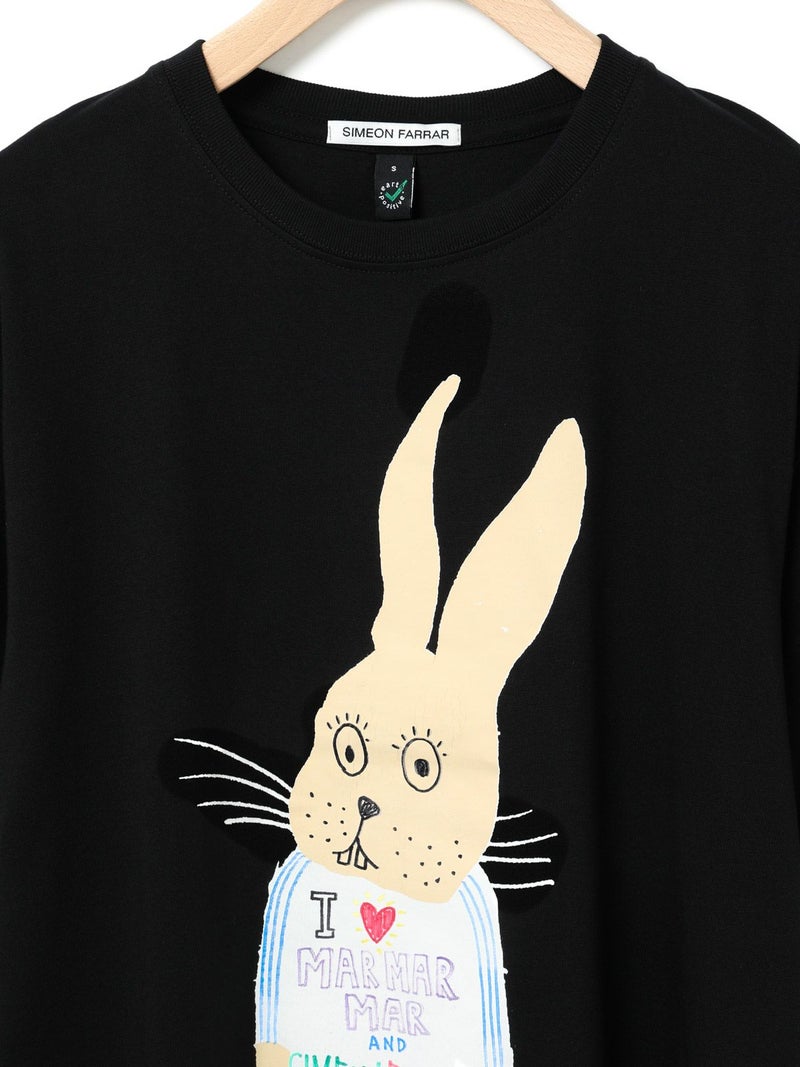 MARMARMARとSIMEON FARRAR(シメオンファラー)のオリジナルコラボTシャツです。ファニーなうさぎのイラストが特徴。ペンで手書きしたようなプリントでここだけの特別な一枚に仕上がりました。遊び心あふれるデザインが、コーディネートにユニークなアクセントを加えます。