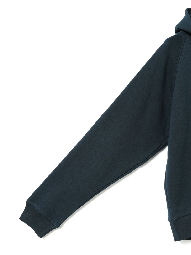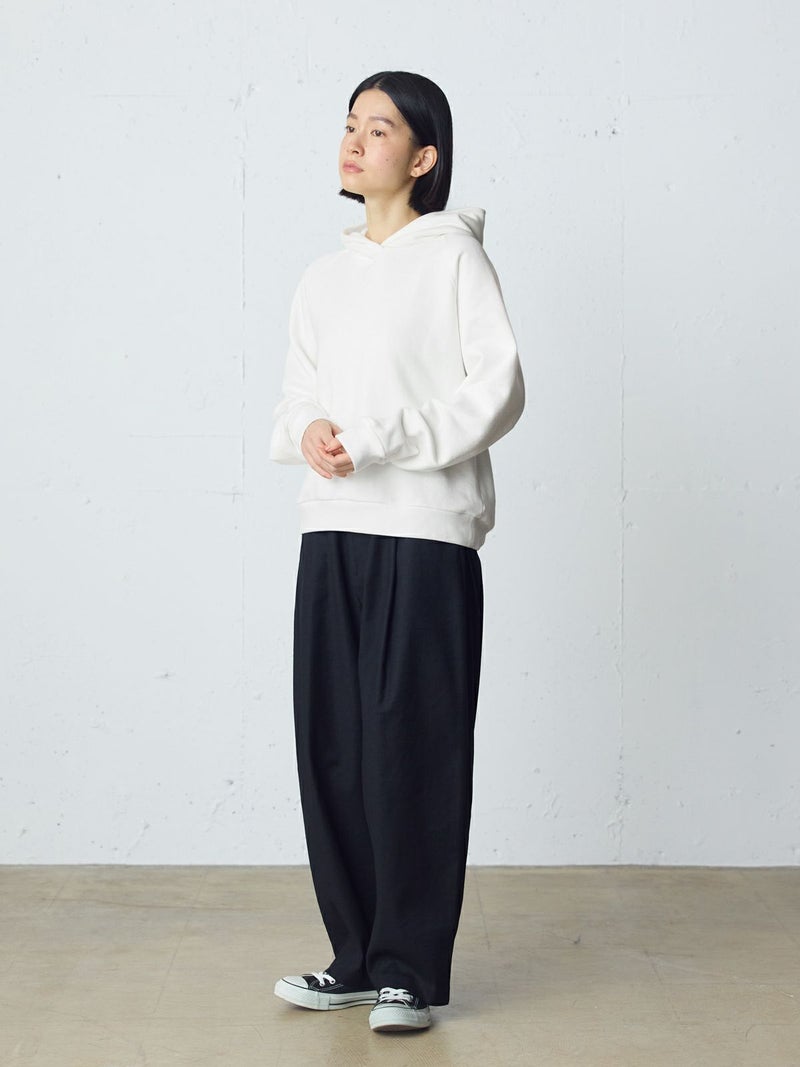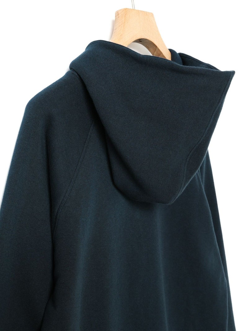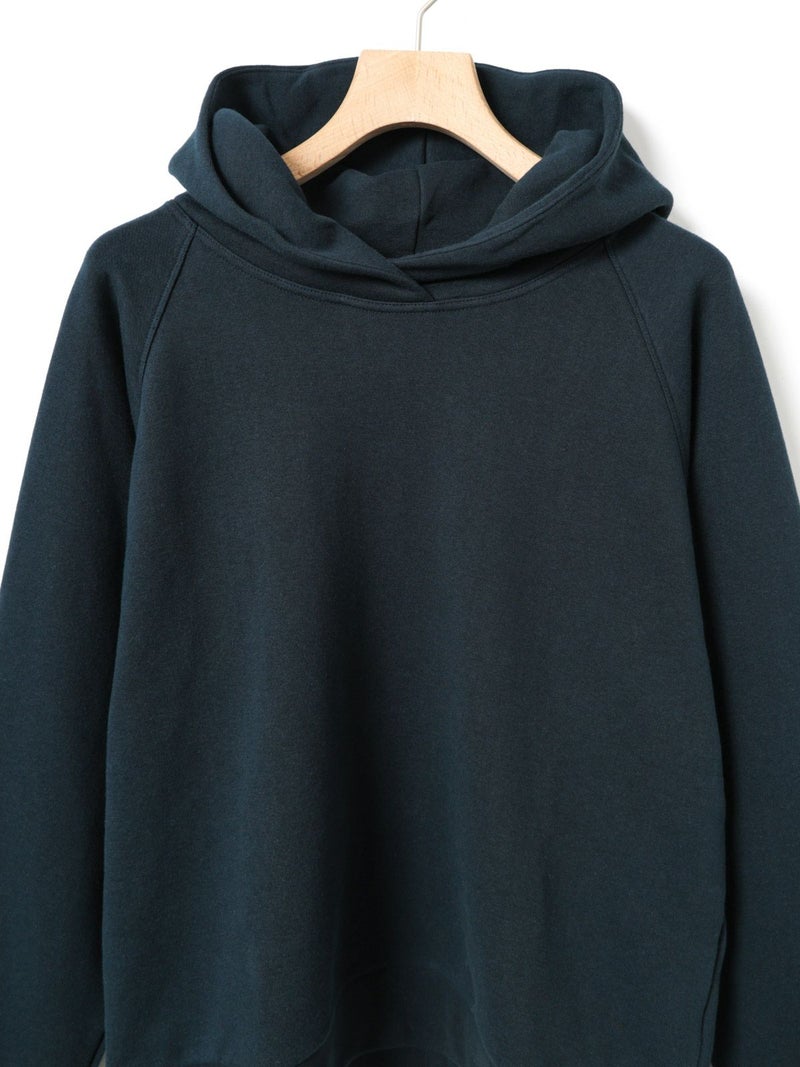 吊り裏毛を使用したスウェットアイテム、ループウィールスウェットパーカーです。和歌山にある旧式の吊り編み機を使用し、ゆっくりと空気を含みながら編まれていることで糸に負担をかけず、独特の柔らかさを楽しんでいただけるアイテムです。高速編み機で作ったものと違いふっくらと柔らかい着心地を体感していただけます。そのため型崩れしにくく、丈夫で長持ちする特性もあります。ラグランスリーブのパーカーのデザインで、良き古着のサイズ感から着想しています。重ね着ができ、ベーシックに着こなせる1枚です。 1-710126/ループウィールスウェットプルオーバーも展開。