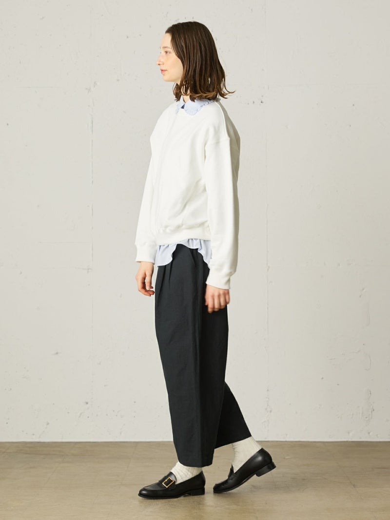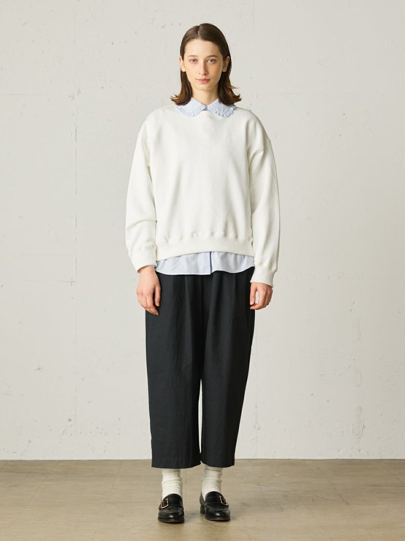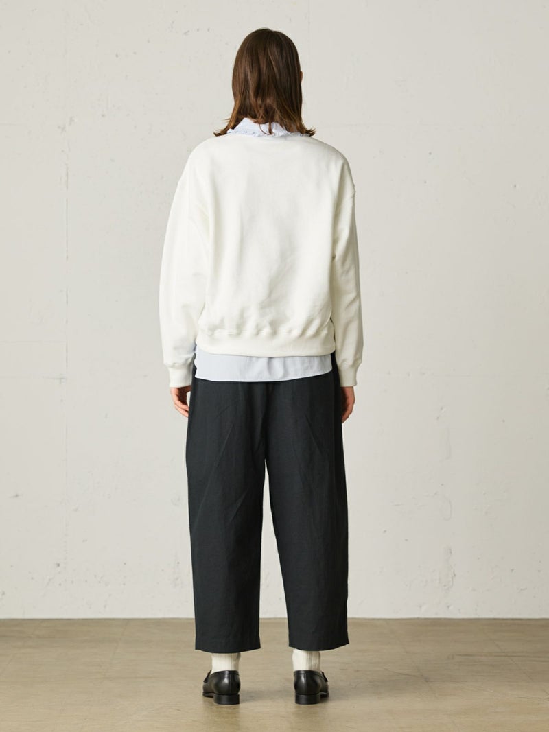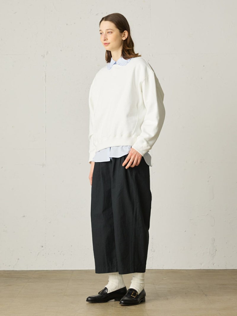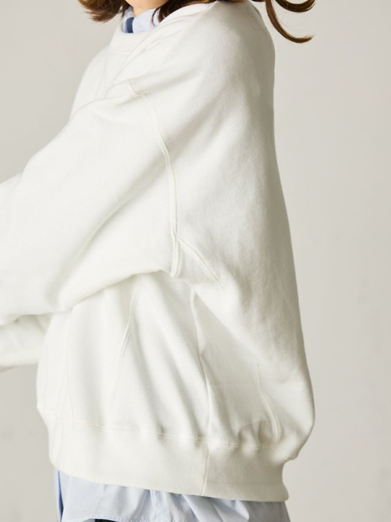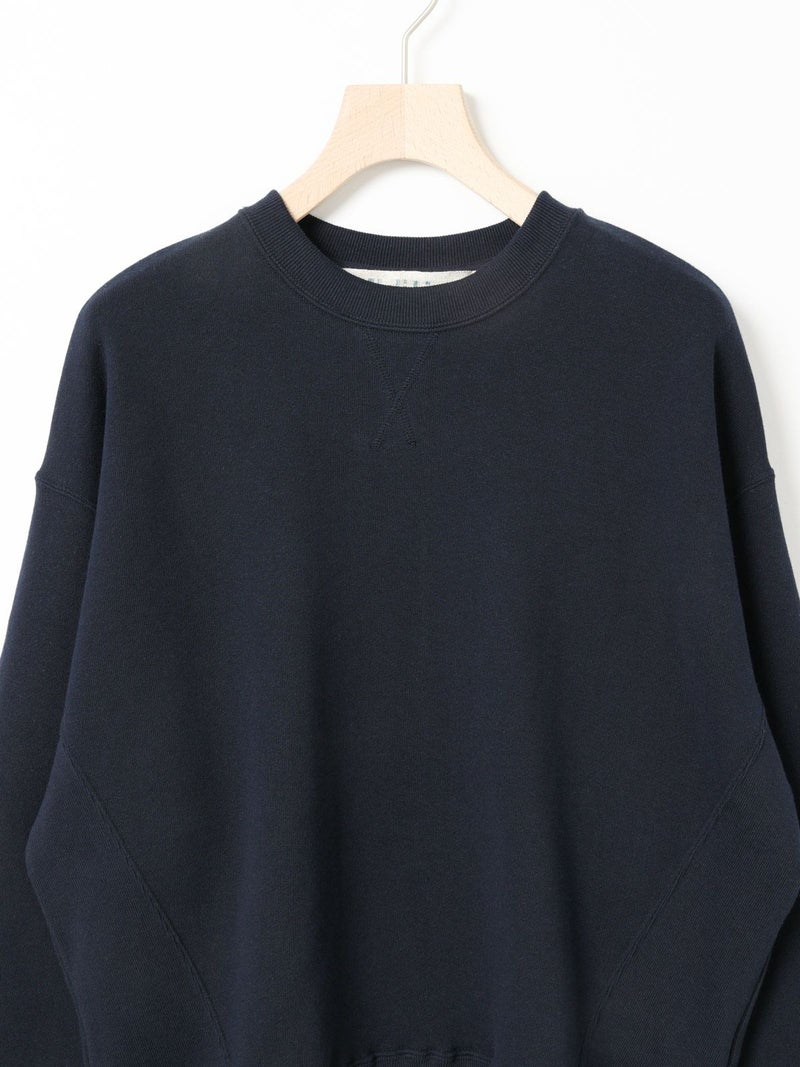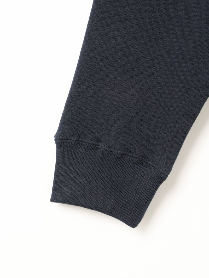 ※吊り裏毛とは和歌山県にある工場だけに現存している“吊り編み機”で編まれている裏毛素材のこと。1900年初頭からの編み機で1時間かけて1メートル程をゆっくり編み立てていく手法。