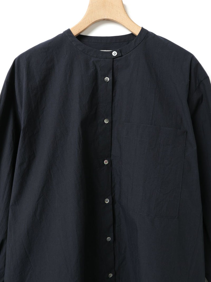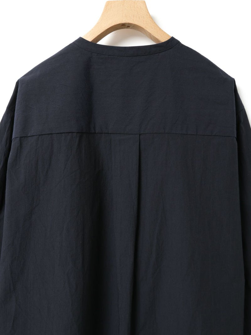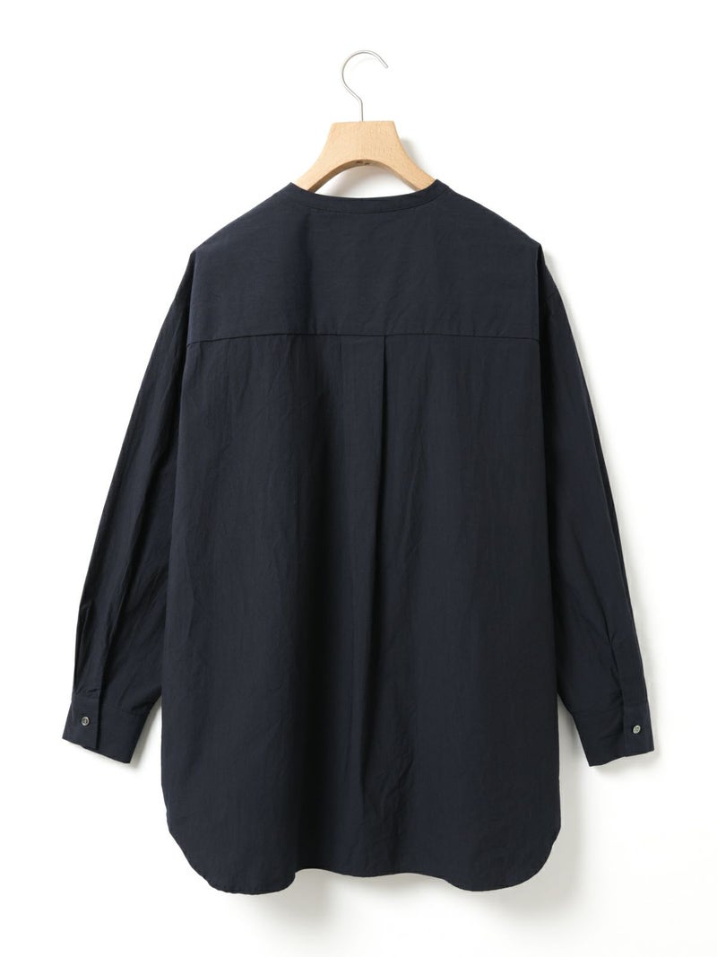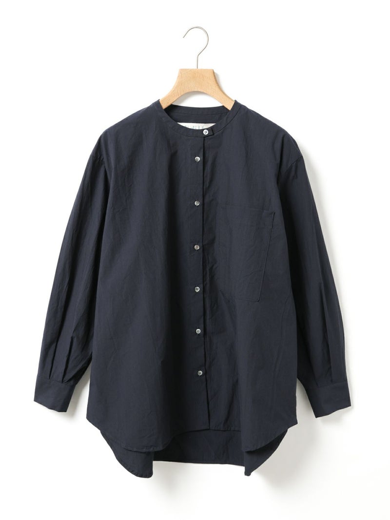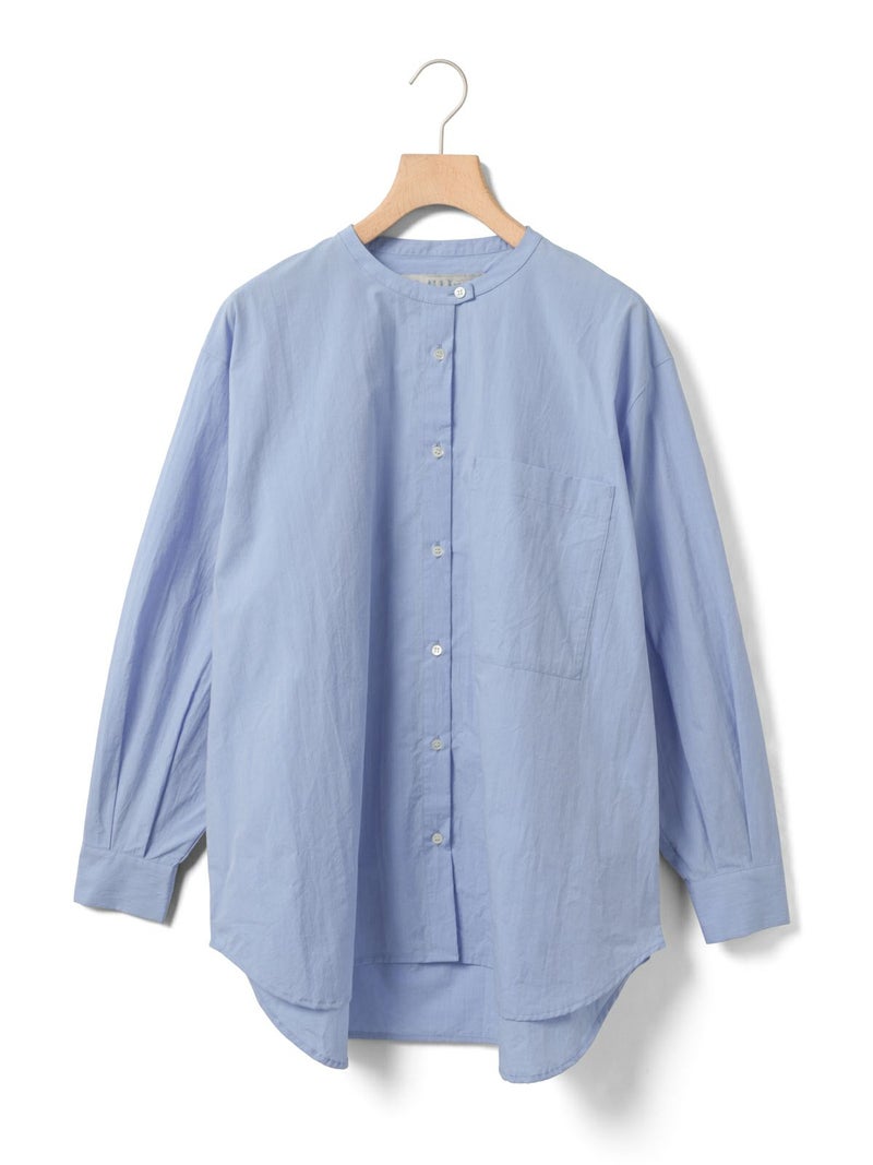 高密度に織られたタイプライター生地を使用したスタンドカラービッグシャツ。播州でワッシャー加工を施し、ヴィンテージライクに仕上げました。細めのバンドカラーと大きめのパッチポケットのバランスが絶妙のデザインポイント。袖にタックを施したことで立体感がでるようなシルエットを表現。たっぷりとしたサイズ感で着こなせ、ベーシックなスタイリングにお勧めの1枚です。同シリーズ1-730088/ワイドロングシャツも展開。