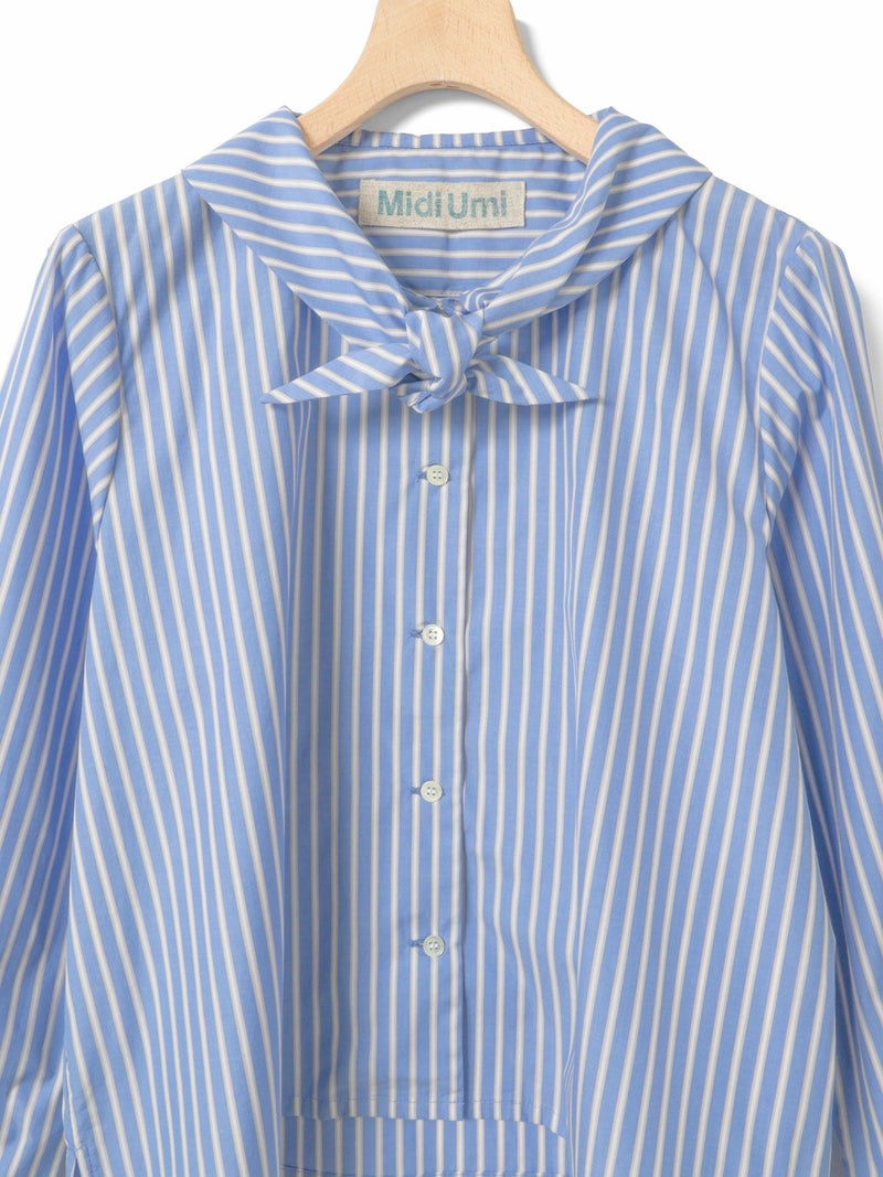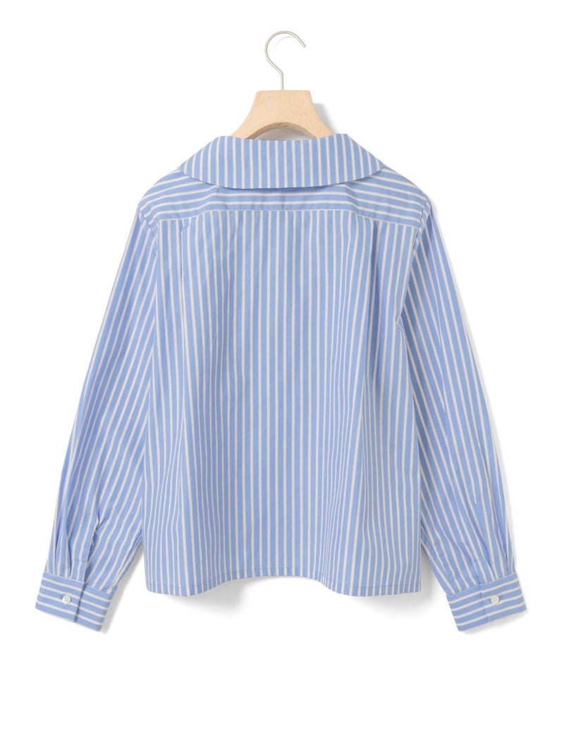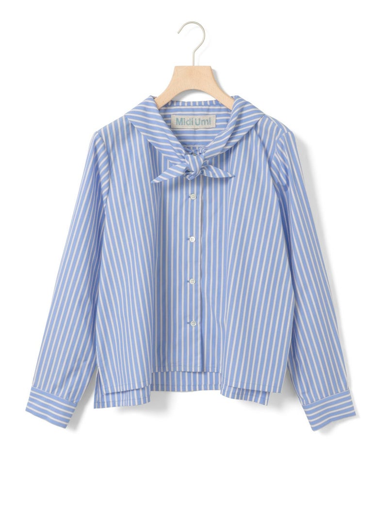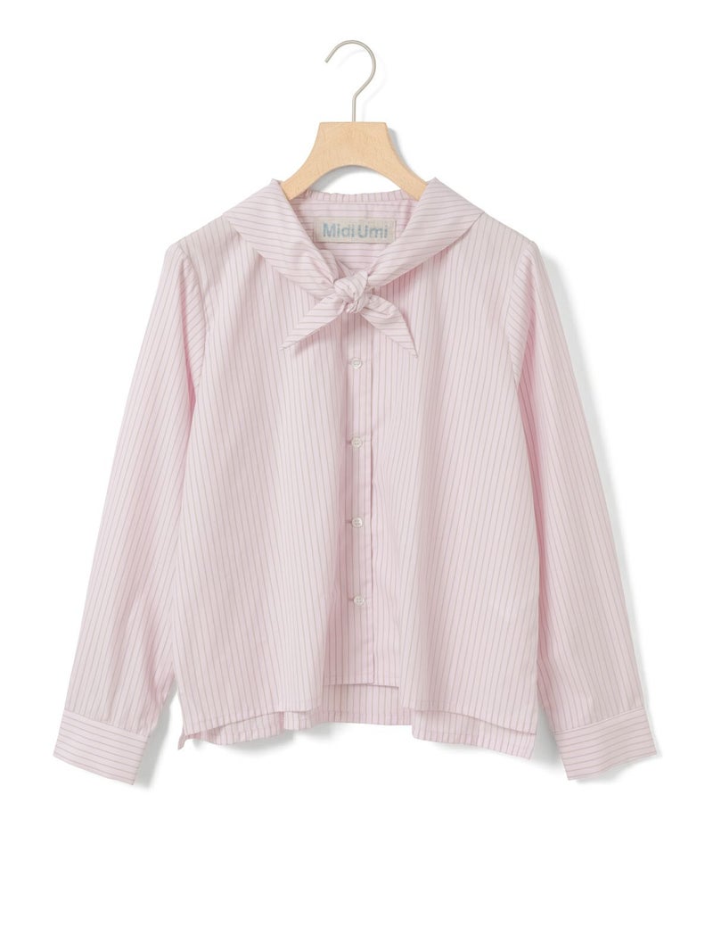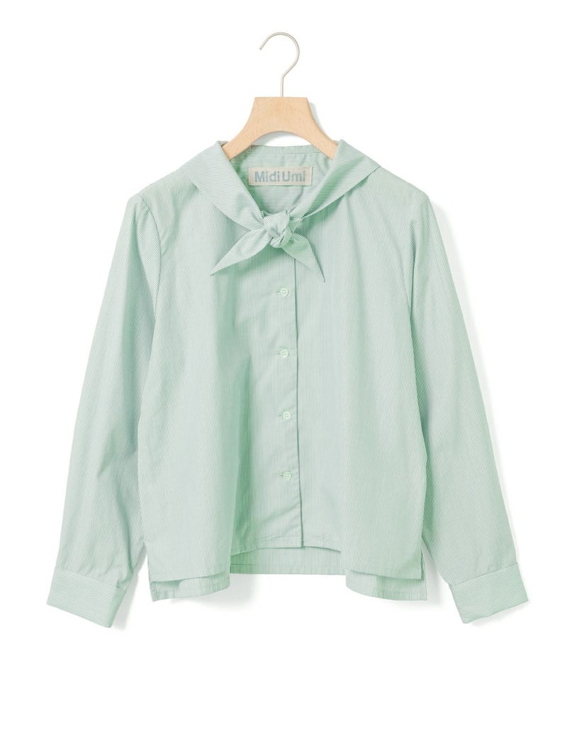 100双ブロードを使用したスカーフライクショートシャツです。メンズで良く使用するブロード素材で、織りによってストライプの柄がはっきり浮き出る素材が特徴。襟元のスカーフがアクセントになるデザインのシャツで、清楚に着こなせる1枚。結ばずにビックカラーで着用するのもオススメです。ジャケットの下に着用してオケージョン対応にも。春をイメージしたストライプの配色は全て異なりグリーンやブルーやピンクの色合いが魅力的なシャツになっています。