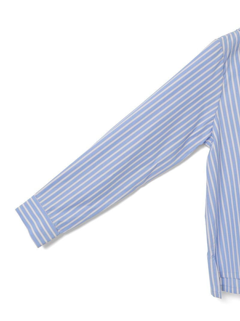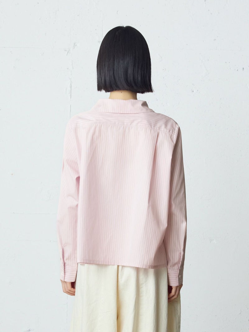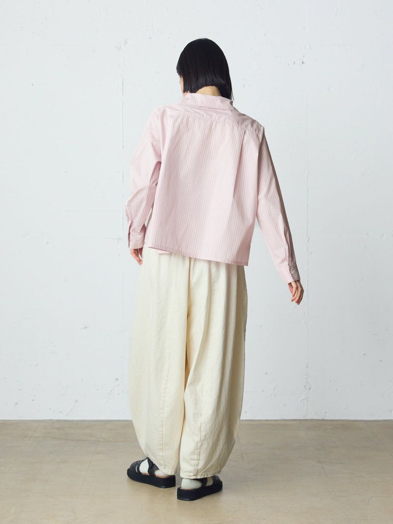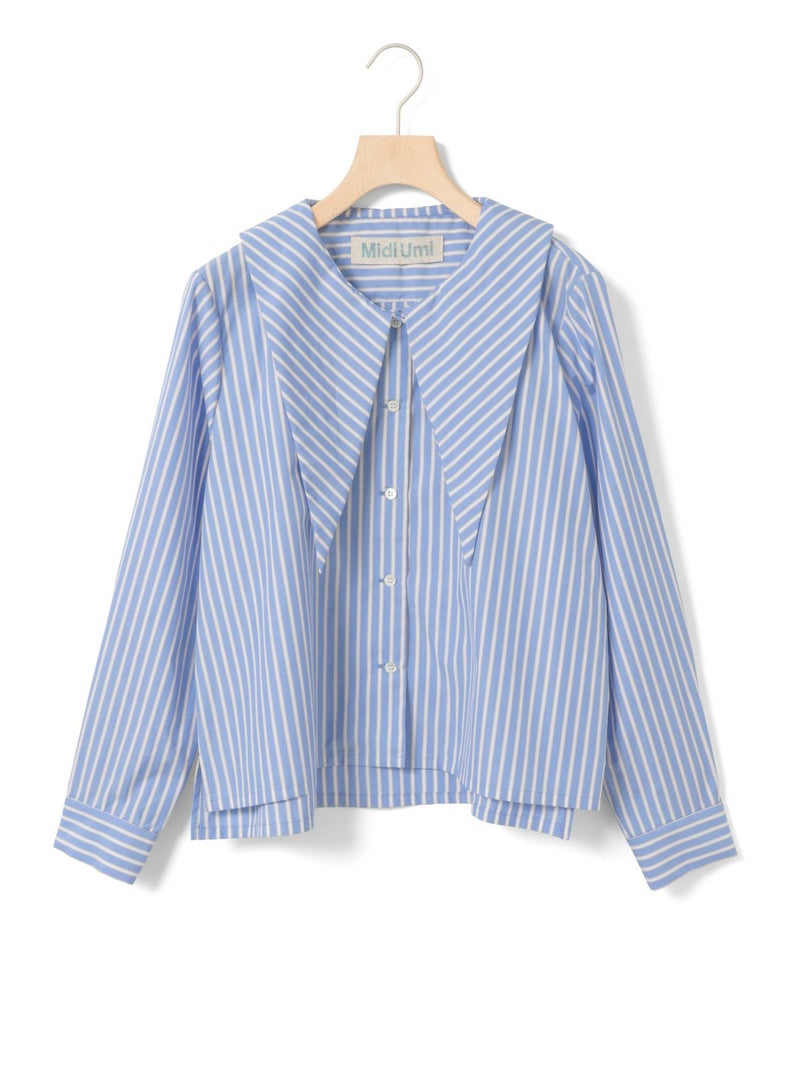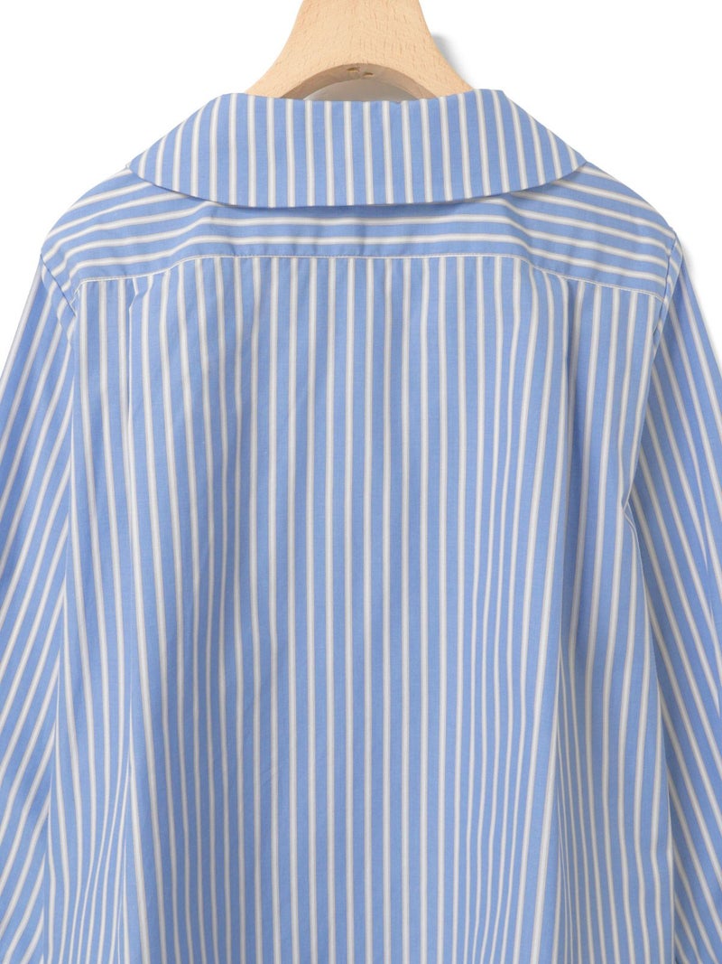 100双ブロードを使用したスカーフライクショートシャツです。メンズで良く使用するブロード素材で、織りによってストライプの柄がはっきり浮き出る素材が特徴。襟元のスカーフがアクセントになるデザインのシャツで、清楚に着こなせる1枚。結ばずにビックカラーで着用するのもオススメです。ジャケットの下に着用してオケージョン対応にも。春をイメージしたストライプの配色は全て異なりグリーンやブルーやピンクの色合いが魅力的なシャツになっています。