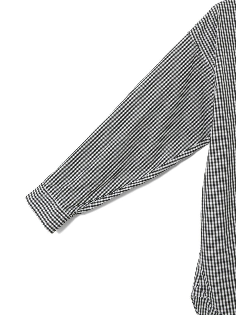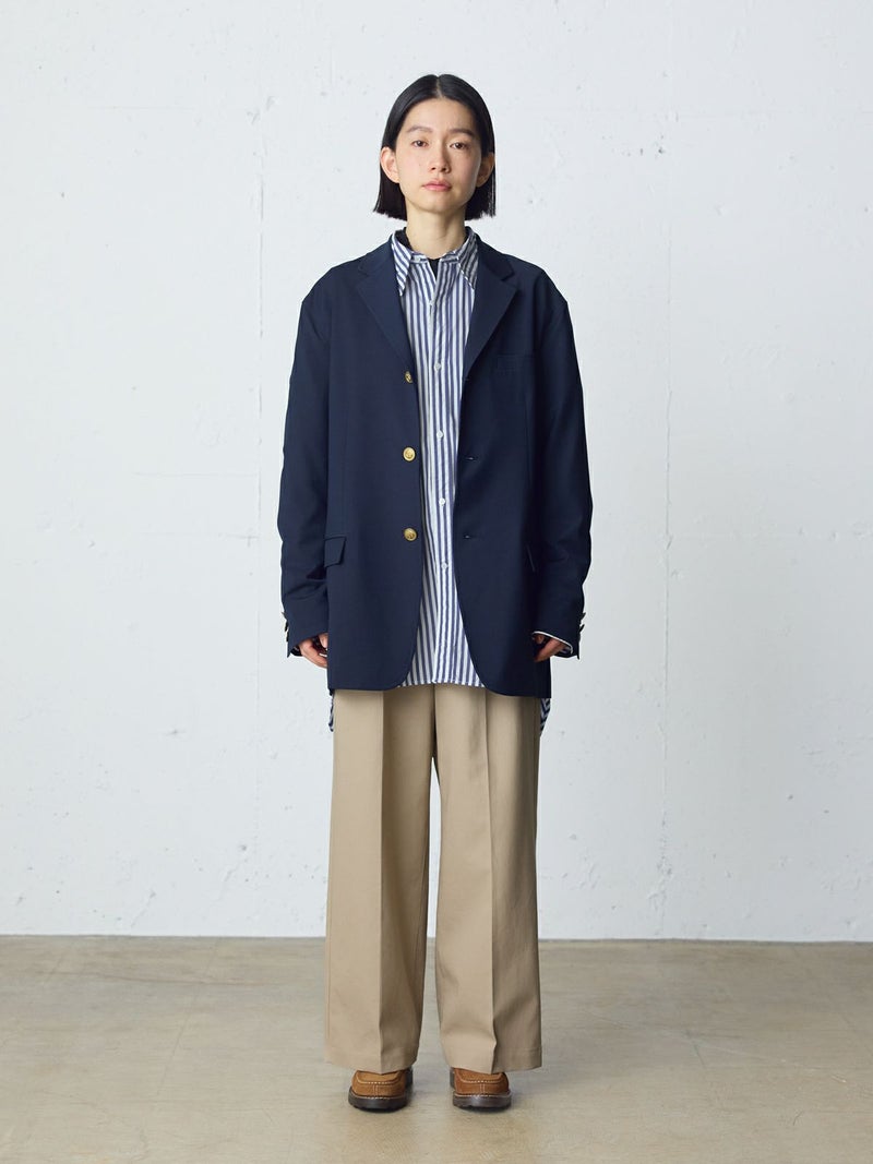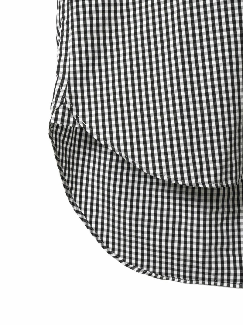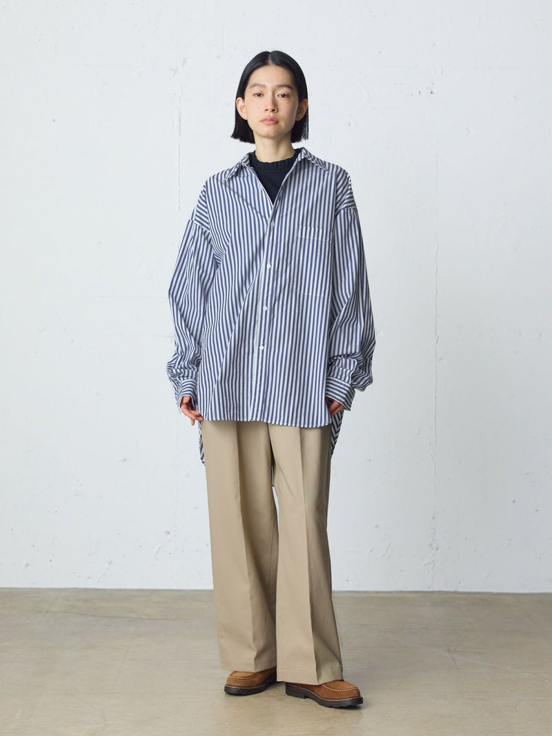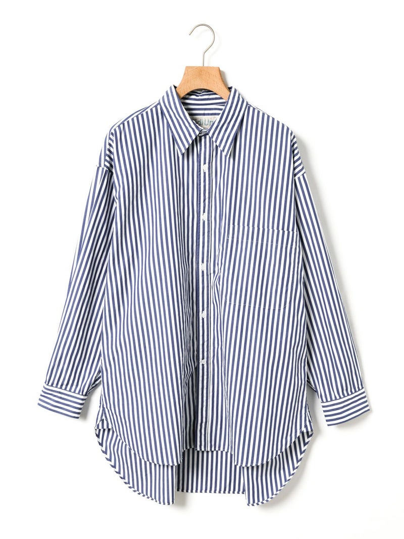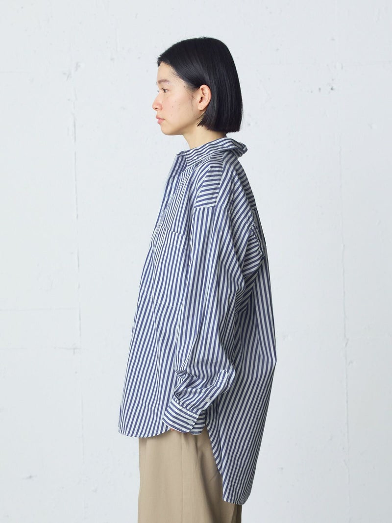トラディショナルをテーマに掲げたシャツアイテム、100双ブロードを使用したマニッシュデザインが印象的なパターンビッグシャツです。なるべく曲線を排除し、直線的でマニッシュな雰囲気に仕上げました。ブレザーの下にコーディネートができるトラディショナルな着こなしにお勧め。前後差を付けた丸みのある裾ラインはヒップの隠れるゆったりとしたサイズ感が特徴。第一ボタンを外し、袖を曲げたりと、ラフにコーディネートしても素敵です。爽やかなデザインで長く愛用していただける1枚です。