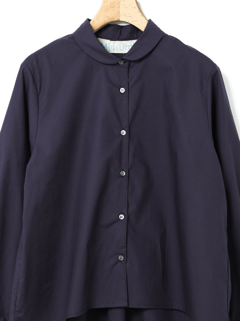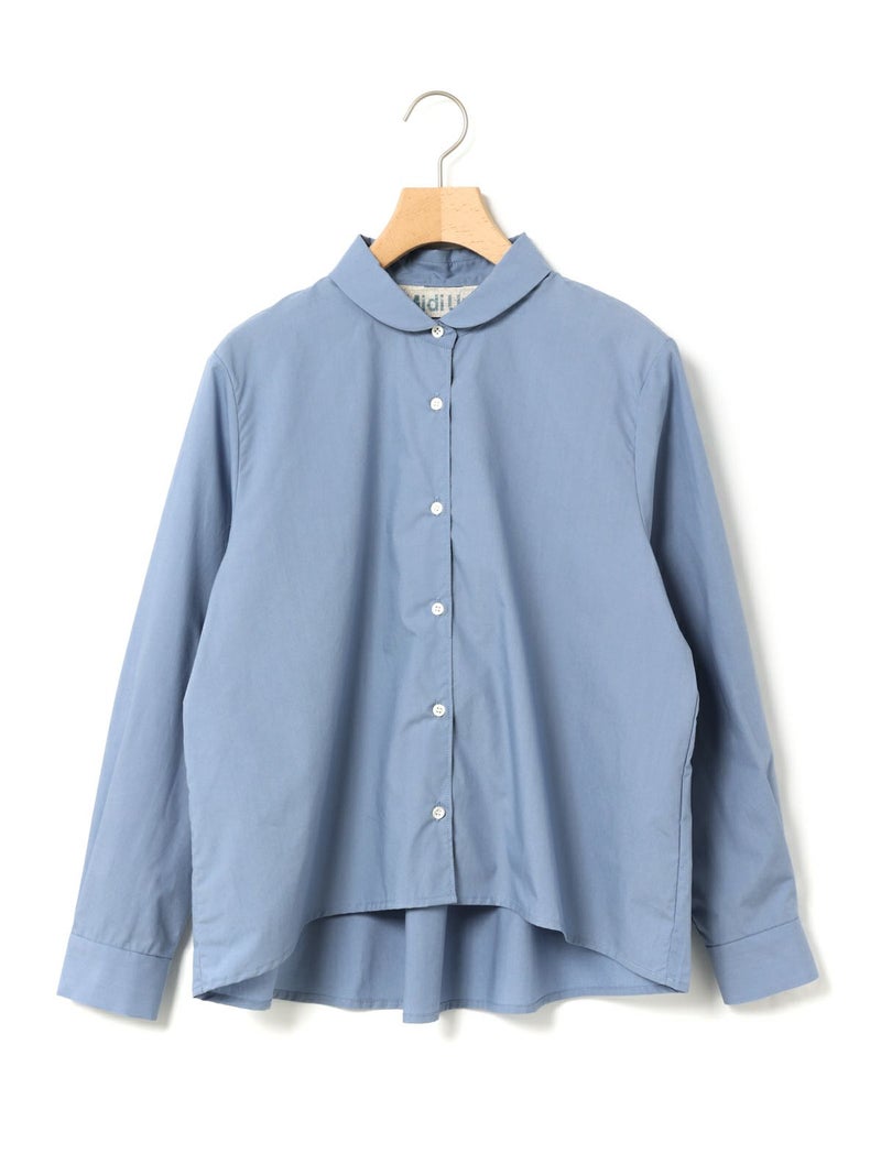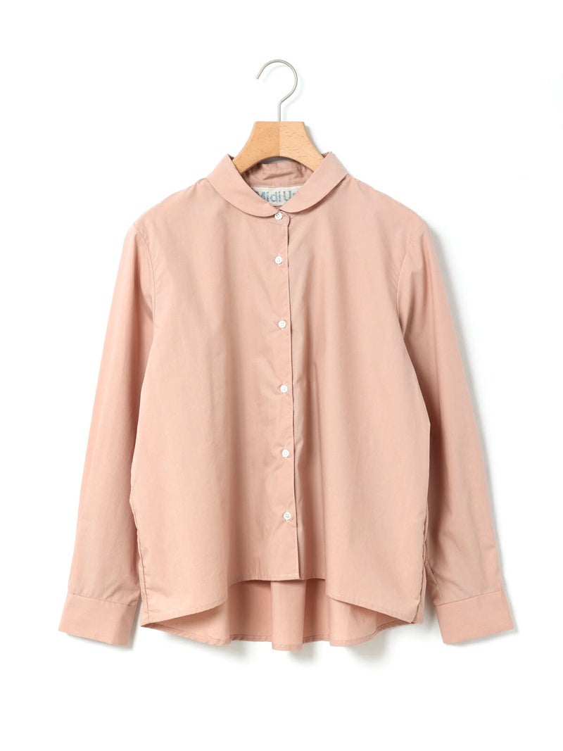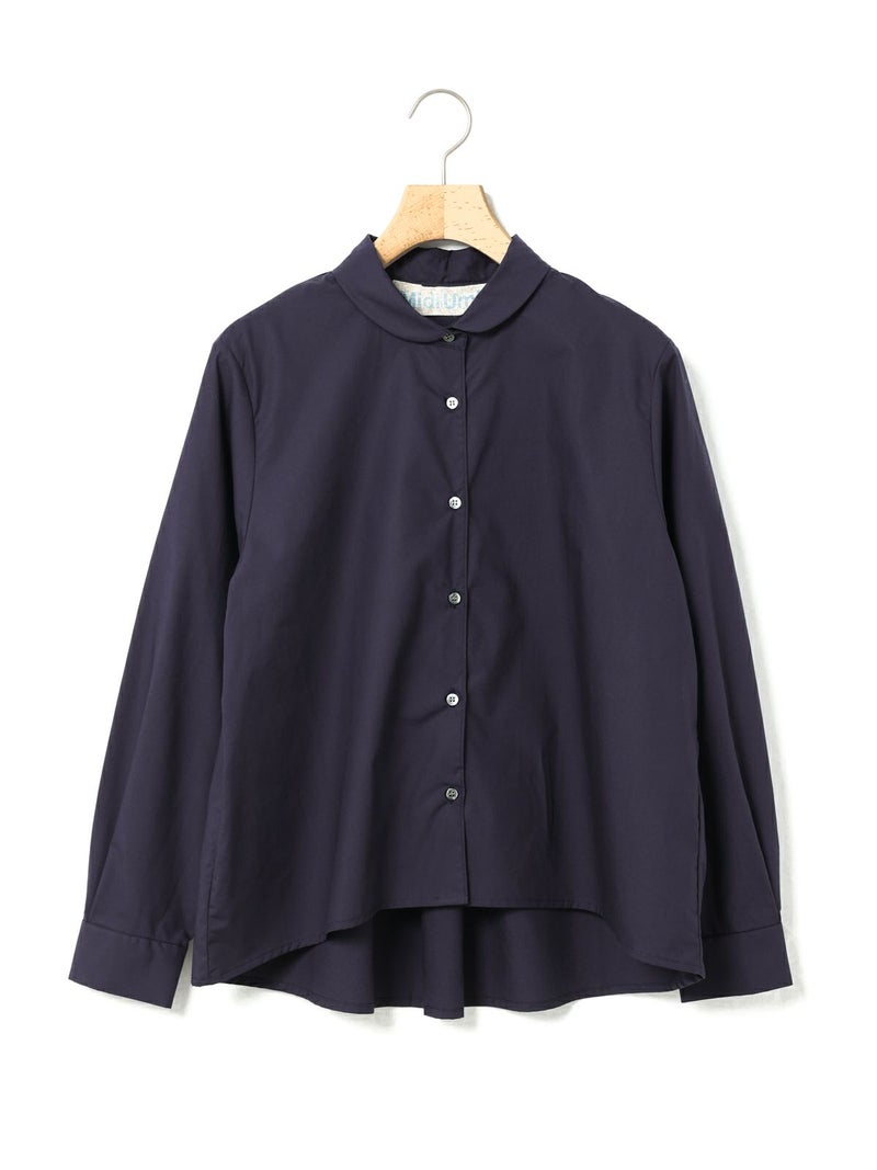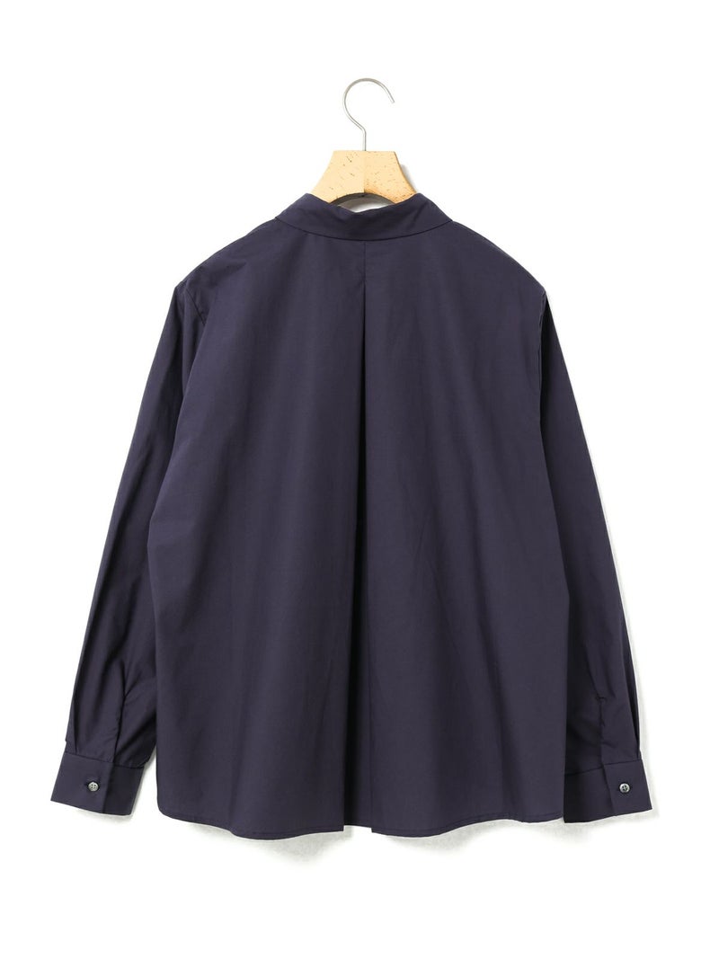 ハリのある50タイプライターを使用したダッチカラーシャツです。春を待たずに着用できる季節先取りの1枚です。上にニットなどを重ねるのもオススメ。以前に展開した3-739922型をもとにしたコンパクトめのサイズ感のダッチカラーがポイント。前後差がついており、バックはヒップにかかるほどの丈で着用しやすいシルエットを表現。シンプルに清楚な着こなしを演出できる1枚です。ピンクやサックスの優しい色合いを差し色にしています。