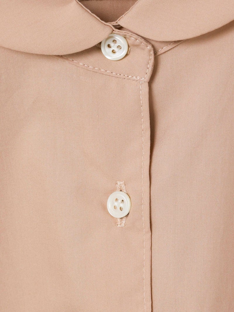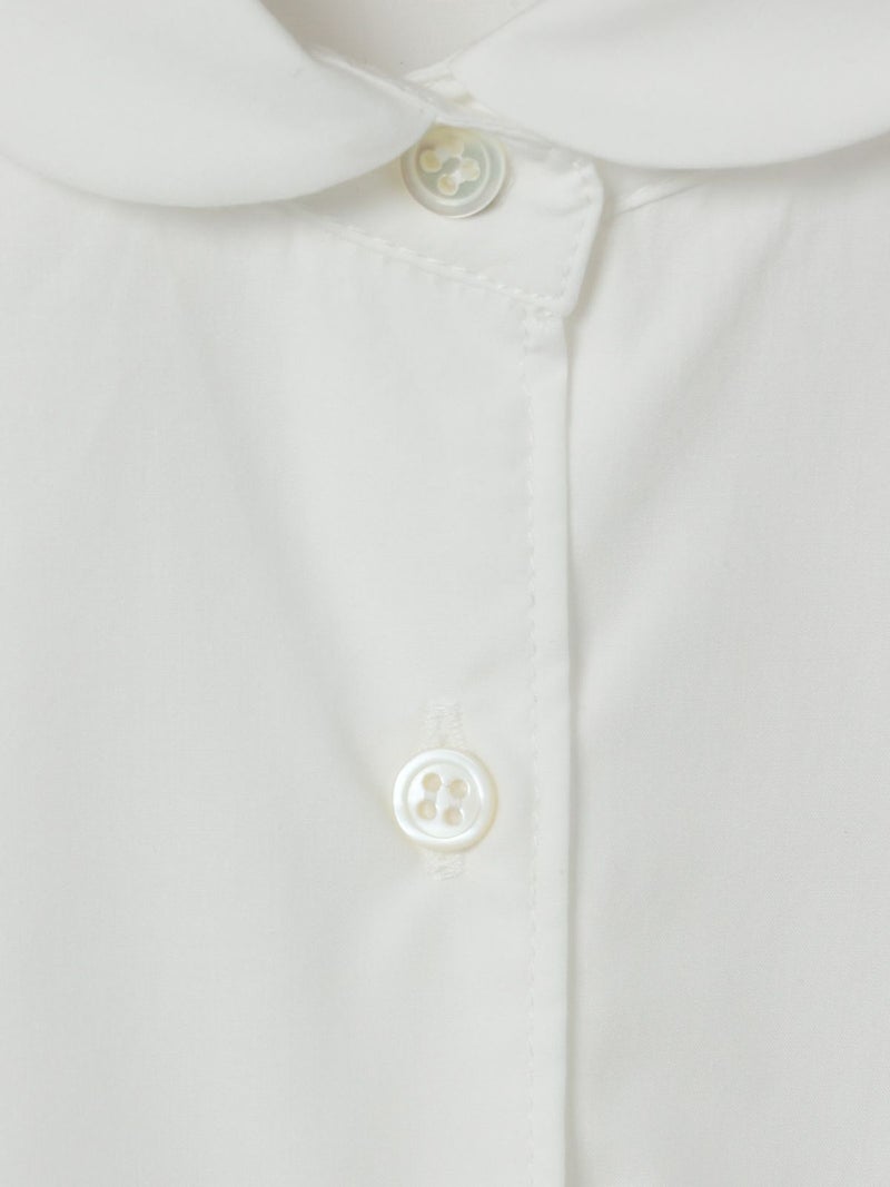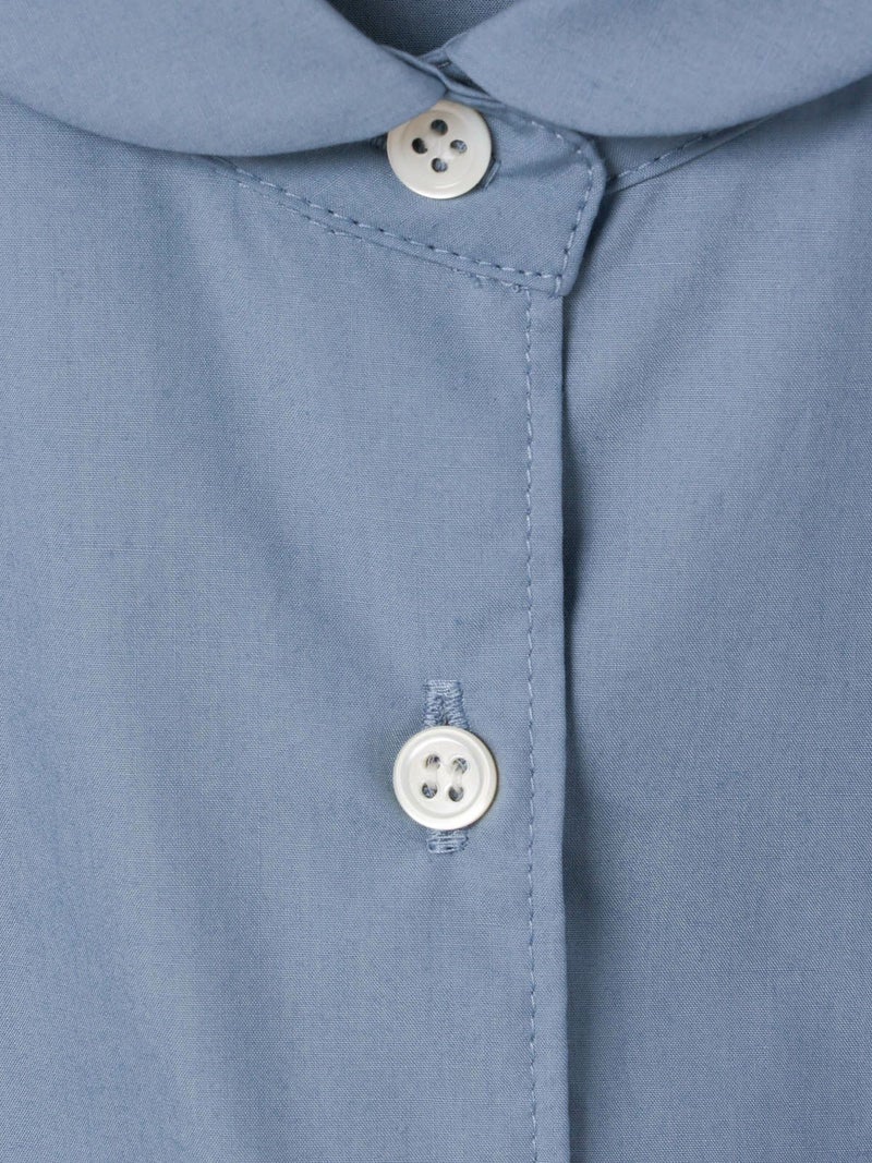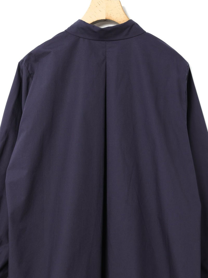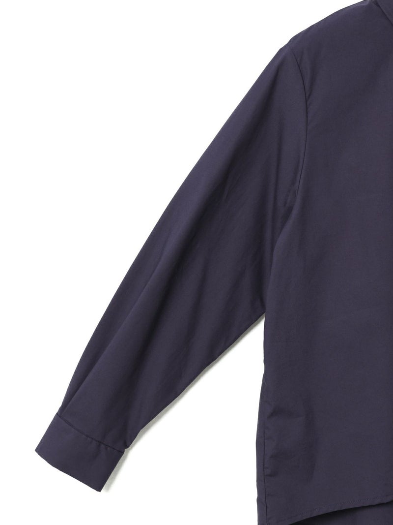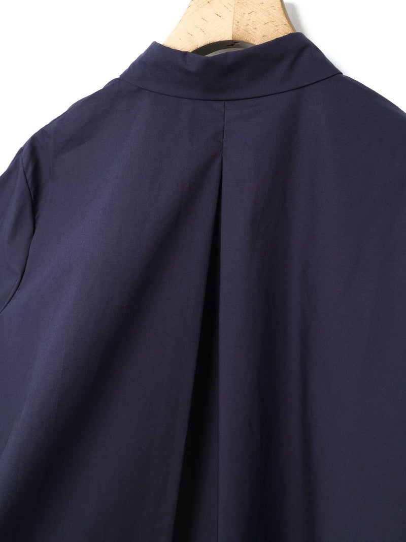 ハリのある50タイプライターを使用したダッチカラーシャツです。春を待たずに着用できる季節先取りの1枚です。上にニットなどを重ねるのもオススメ。以前に展開した3-739922型をもとにしたコンパクトめのサイズ感のダッチカラーがポイント。前後差がついており、バックはヒップにかかるほどの丈で着用しやすいシルエットを表現。シンプルに清楚な着こなしを演出できる1枚です。ピンクやサックスの優しい色合いを差し色にしています。