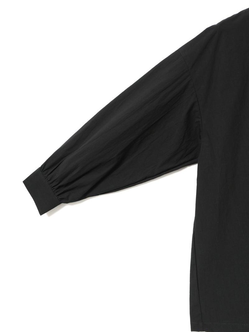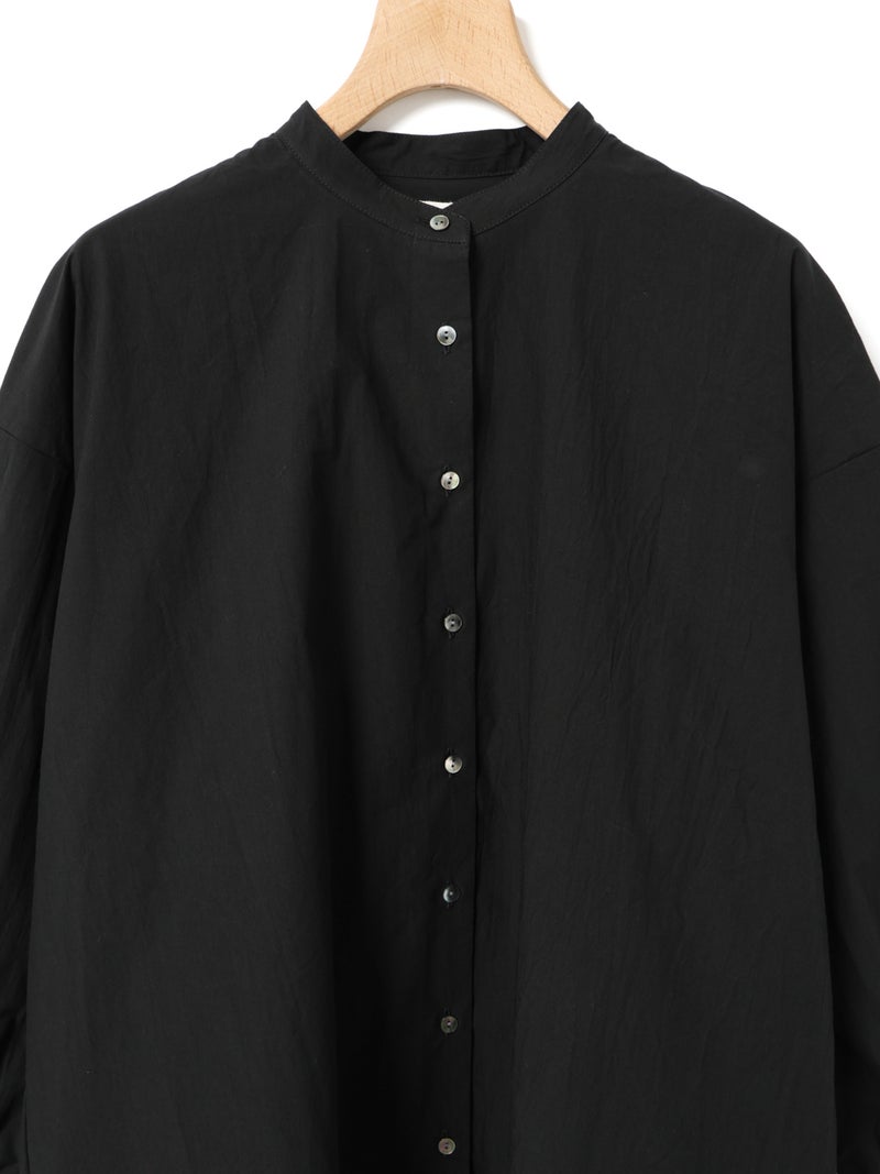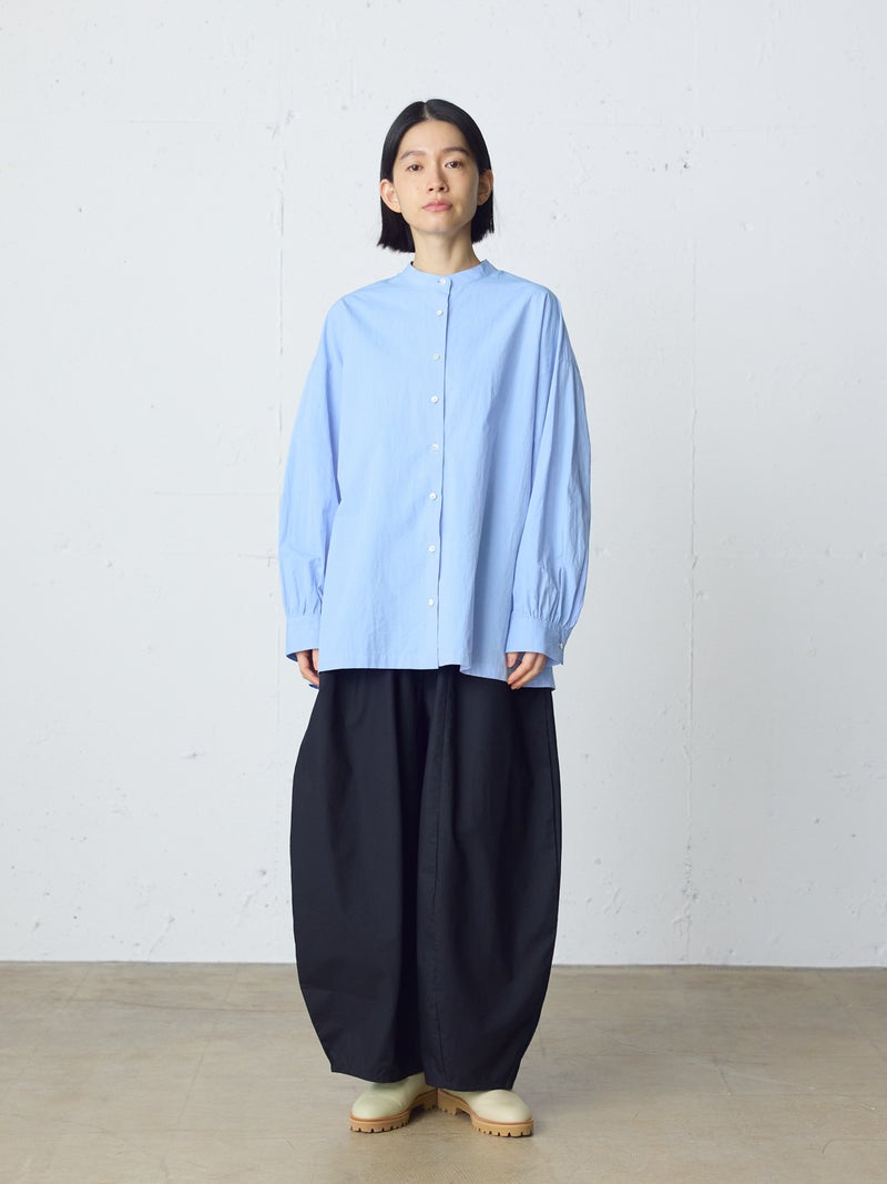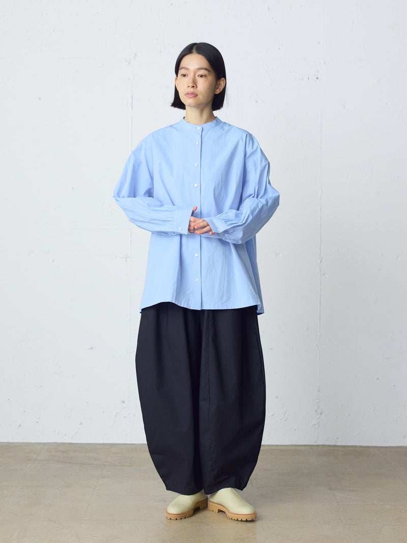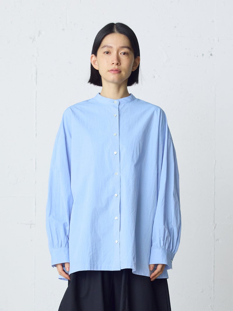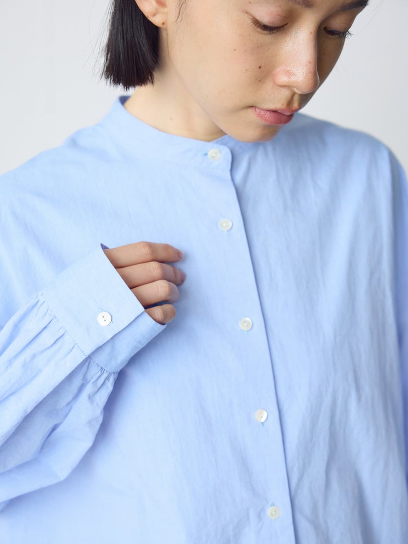 高密度に織られたタイプライター生地を使用したワイドバックギャザーシャツです。播州でワッシャー加工を施した、ヴィンテージライクな1枚。着丈は長めに、後ろはたっぷりギャザーを施したワイドなシルエットが魅力。シンプルに一枚で着用しても雰囲気のある着こなしを演出します。ベストを重ねてみたり、カーディガンを羽織ってみたりと季節に合わせて幅広くコーディネートしていいただける1枚です。