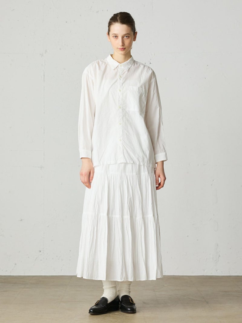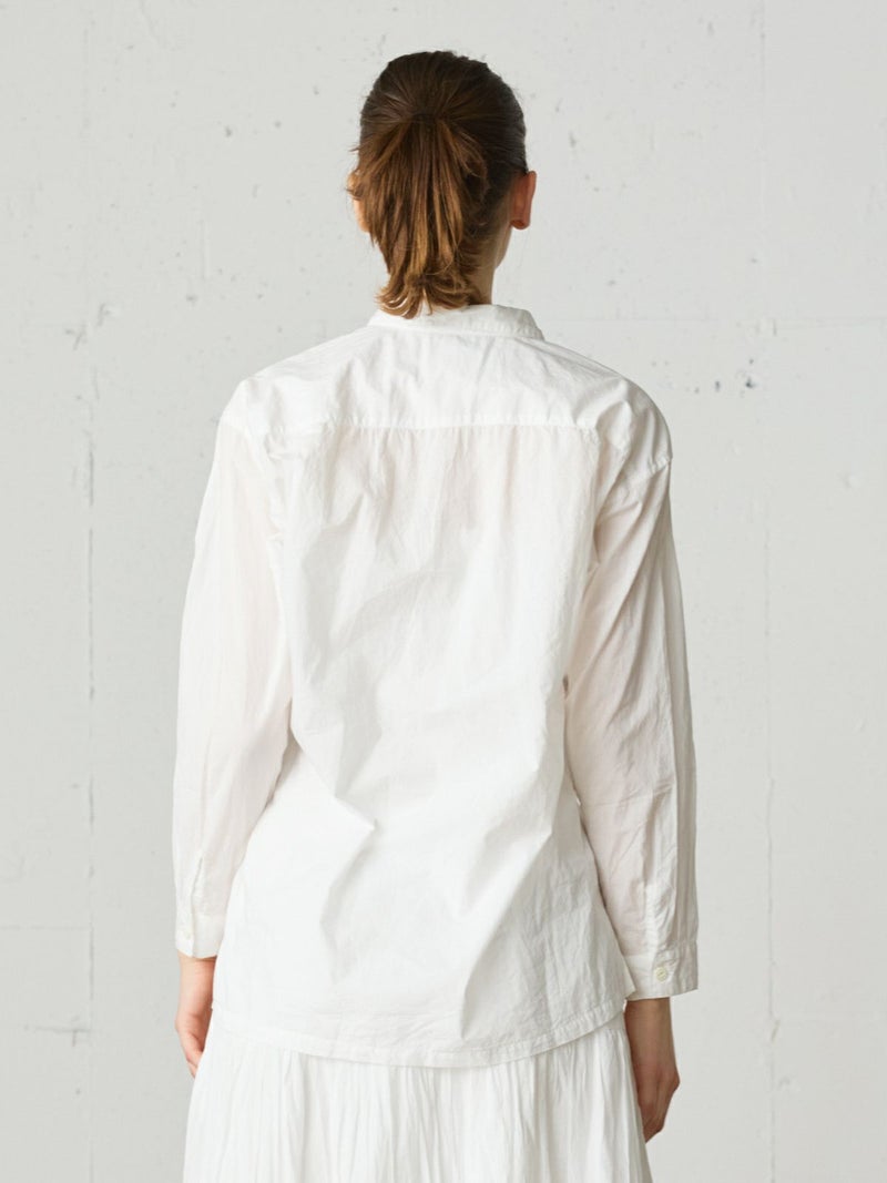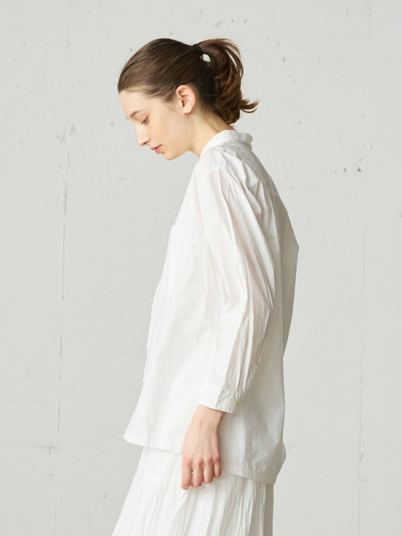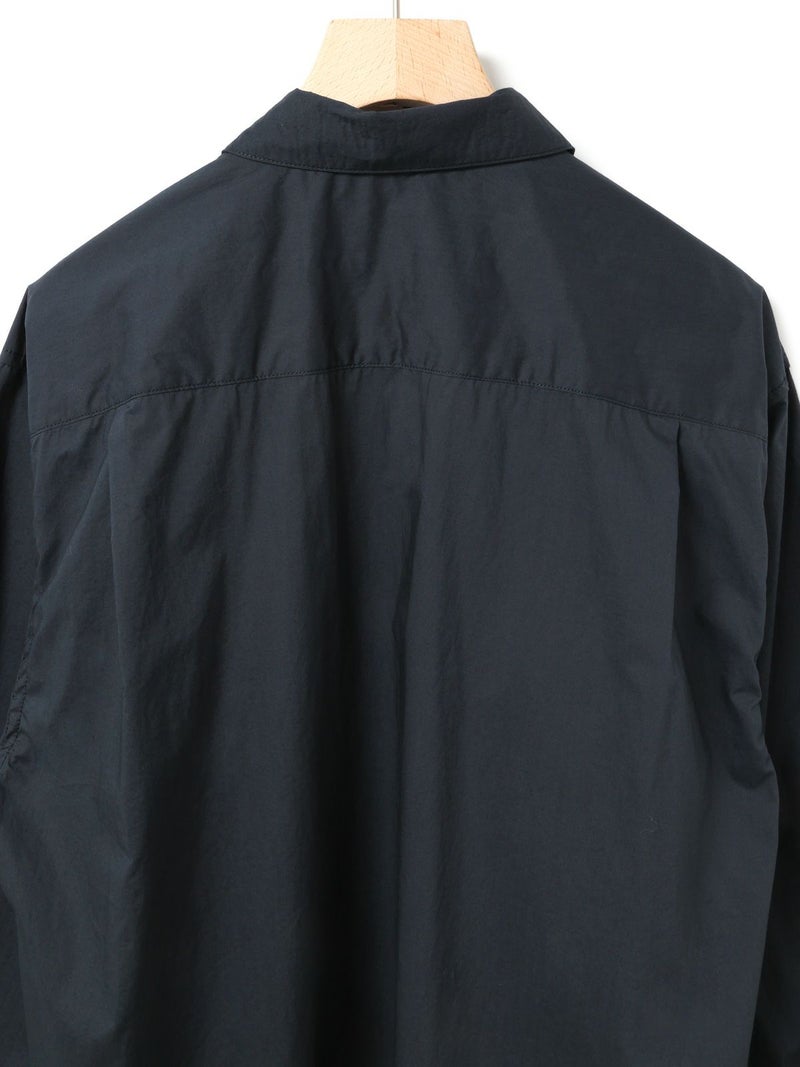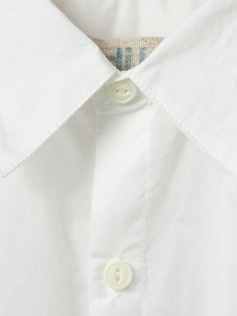 薄手のタイプライターを使用したワークシャツ。サラッとした素材感と程よい透け感がポイントの今季おすすめのベーシックな1枚です。胸ポケット付き。ヒップの隠れる少し長めのシルエットでシンプルに着こなせるシャツとなっています。オフホワイトとネイビーの合わせやすい2色展開。カジュアルなコーディネートに欠かせない大人のシャツを演出します。