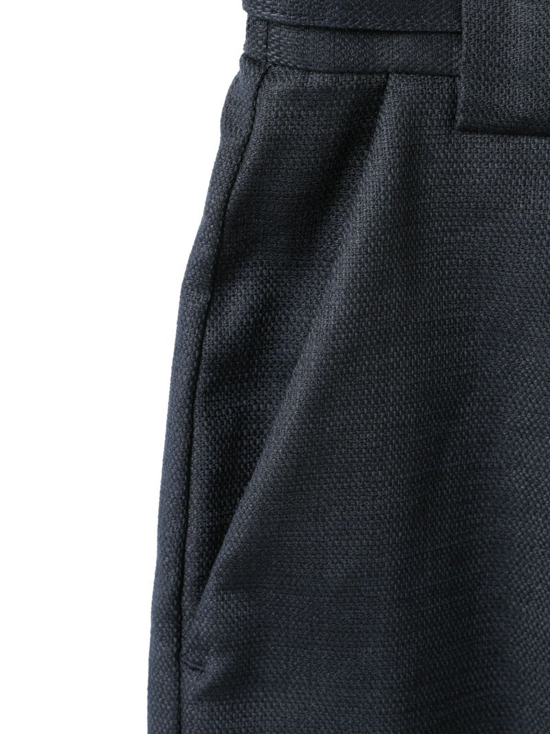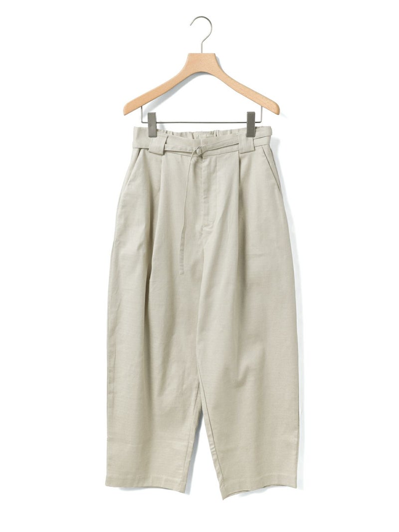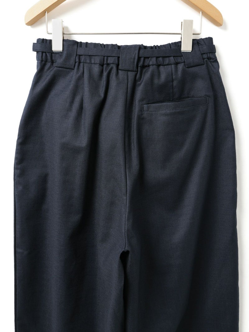 麻のような凹凸感がある素材をセミフォーマルな雰囲気に落とし込んだベルト付きスラックスパンツです。程よくゆとりがあり丸みのあるシルエットを表現。ベルト付なのでウエストキープのしやすいデザイン仕上げとなっています。ストレッチが入っているので動きやすく穿きやすさを体感していただけます。春の着こなしを先取りしていただけるベーシックな3色のカラーで着回しアイテムとして重宝できる1枚です。同シリーズ1-760124/ベルト付きスラックス、1-770115/ショートシャツジャケット、1-750116/バルーンサロペットも展開。