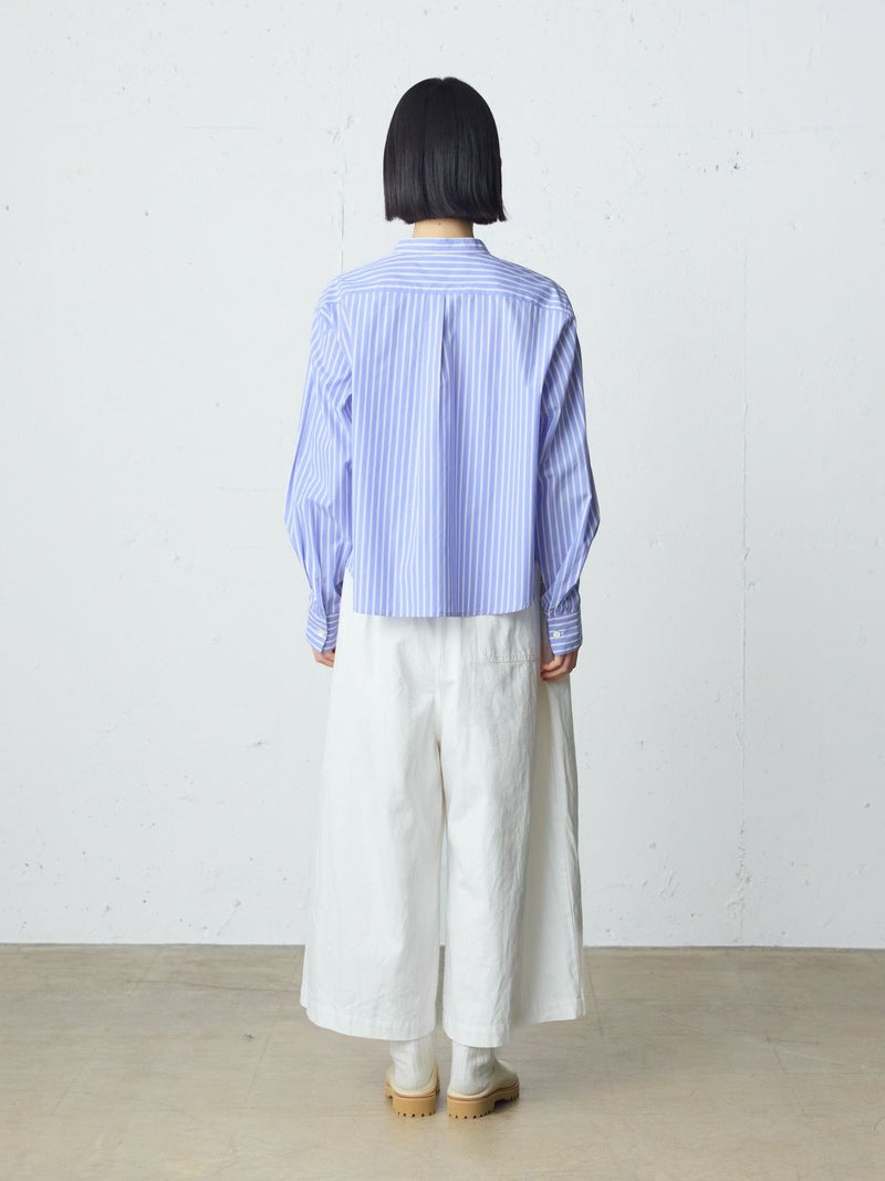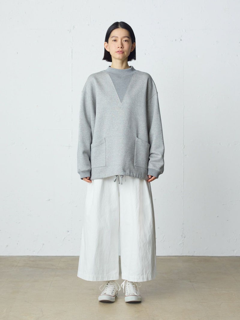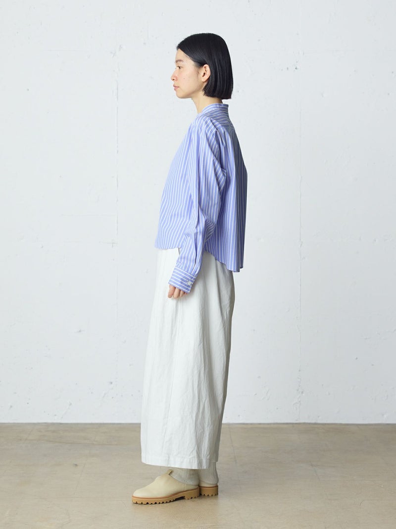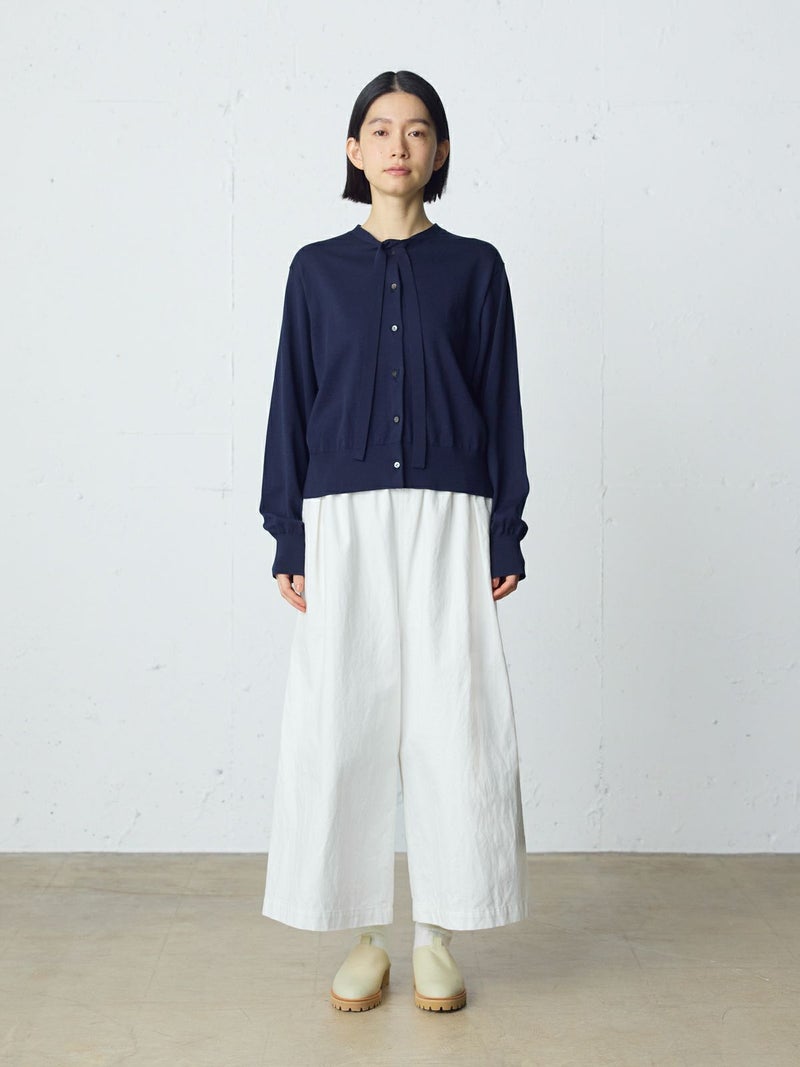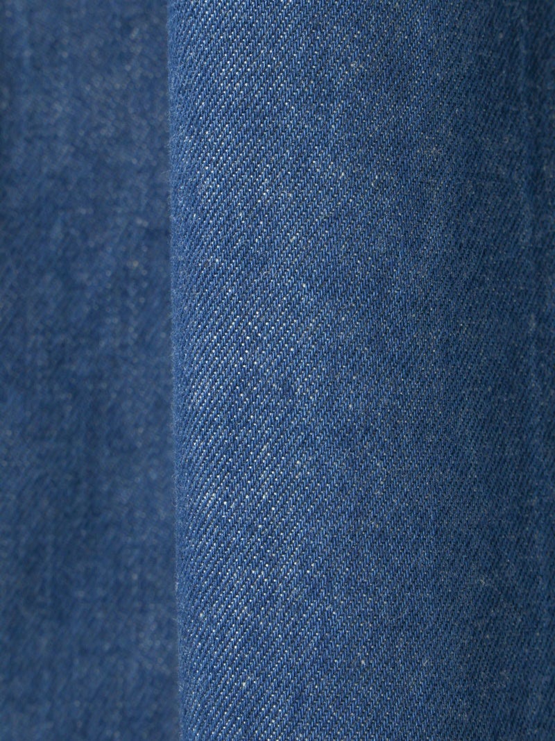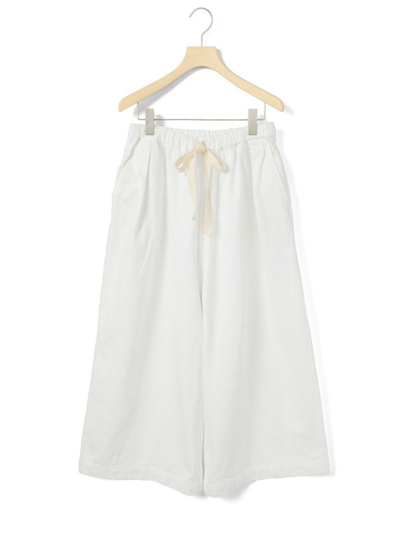 10ozのデニムを使用したワイドタックデニム。洗いをかけ柔らかい質感のデニムに仕上げました。9分丈のクロップドパンツのシルエットを表現。ウエストはリラックス感のあるゴム使用に加え調整紐付き。股上を深めにとっているので、ハイウエストでも腰穿きでも素敵です。シルエットの異なる同シリーズ1-760136/ワイドテーパードデニムも展開。