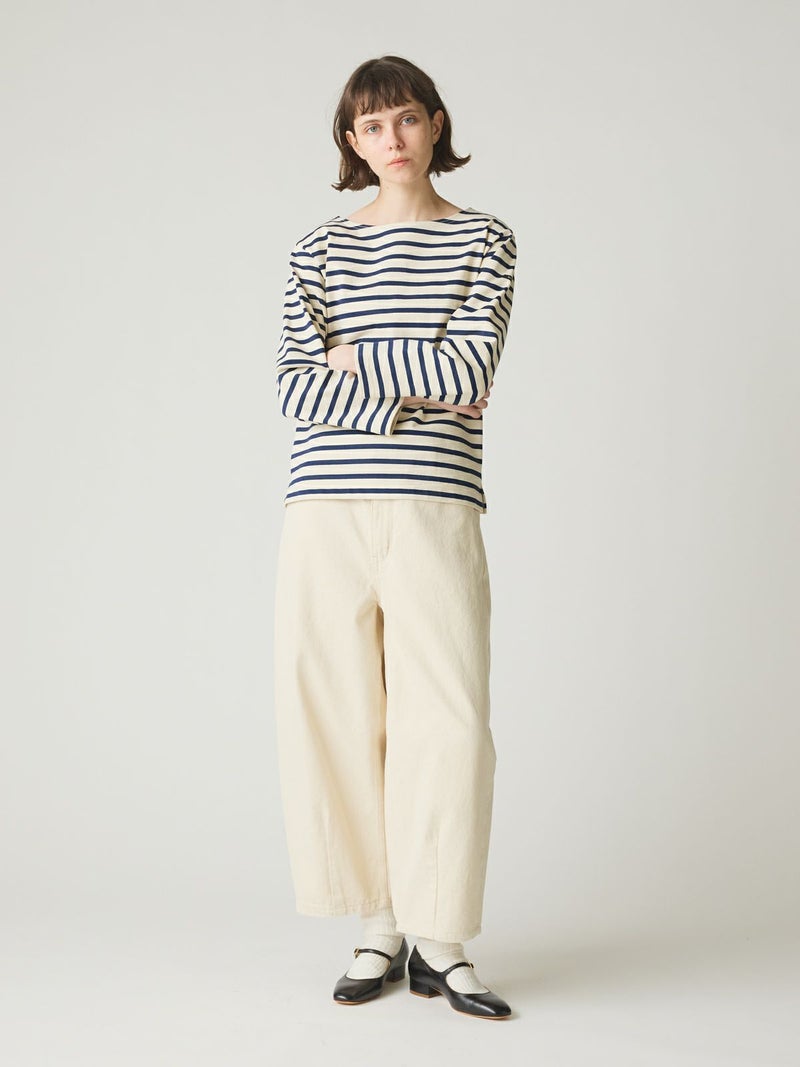 MidiUmiの定番デニムが春カラーになり再入荷しました。ハイウエストで丸みのあるシルエットが特徴のハイウエストカーブデニムです。ハイウエストでも腰穿きでもコーディネートを楽しんでいただけます。前後に裾ステッチを入れたデザインで裾をロールアップしていただいても素敵です。2サイズ展開の着回しのしやすい3色のカラーで展開。ベルト使いで腰回りにアクセントをつけてもOK。カジュアルに着こなせる1枚です。