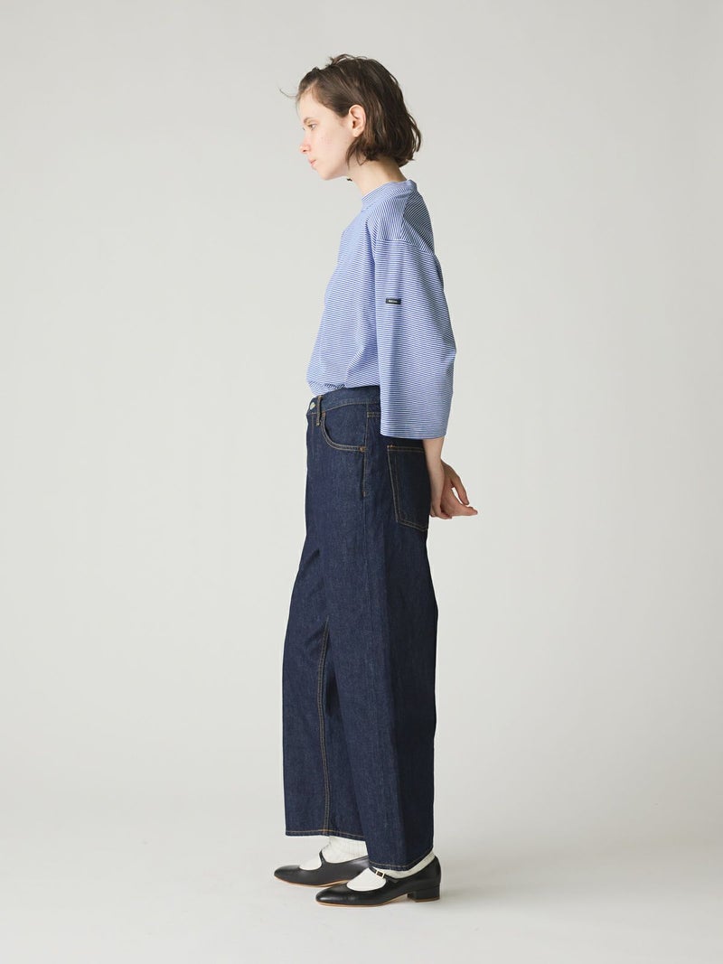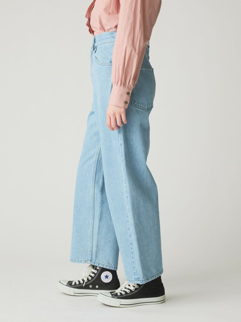 MidiUmiのNEWアイテム、ハイウエストワイドストレートデニムです。春のカジュアルアイテムとしてベーシックに決まる1枚。ストレッチは入っておりません。穿きなれていくうちにデニムが馴染んできます。程よいワイド感でサイズ展開有。シャツインもお勧めでベルト使いも可能なストレートデニムです。長く愛用していただける今季お勧めのデニムです。