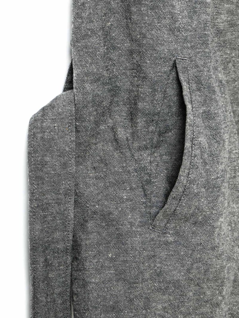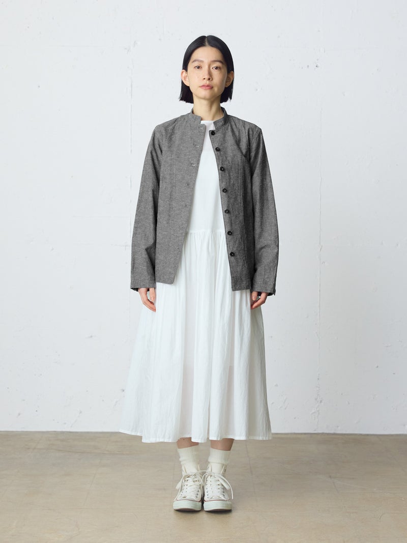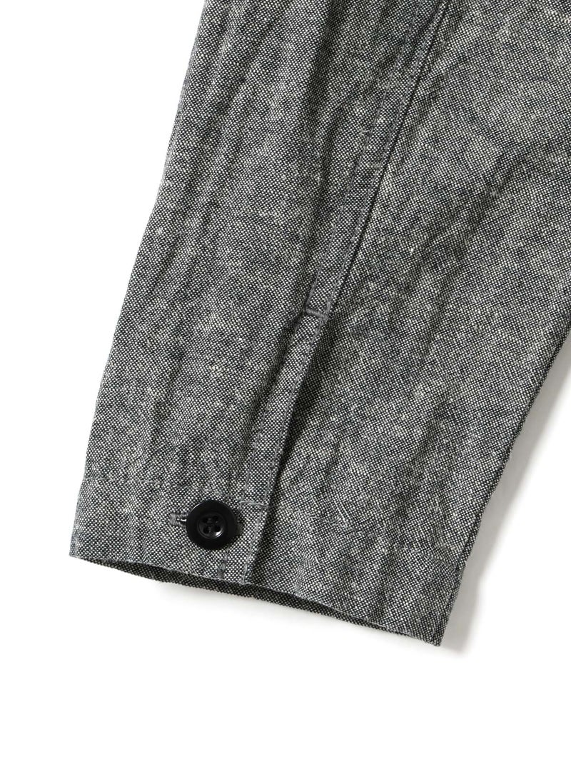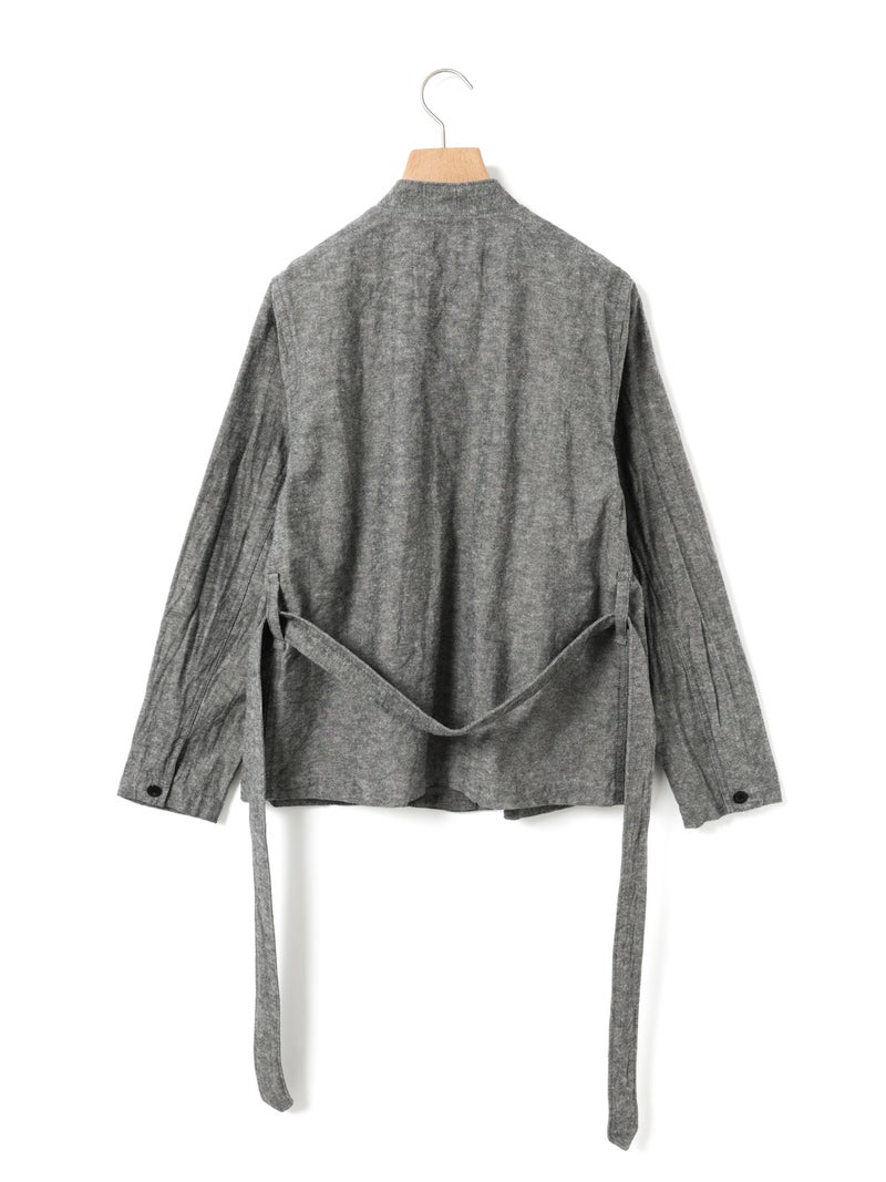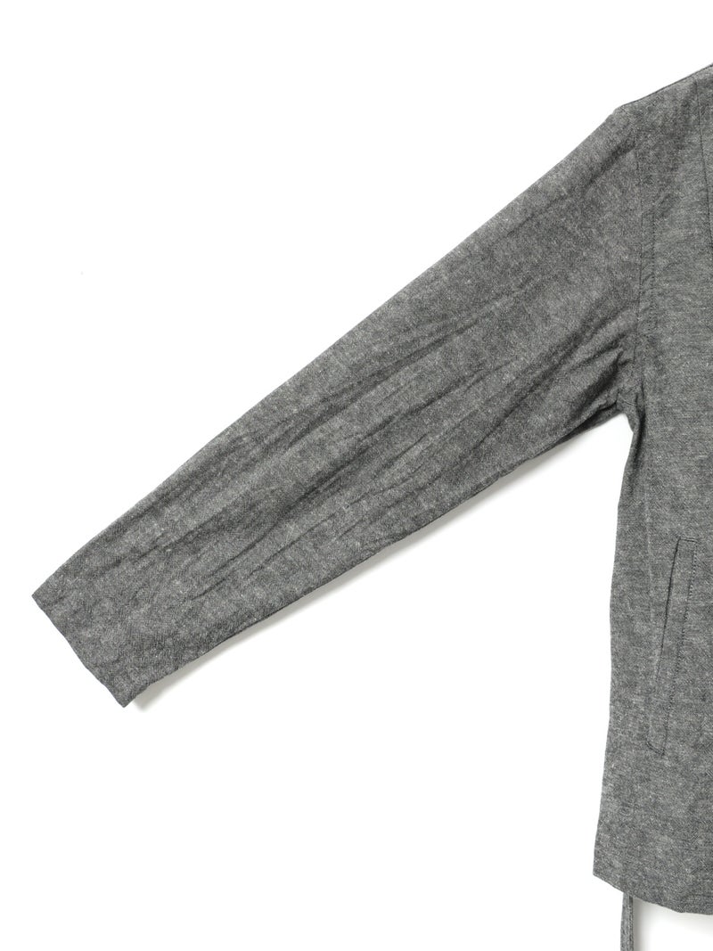 コットンリネンの平織キャンバス地でデザインしたC/Lスタンドカラージャケットです。シリーズとして1-760147/C/Lタックショートパンツと1-730131/C/Lベストも展開。ヴィンテージ生地のように柔らかく、ナチュラルな風合いが特徴。女性物のワークウェアから着想を得たジャケットで、肩ダーツやウエストマークできるような仕様など、女性らしい雰囲気と素材の無骨さがマッチした大人女性に提案したいヴィンテージ風ジャケットに仕上げました。シャープさのあるスタンドネックからのフロントボタンやすっきりとしたシルエット、ウエストマークが可能なベルトが付いた雰囲気のあるデザインが魅力的です。