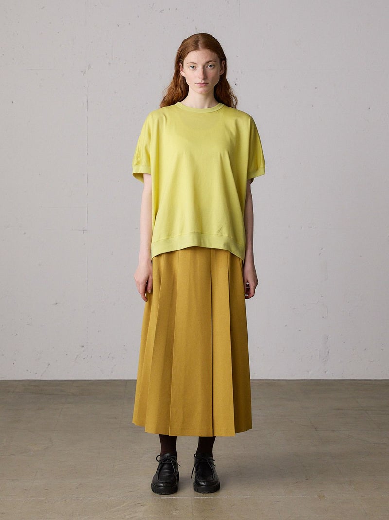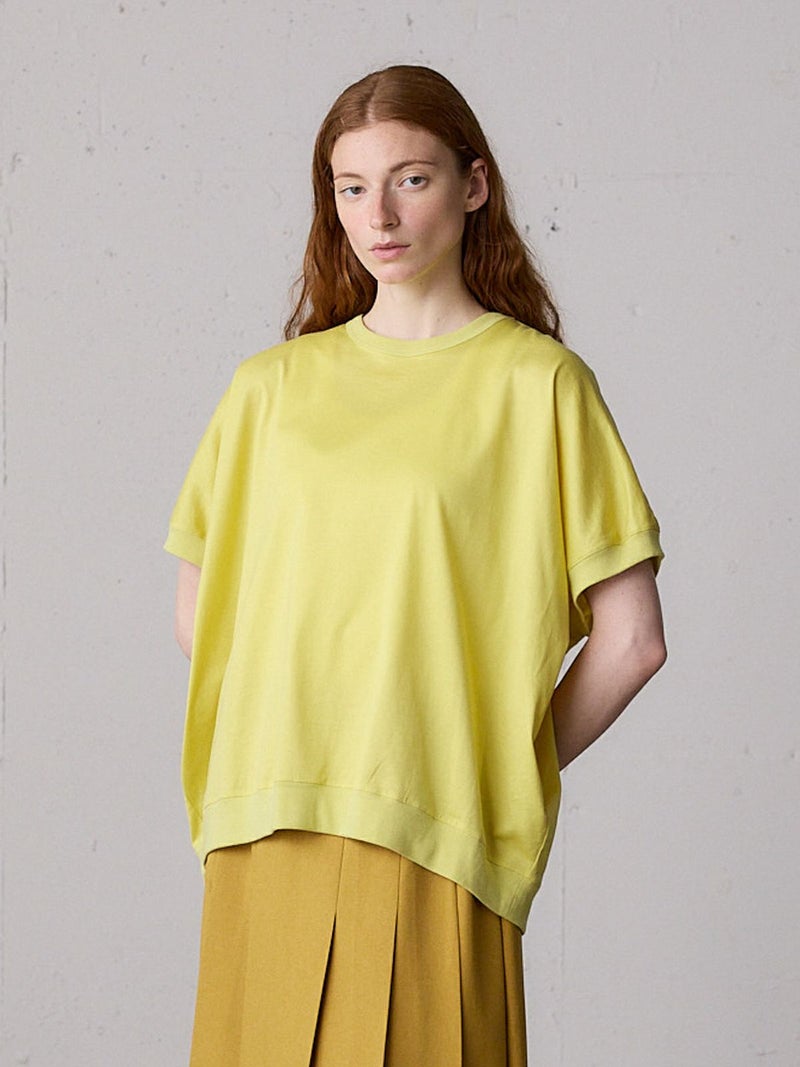 シルケット加工を施した60/2コットン天竺を使用したコクーンプルオーバーが新登場。カラー展開を変更して新鮮なアイテムとなっています。綺麗な表面感が特徴の生地で、秋カラーを取り入れたMidiUmiのリピート商品です。程よい透け感がポイント。ゆとりのあるコクーンのシルエットでヒップの隠れる着やすいデザインとなっています。秋物を早めに取り入れやすいシンプルな着回しアイテムです。