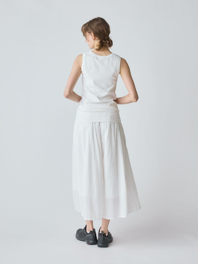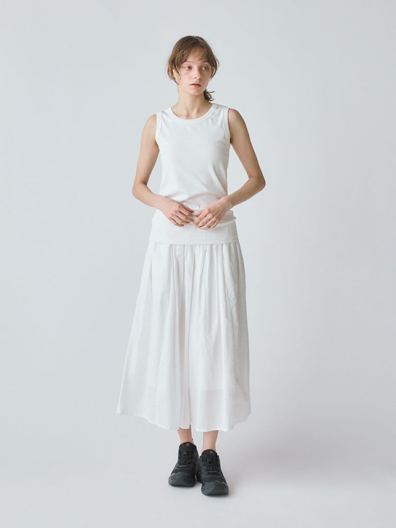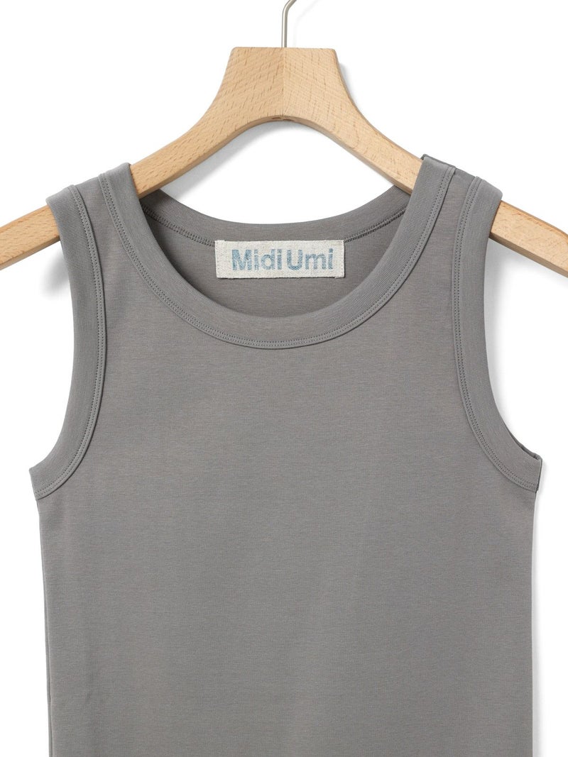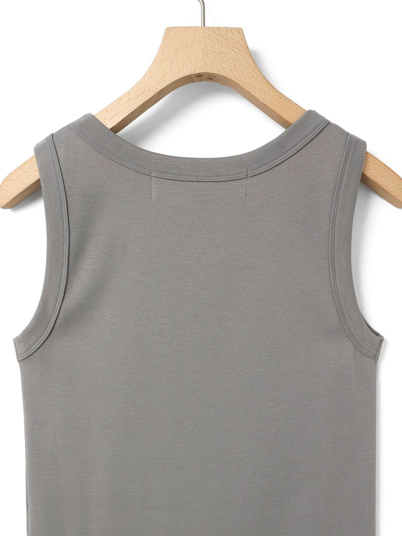 毛羽を落としたキレイめのベアフライスを使用したベーシックタンクトップです。ショート丈のトップスのインナーとして使いやすい長めの着丈を表現。伸縮性もあり夏場に快適に着用できる冷感生地なので着心地よく身に着けていただけます。