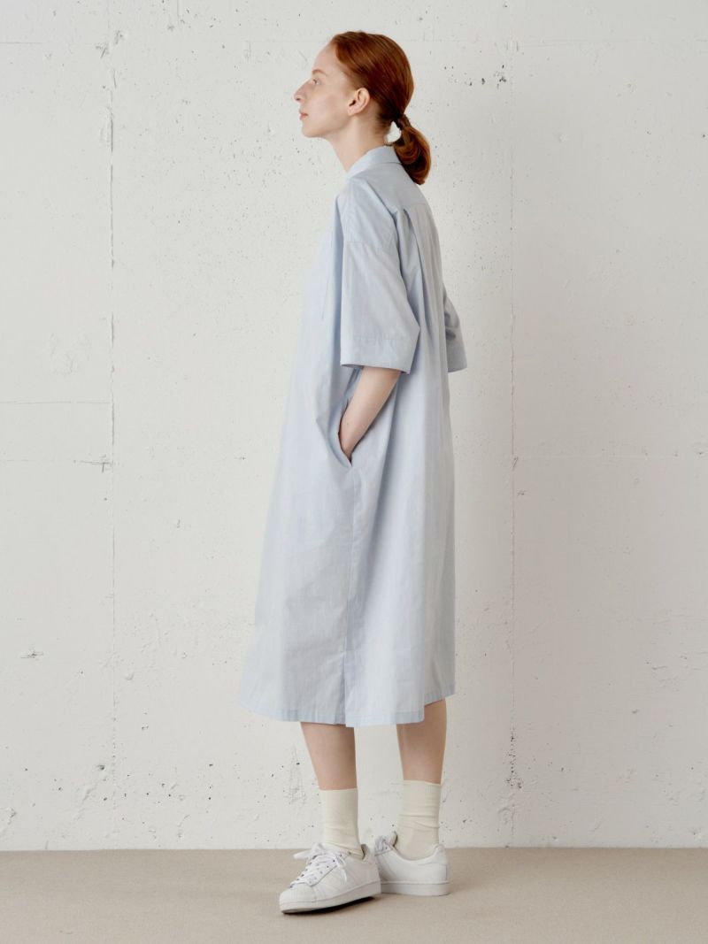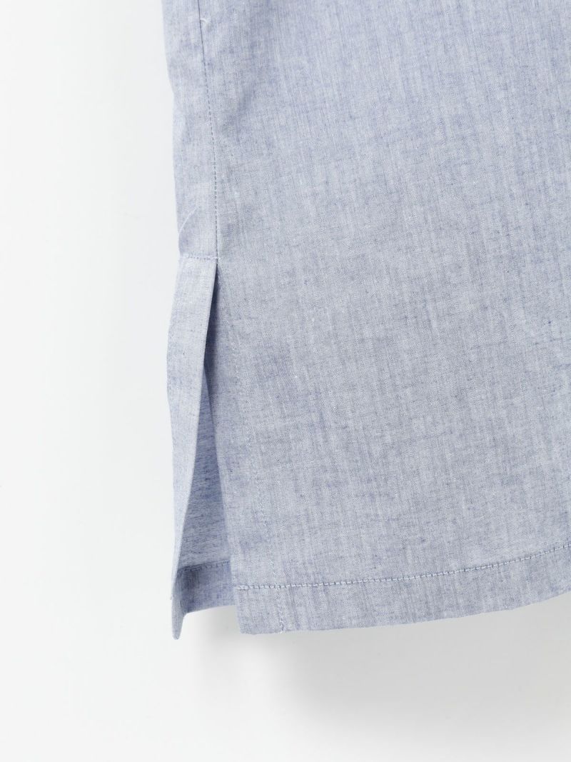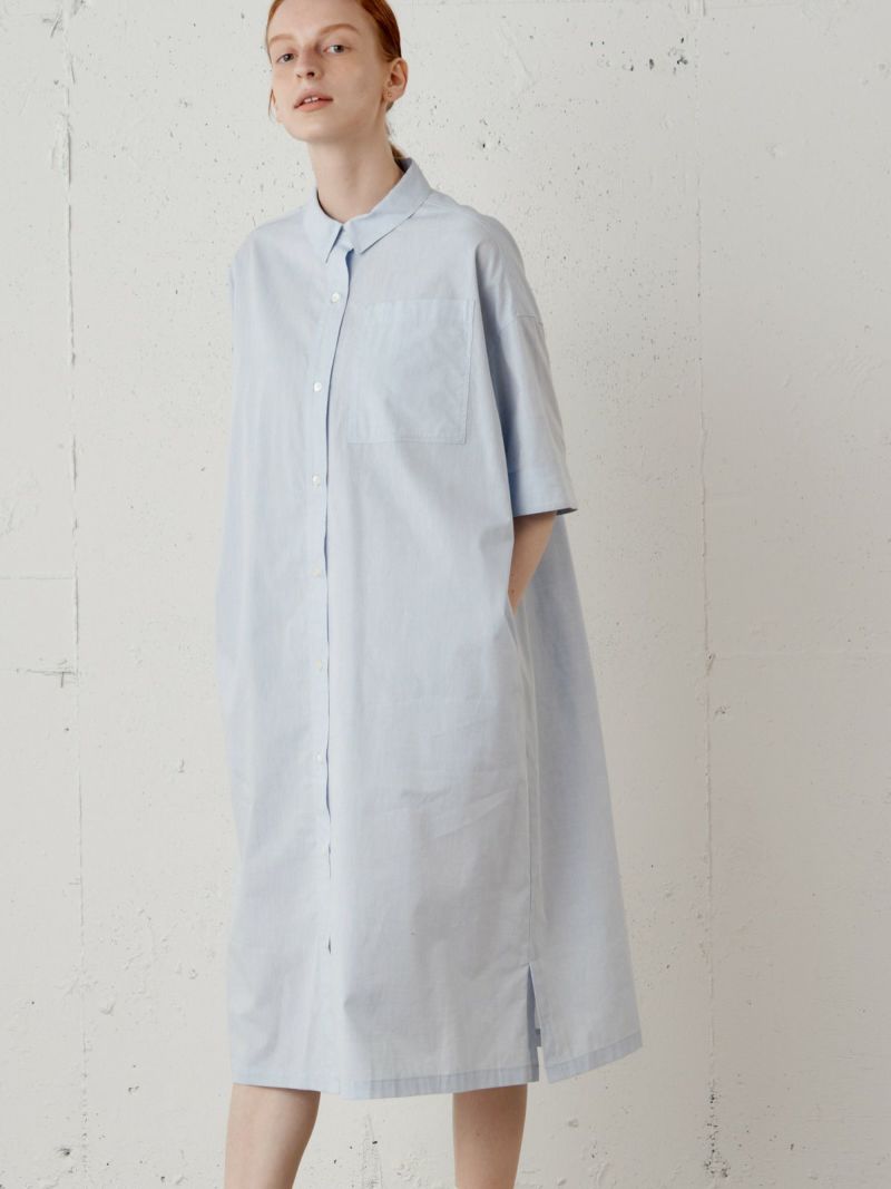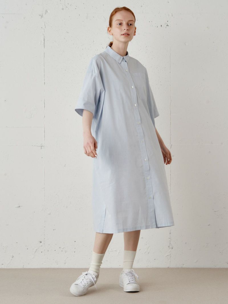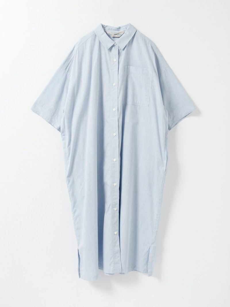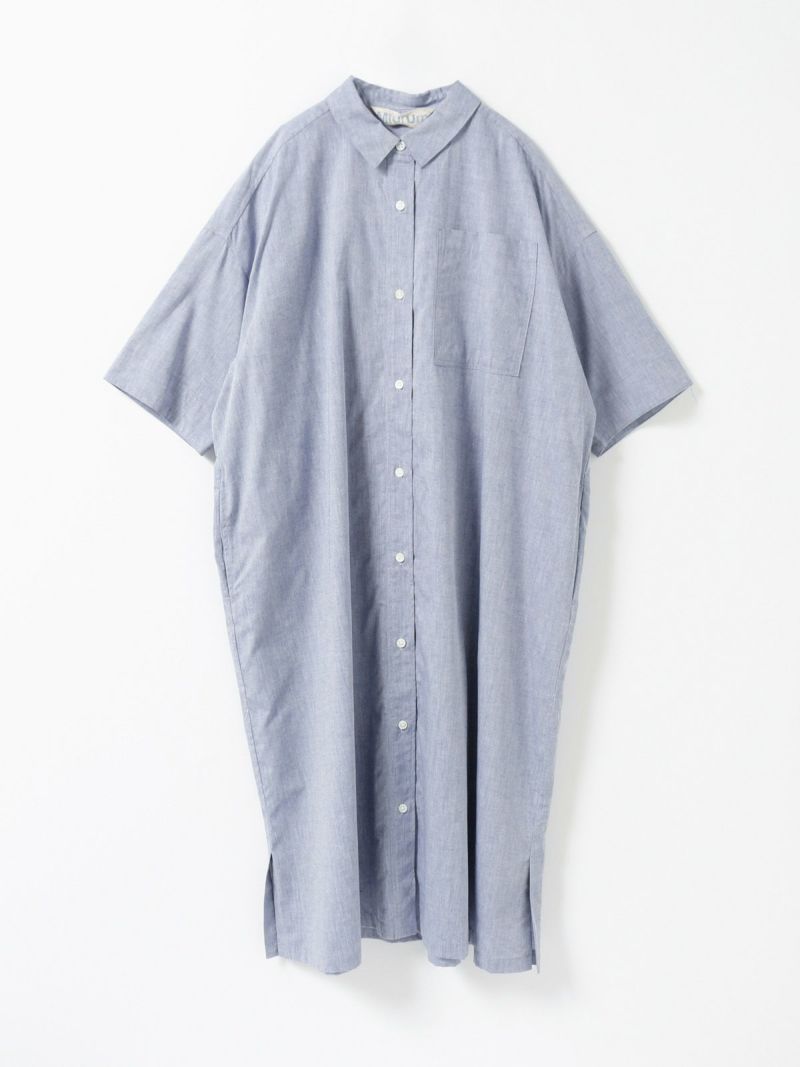 ナチュラルな風合いのシャンブレーシリーズ、シャツワンピースです。裾までストレートにデザインされたベーシックなシルエットで洗いなしできれい見えのするシンプルなシャツワンピースです。フロントボタンを外して羽織で着こなしても素敵です。着回しのきく色展開で長く愛用できるのもポイント。清涼感のあるレイヤードにお勧めの1枚です。