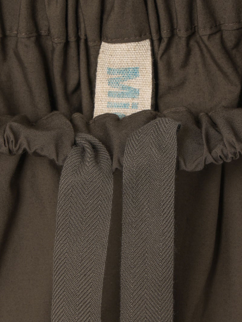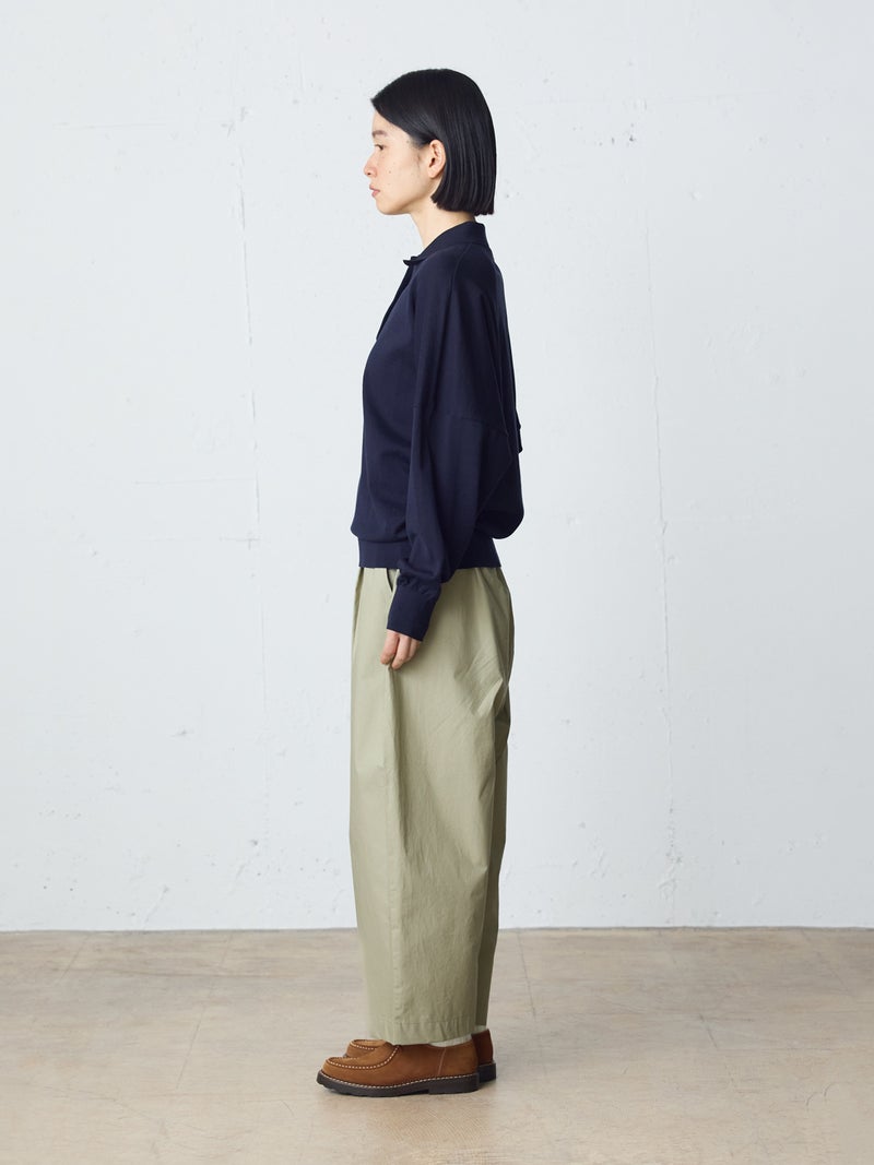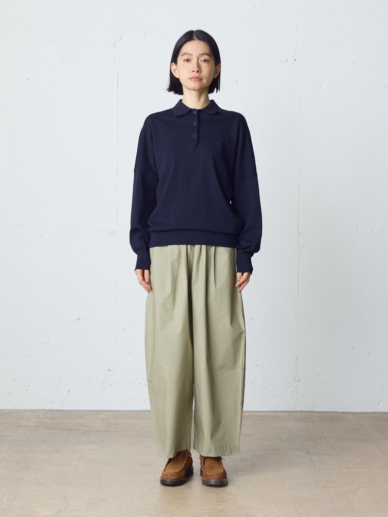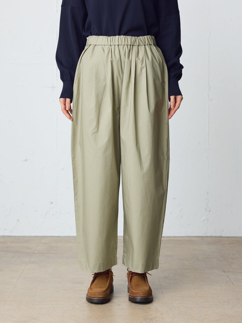 タイプライター素材を使用したワイドイージーパンツが今季新色のネイビーを追加して再入荷しました。生地は薄手で軽く、コシのある質感と繊維が密に詰まった独特の風合いが特徴。ウエストは幅広のゴムに加え調整可能な中紐付きです。サラッとした生地感で肌触りも快適でお洗濯もしやすく、ゆとりのあるワイドシルエットなので通気性もあり夏場にお勧め。少し短めの丈を表現しており小柄な方にもお勧めです。シンプルにベーシックな着こなしを演出できるMidiUmiの定番型ボトムアイテムです。