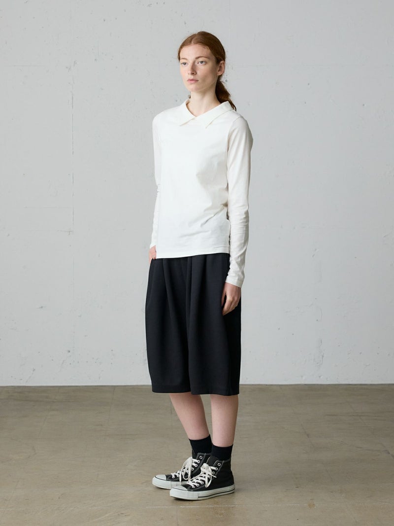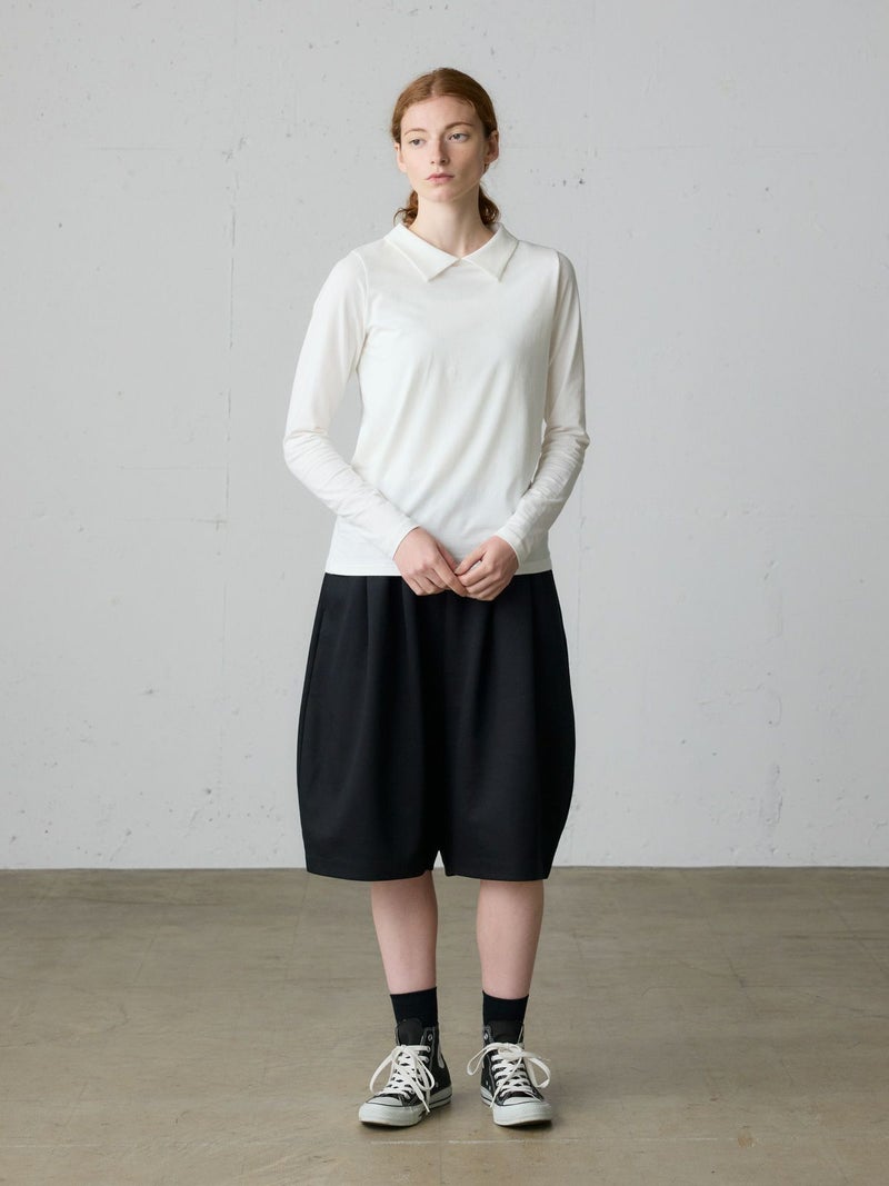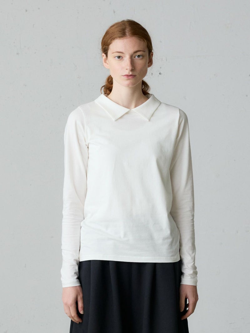 MidiUmi人気の型で定番のアイテムとなったシャツカラープルオーバーが再入荷しました。着回しのしやすいインナー対応のベア天で柔らかく着心地の良い素材を使用。程よいフィット感とストレッチのきいた動きやすいカットソーです。ニットやスウェットのインナーにぴったりと相性が良く早い時期から着用できる1枚。襟の付いた首元はコーディネートのアクセントになり女性らしい清楚な雰囲気を演出できるアイテムです。