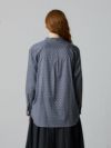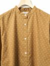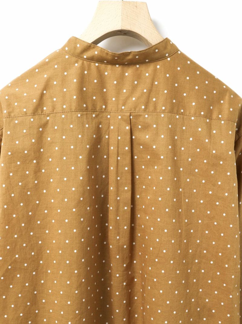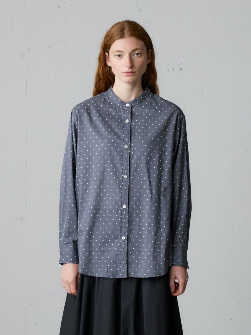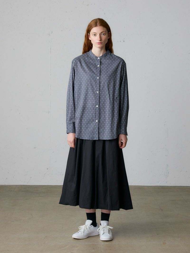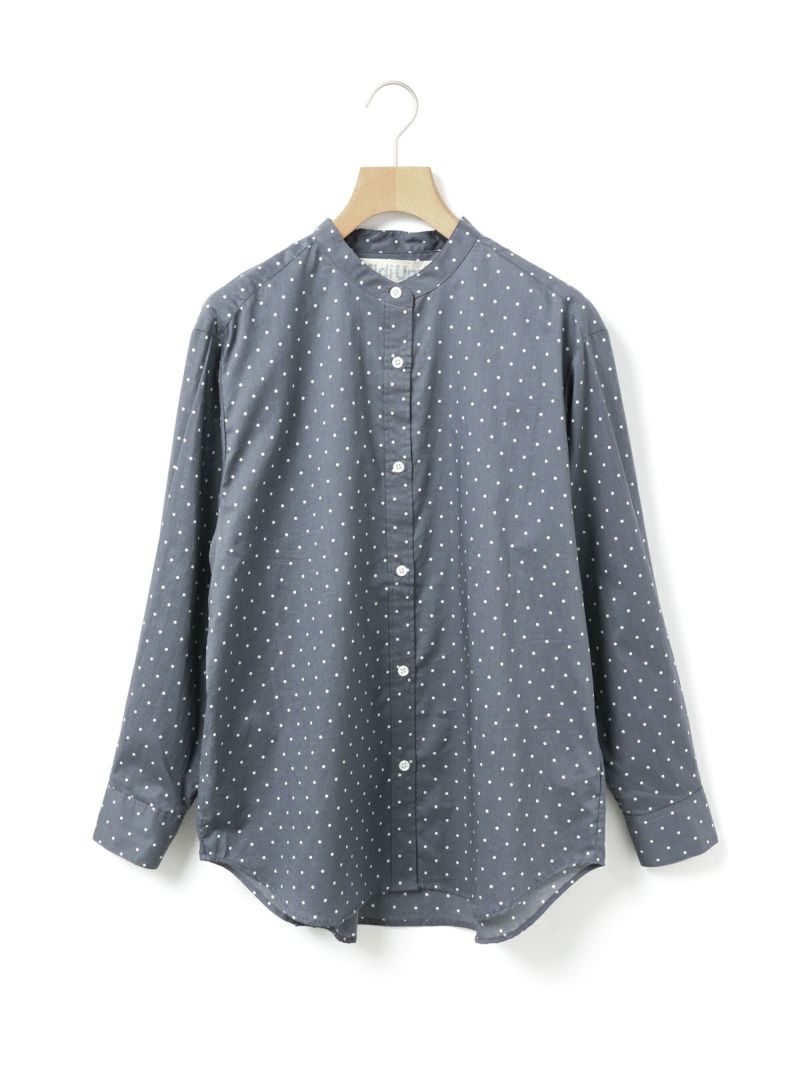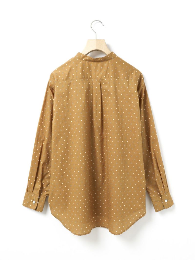 60ローンのドット生地を使用したドット柄バンドカラーシャツです。同シリーズ3-739922/ドット柄ダッチカラーシャツ、3-769921/ドットボリュームパンツも展開。バンドカラーのメンズライクなゆったりシルエットが特徴で肩を前にふらし、肩周りはすっきり見えるように仕上げました。人気のドット柄は大人っぽく着用できる配色を選んでいます。ローン素材なのでサラリと着用していただける1枚です。