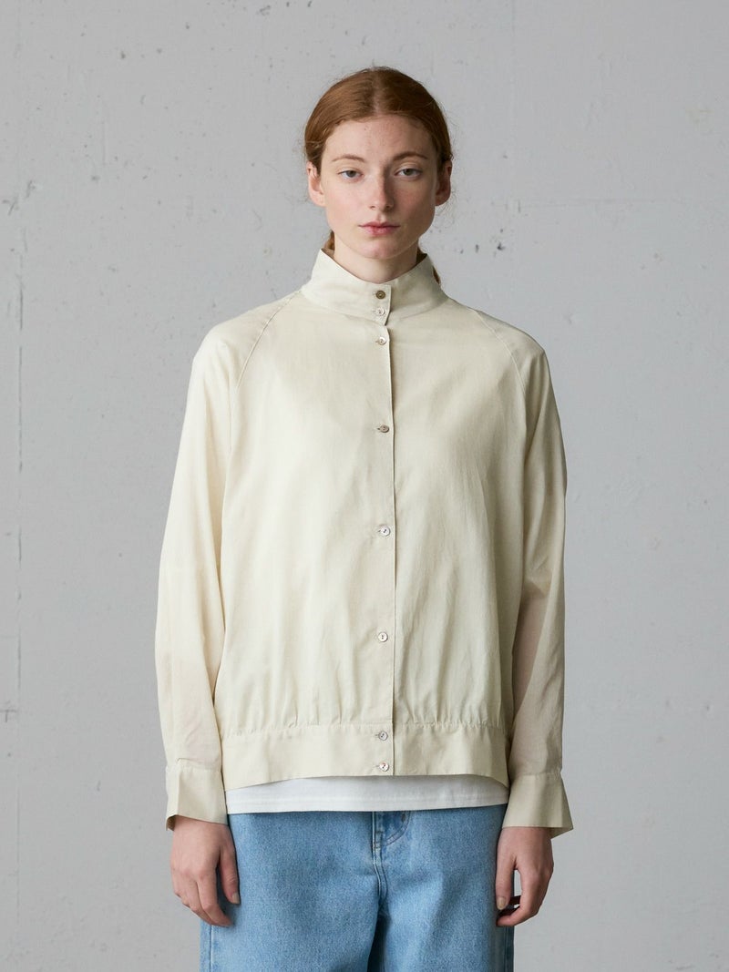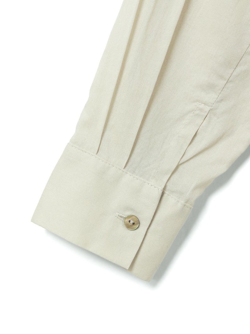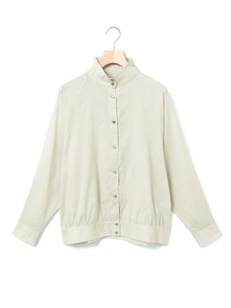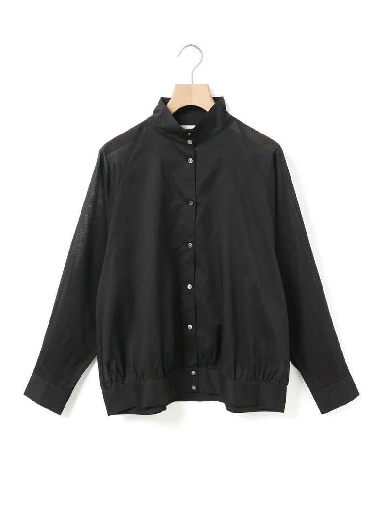 薄手の80ローンを使用したシアースウィングトップシャツ。日差しの強い時期の日よけにもオススメ。中にタートルネックを着用いただき寒くなる時期にも重宝します。春夏で展開した 1-739798/スイングトップシャツ型をフロントボタンにするなどアレンジを行いデザイン変更しています。裾のボタンを留めることでブラウジングしたようなトップスっぽいシルエットにも。季節の変わり目にサラッと羽織っていただける1枚です。