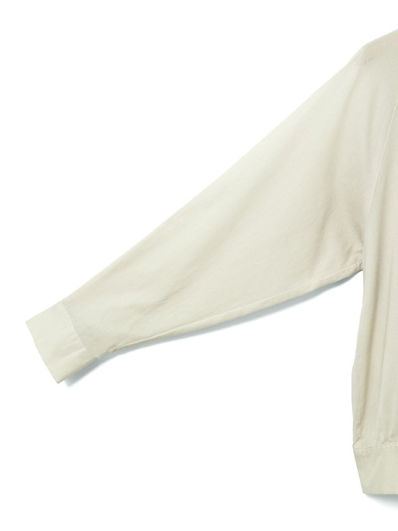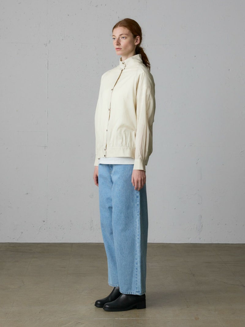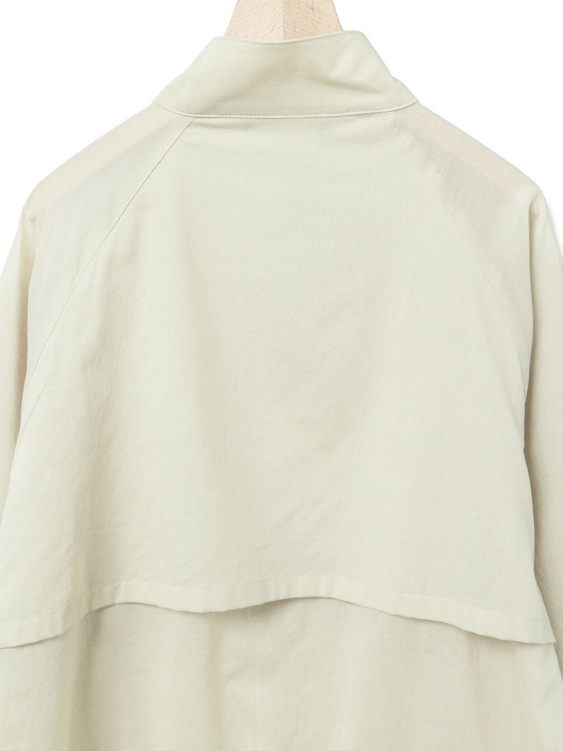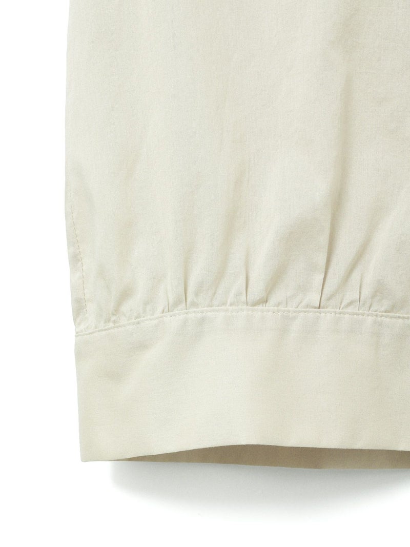 薄手の80ローンを使用したシアースウィングトップシャツ。日差しの強い時期の日よけにもオススメ。中にタートルネックを着用いただき寒くなる時期にも重宝します。春夏で展開した 1-739798/スイングトップシャツ型をフロントボタンにするなどアレンジを行いデザイン変更しています。裾のボタンを留めることでブラウジングしたようなトップスっぽいシルエットにも。季節の変わり目にサラッと羽織っていただける1枚です。