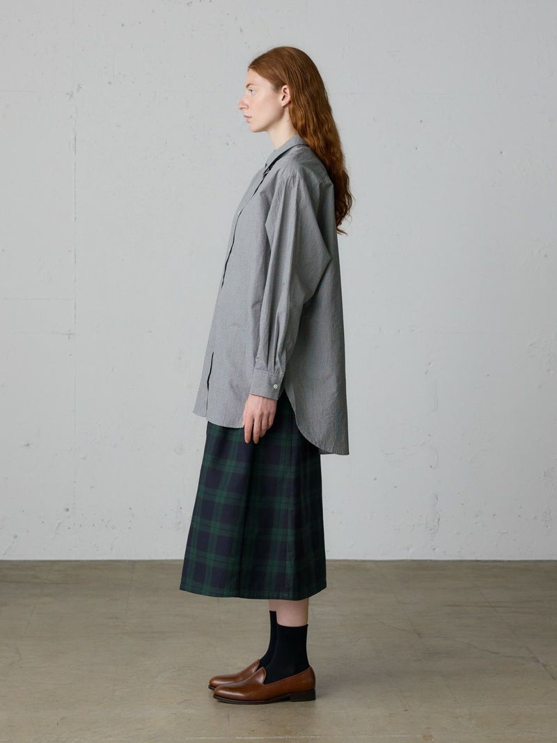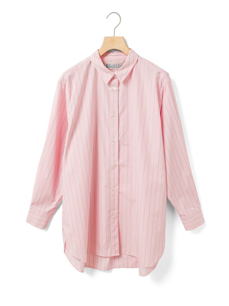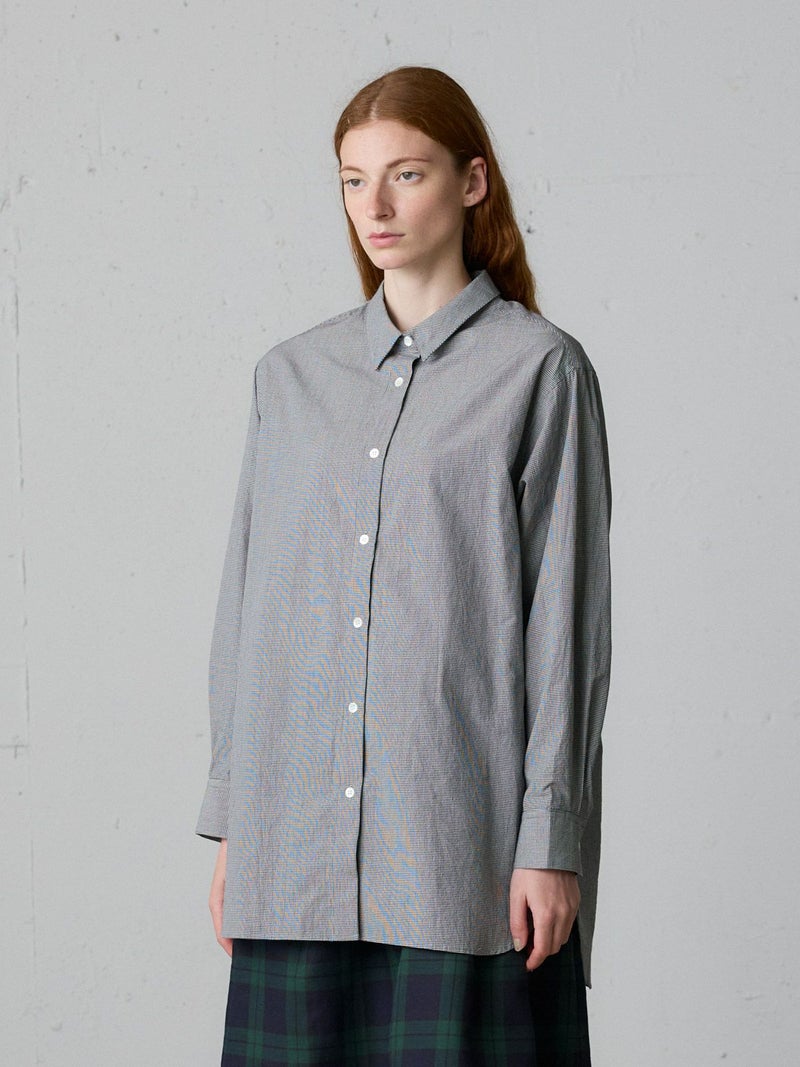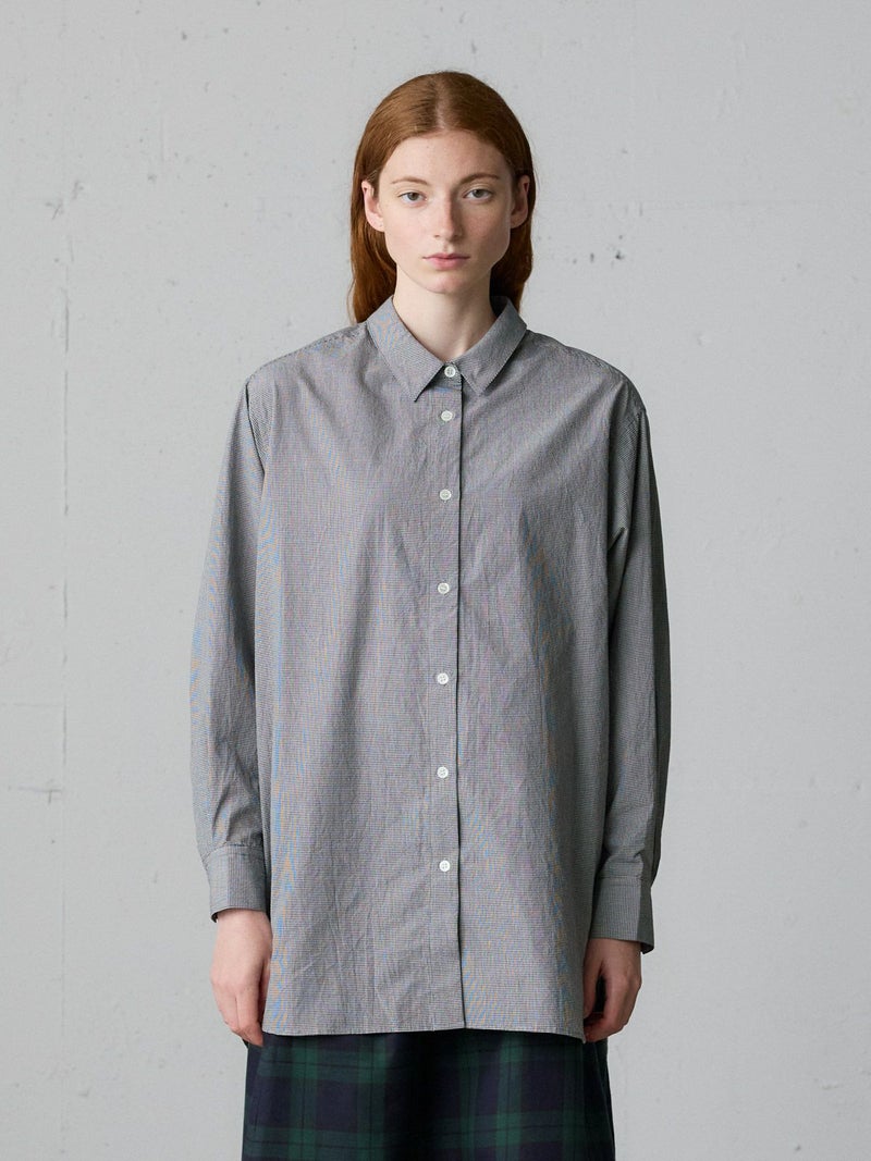 秋にお勧めのベーシックシャツアイテムを演出したパターンワイドロングシャツです。ストライプはブルーとピンク、ギンガムチェックはネイビーとブラックのどちらも各2色の色展開となっています。たっぷりとしたワイドシルエットでヒップもしっかり隠れるロング丈が特徴。ベストを合わせたり重ね着にも重宝します。柔らかなピンクや爽やかなブルーを取り入れて清楚な着こなしを演出します。カジュアルにも着こなせる1枚。同シリーズ3-739993/パターンショートシャツも展開。