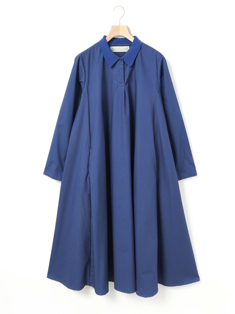 昨年の秋冬で紹介したMidiUmi人気の襟元のポロ襟とボディーのプレンティを組み合わせてデザインしたポロカラープレンティワンピースです。首の開きが少なくカジュアルすぎない雰囲気が特徴。襟は同色のリブニットを使用。上品に広がる女性らしいシルエットが印象的でこの1枚でオシャレを表現。この春は新色を2色追加し新鮮で春らしい爽やかなカラー展開です。色々なデザインのアウターとも相性良く着用できる魅力の1枚です。
