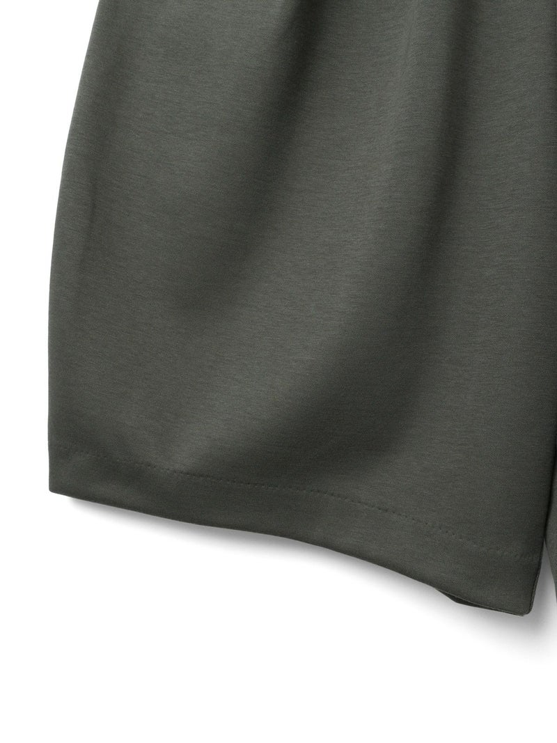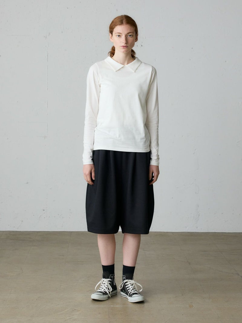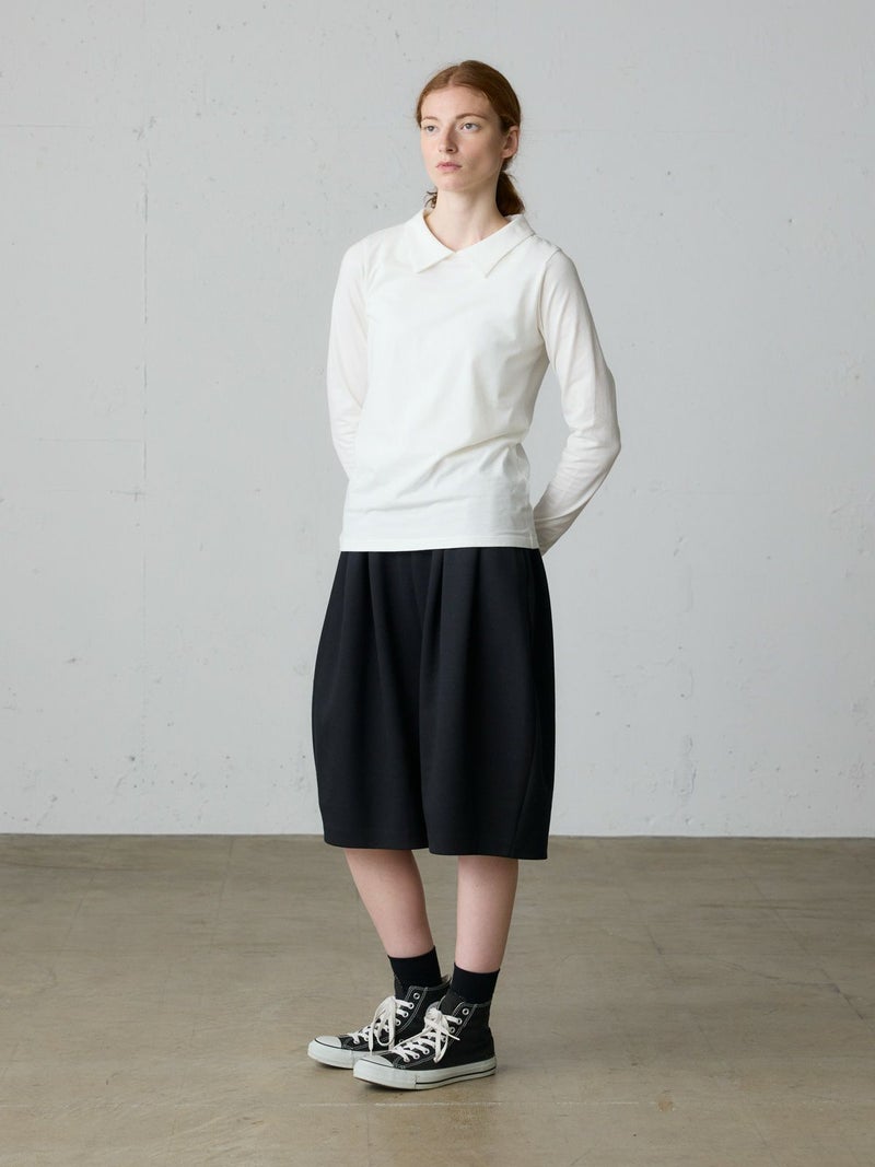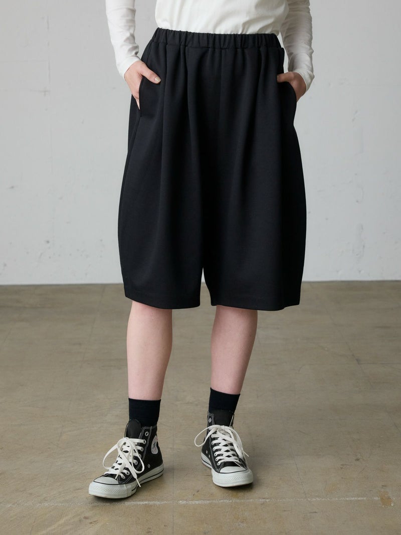 ポリエステル×コットンのダンボール素材を使用したダンボールニットショートパンツです。 3-719926/ハーフスリーブプルオーバー、3-719925/ジップパーカーとシリーズ展開。弾力があり、ふくらみのある素材です。丸みのあるショートパンツでタイツやブーツと合わせた着用がオススメ。きれいめな素材感で大人っぽいショートパンツを演出します。保温効果も高く晩夏から寒い時期まで長く重宝していただける1枚です。