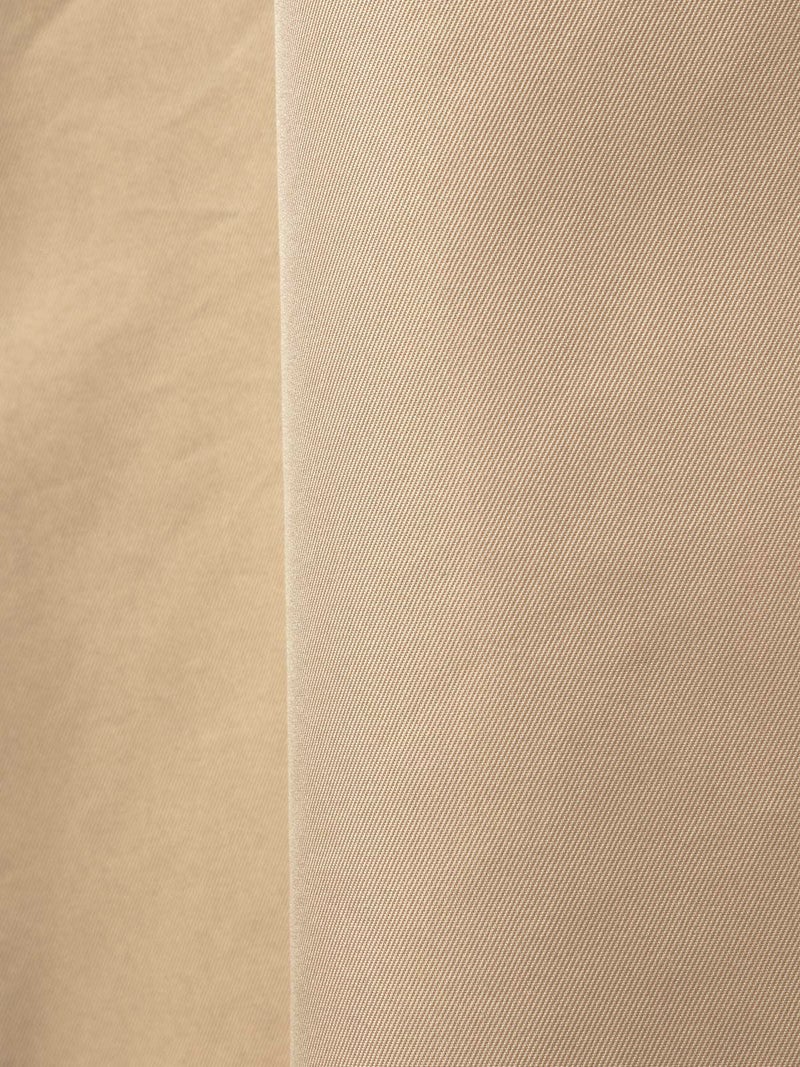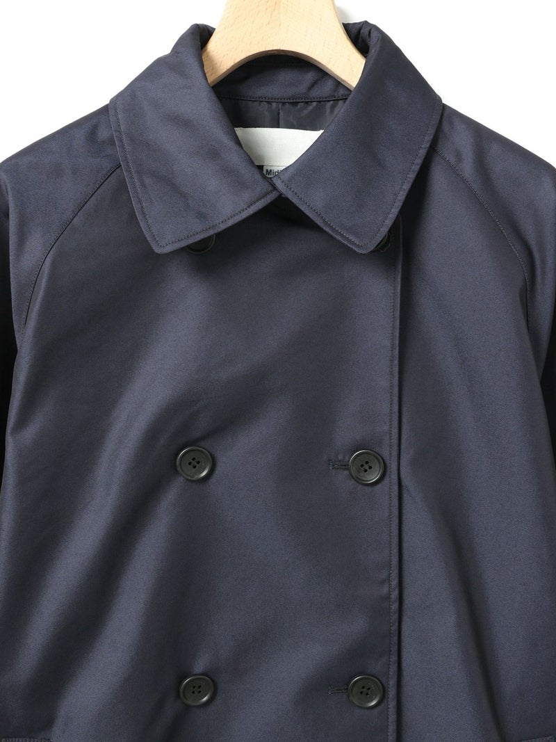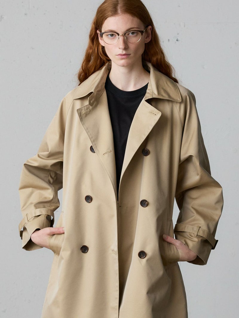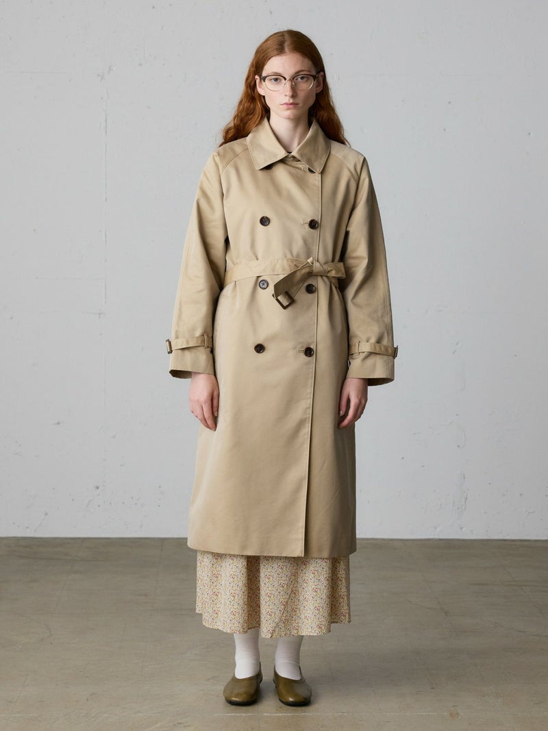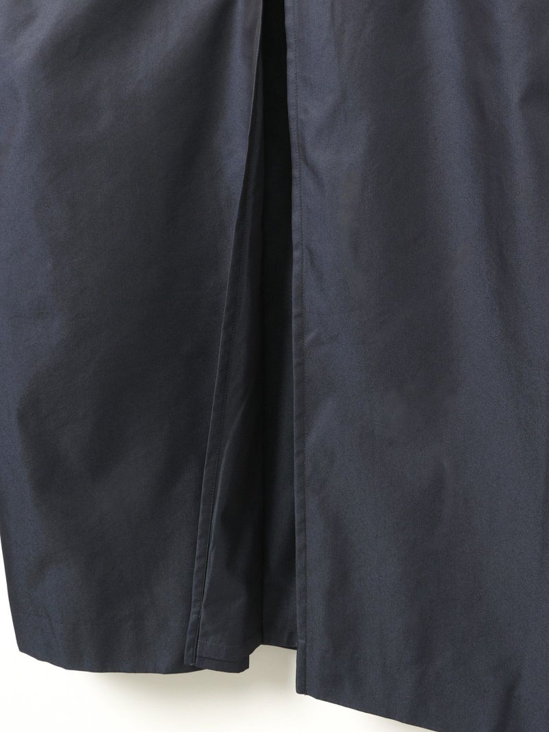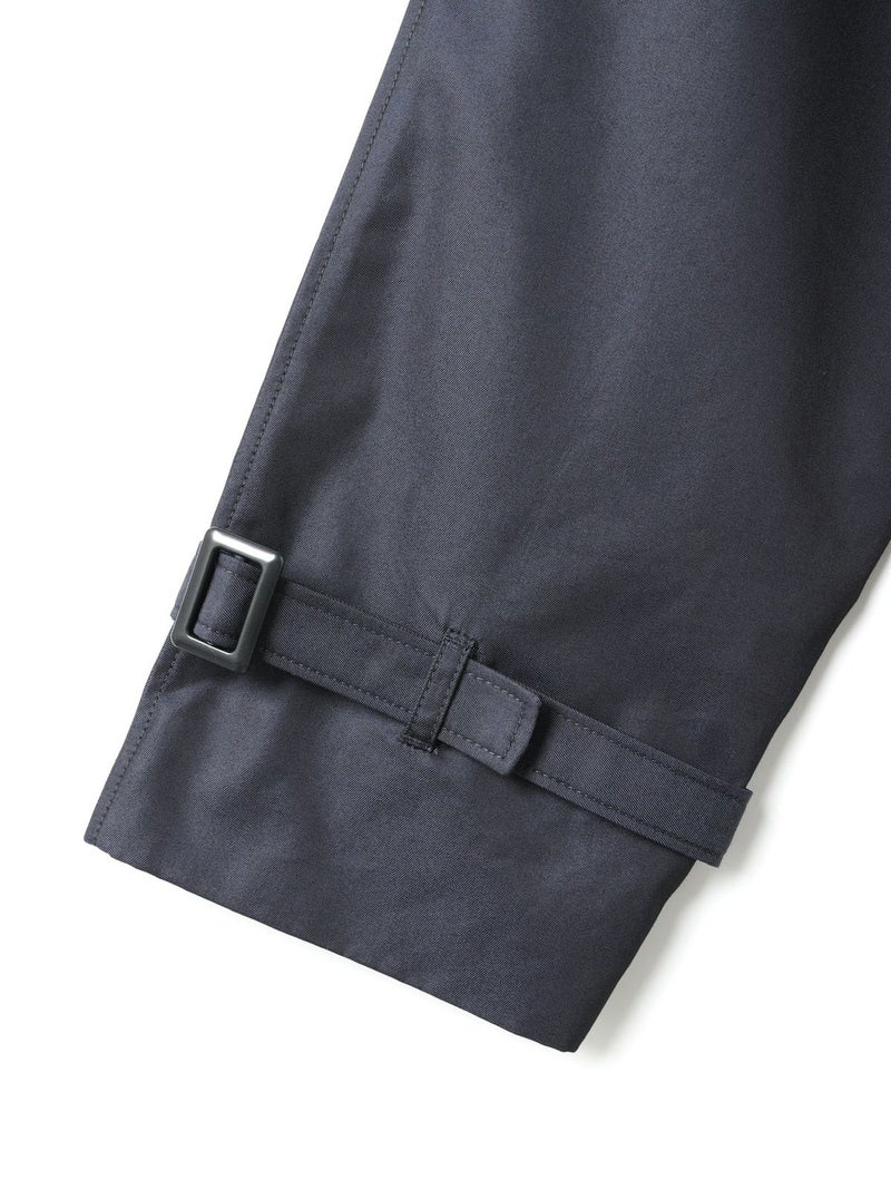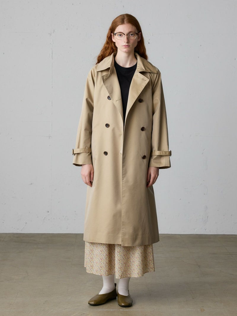 軍用コートから民間へファッションアイコンが着用していたトレンチコートらしさのあるデザインを表現したトレンチコート。シルエットと襟を現代で使いやすいデザインに仕上げています。玉虫調の素材を使用。立ち襟にしたり、ベルト使いで変化を付けたりとアレンジのきくデザインです。ネイビーとベージュの定番色で展開。長く愛用していただけるアウターです。
