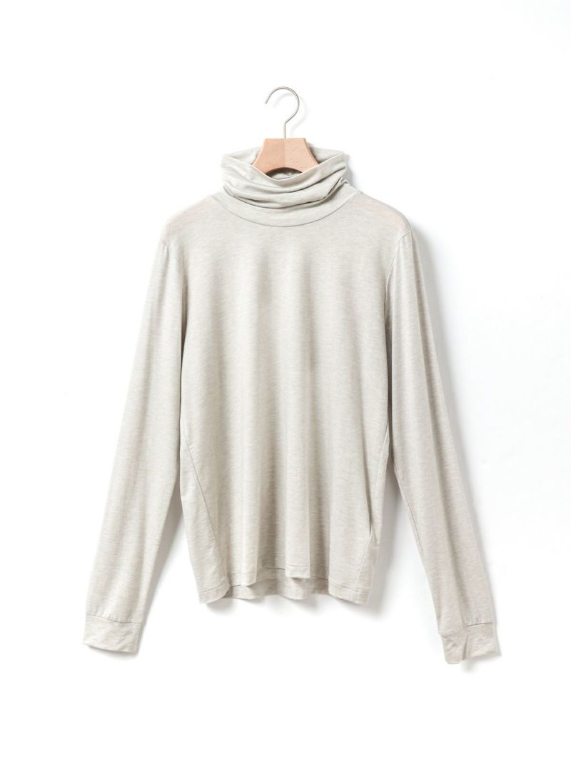 テンセルウールカットソー素材を使用したスムースタッチハイネックプルオーバーです。シンプルなハイネックインナーで光沢感となめらかな肌触り、柔らかさと保温性を兼ね備えたしっとりとした天竺素材でデザインした着心地のよい1枚に仕上げました。程よくゆとりのある首元でインナー使いに重宝できるアイテムです。着回しのきく落ち着きのある上品な色展開も魅力的です。