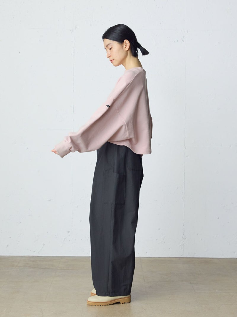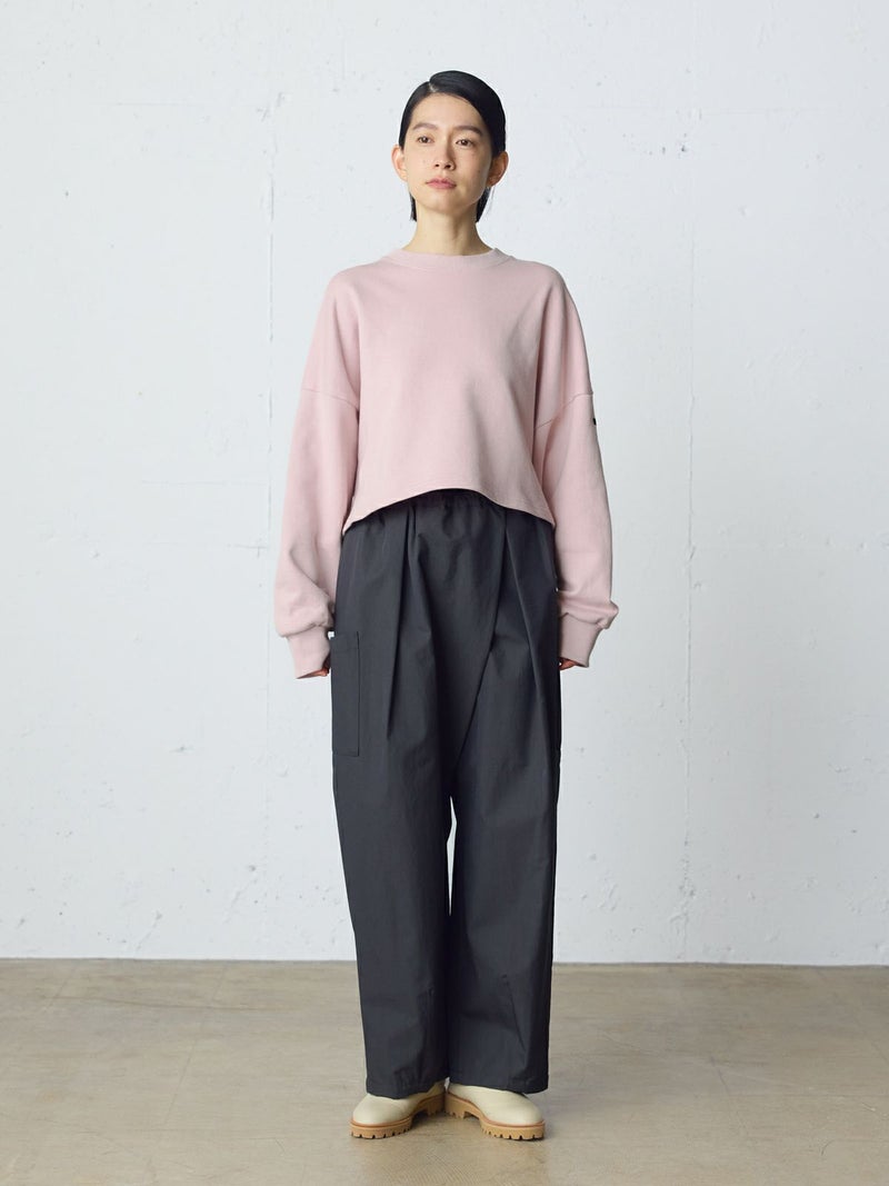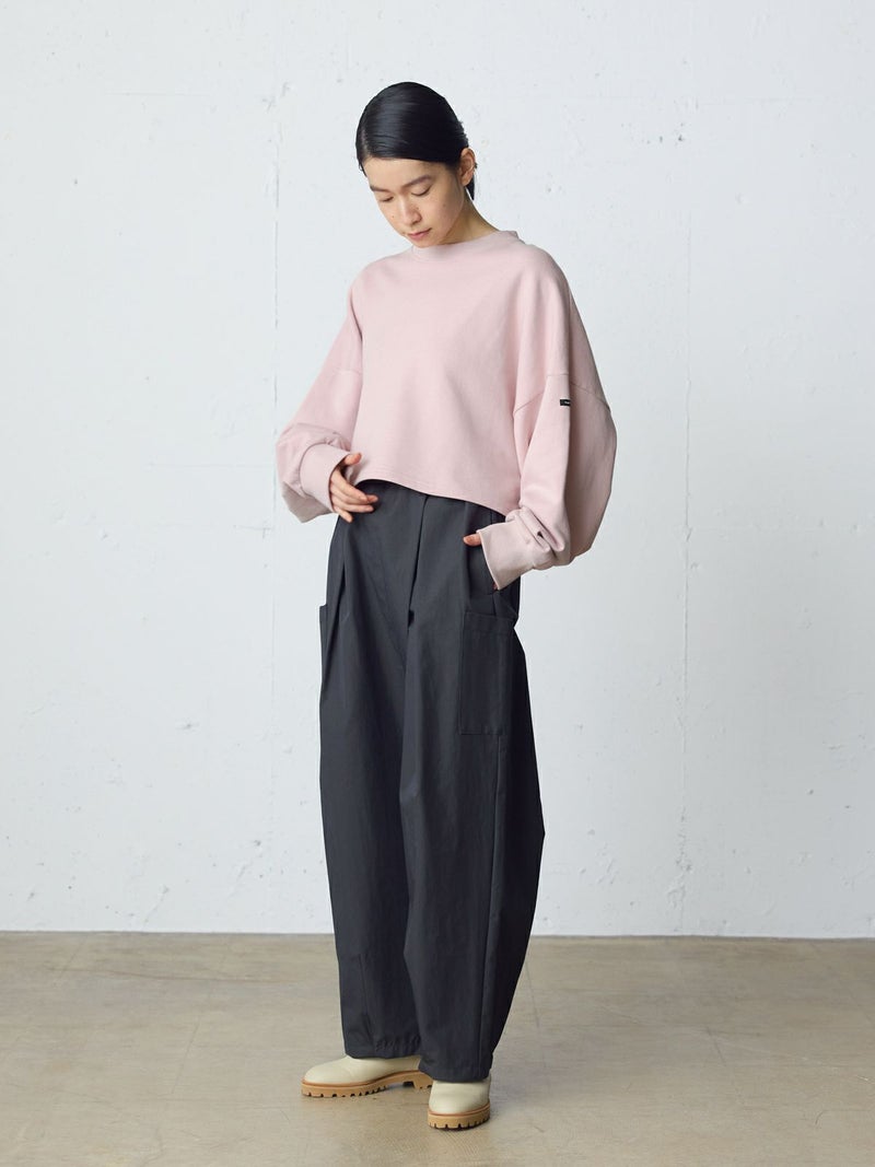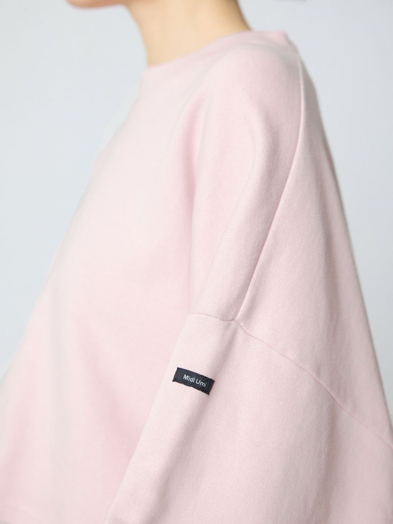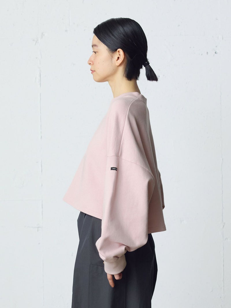 適度な保温性と高い吸水性のあるショートスウェットプルオーバーです。蒸れにくいスウェット素材を使用。レイヤードしやすいショート丈が特徴でシャツと合わせて着用いただくのがオススメです。肩位置から下で袖の切り替えを施したデザインで、動きのあるたっぷりとした袖丈がポイント。左袖にMidiUmiのブランドネームが付いています。優しい色合いのパステルカラーが春の季節感を演出してくれます。同シリーズ4-710040/ワイドスウェットプルオーバーも展開。