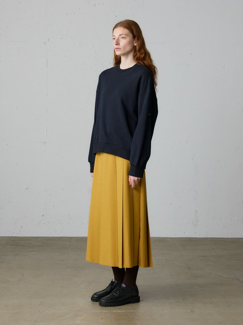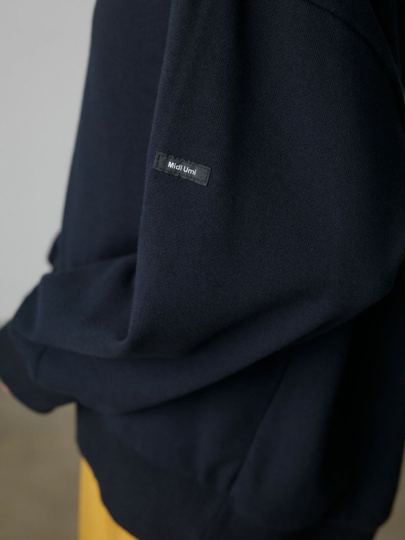 MidiUmiの定番アイテムでもあるワイドスウェットプルオーバーが今季、カラー展開を変更し再入荷しました。裏毛を使用した温かで着心地の良い1枚。秋の立ち上がりに重宝していただけるアイテムで、季節感を取り入れたカラーを差し色に取り入れています。ザックリと着こなせボトムも様々とコーディネートができる着回しアイテムとなっています。左袖にMidiUmiのブランドロゴ付き。