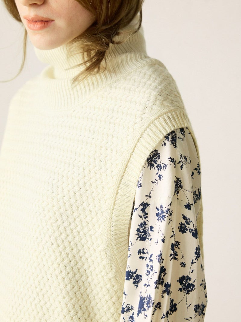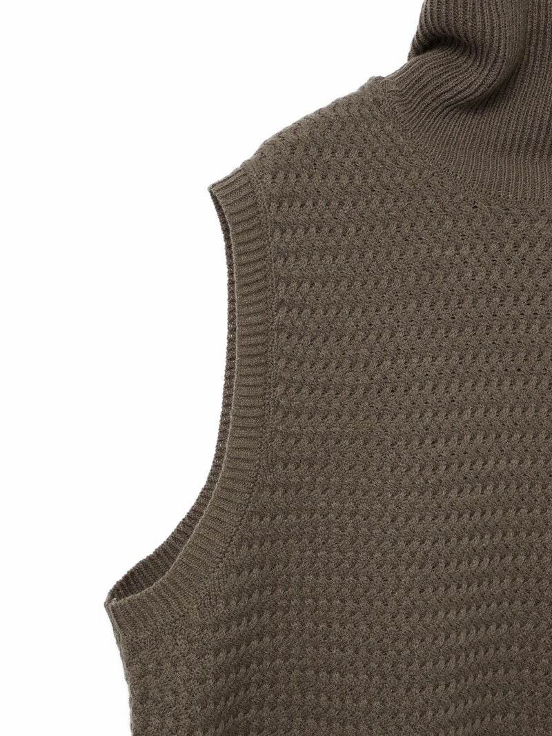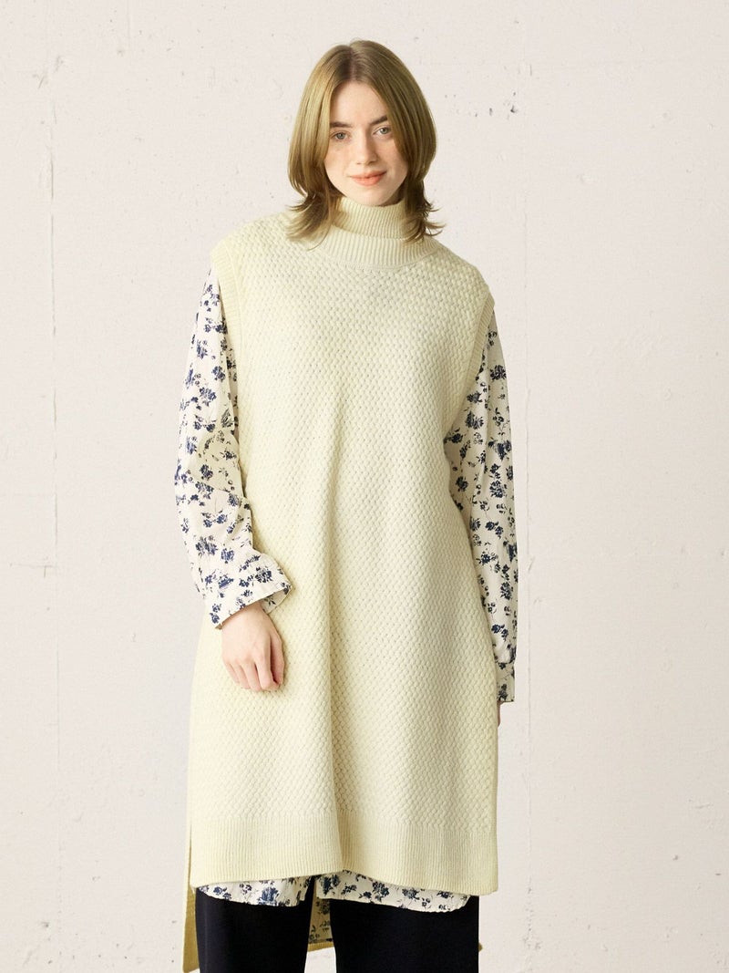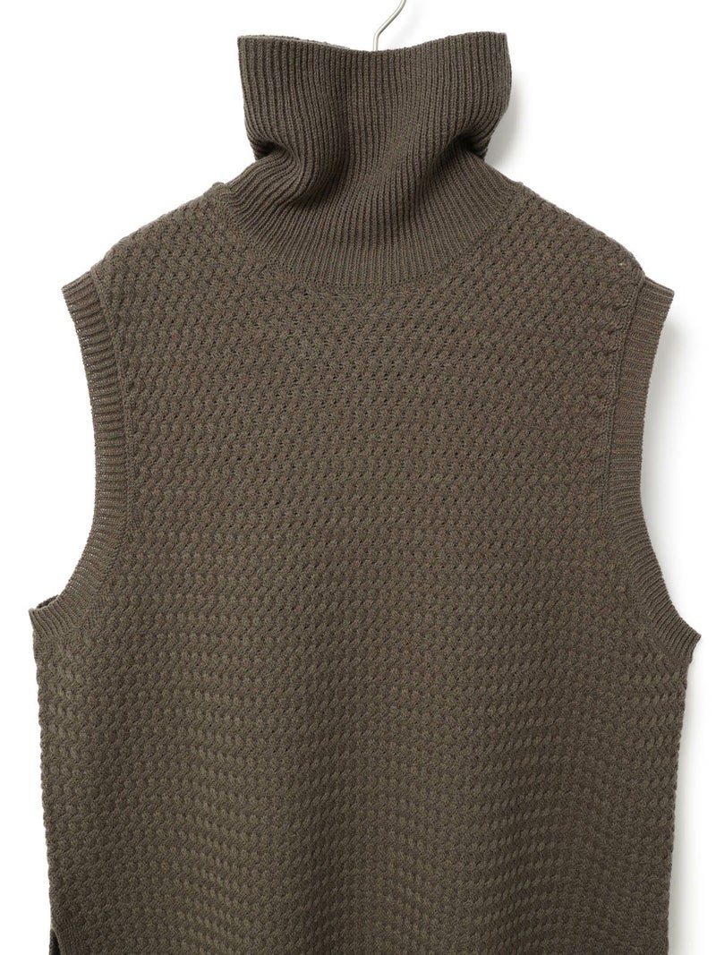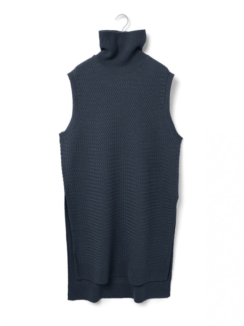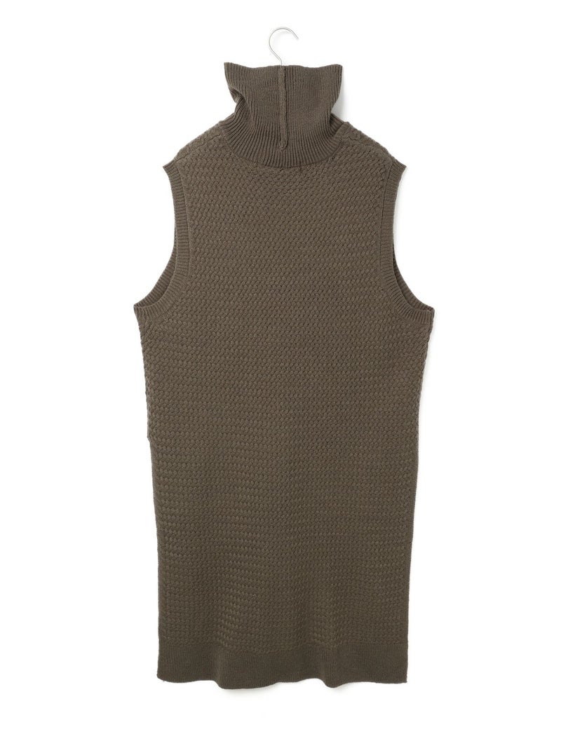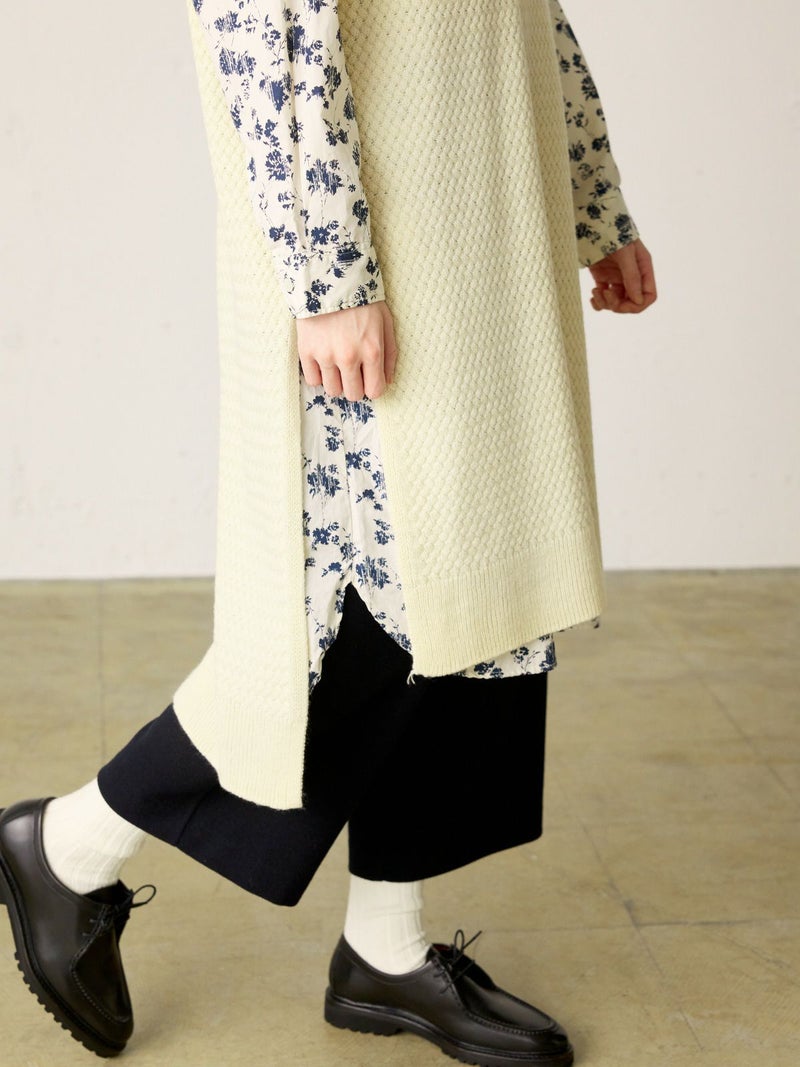 バスケットケーブル編みが特徴のアントレラックロングベストです。同ニットシリーズで4-729708/カーディガンと4-729709/プルオーバーも展開。ざっくり編んでいるので軽くて温かい1枚。脇から深くスリットの入ったデザインで前後差の付いたニットベストです。タートルネックの首元は風通しがなく首を包んでくれます。色々なアイテムにコーディネートしていただけます。特にワンピースとの合わせもオススメです。