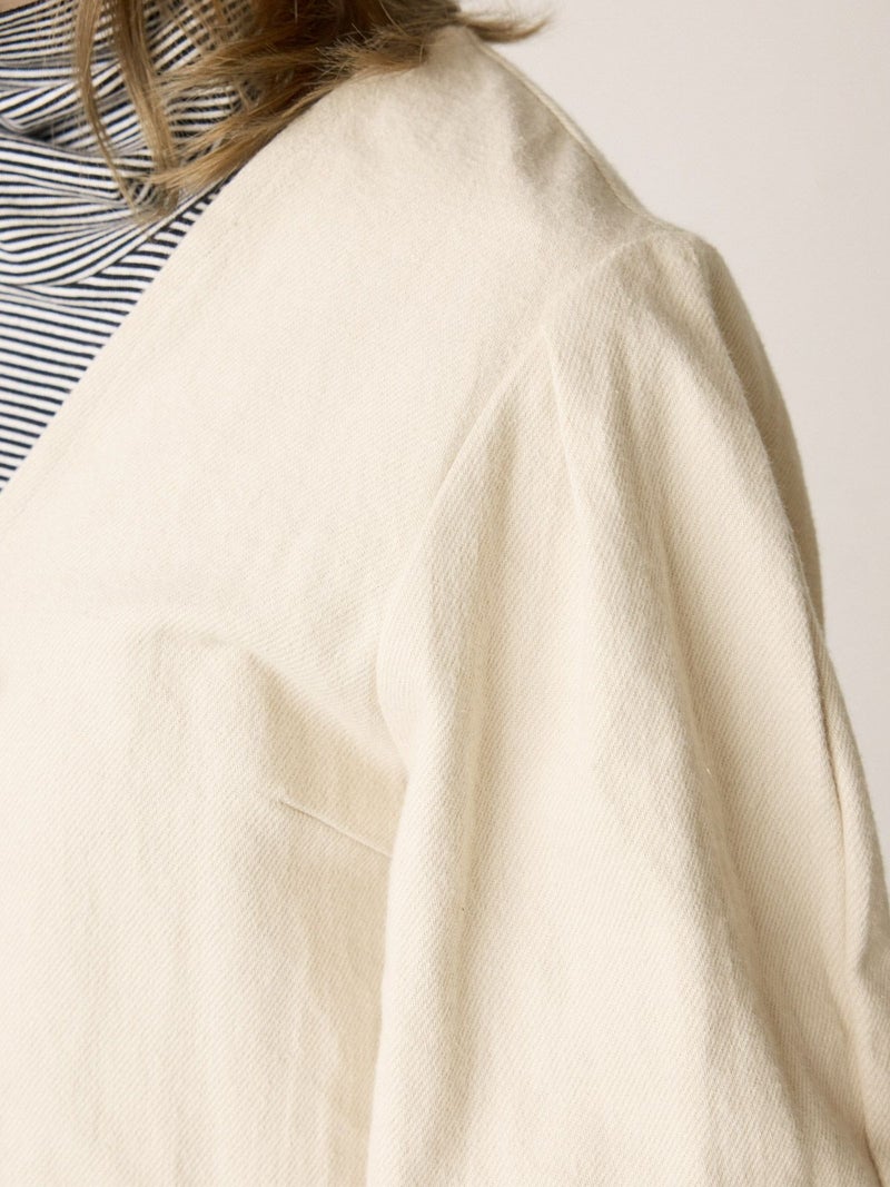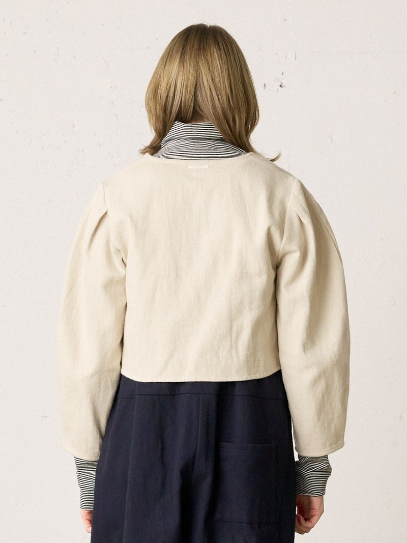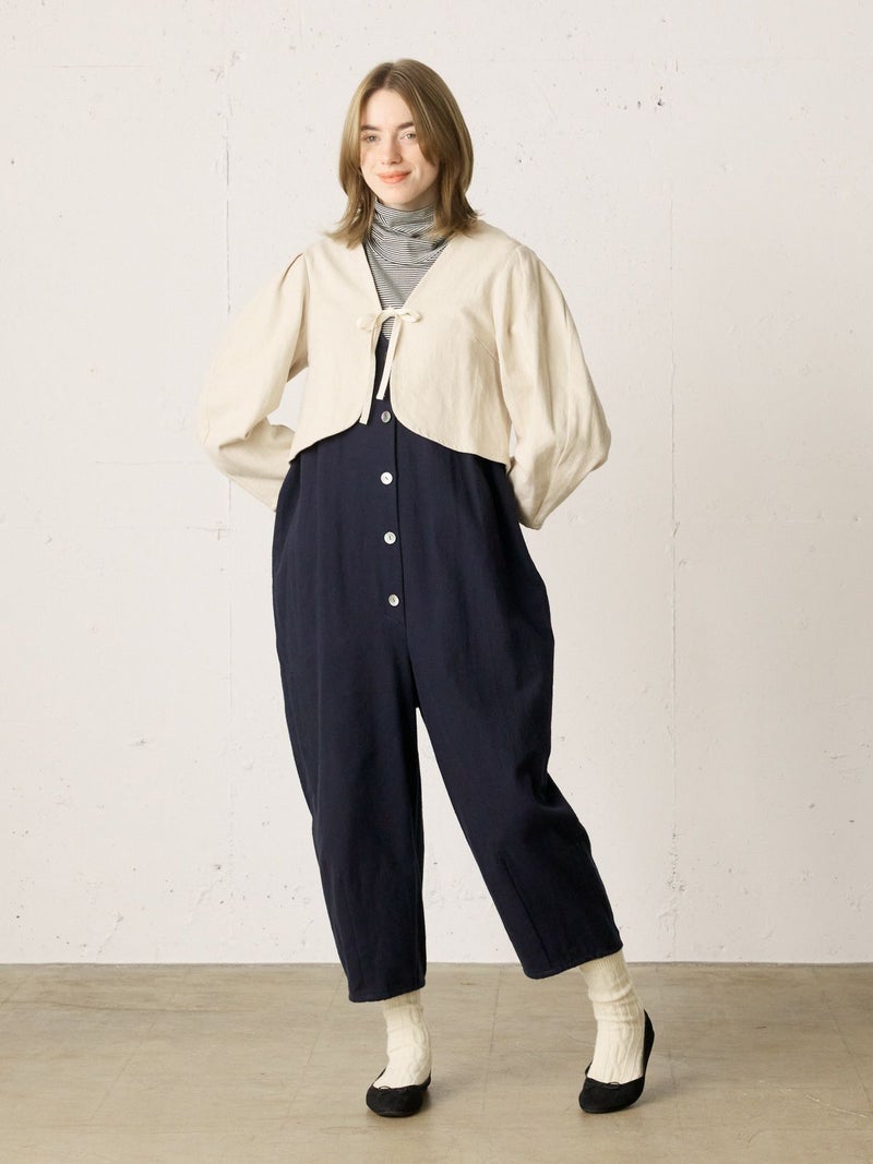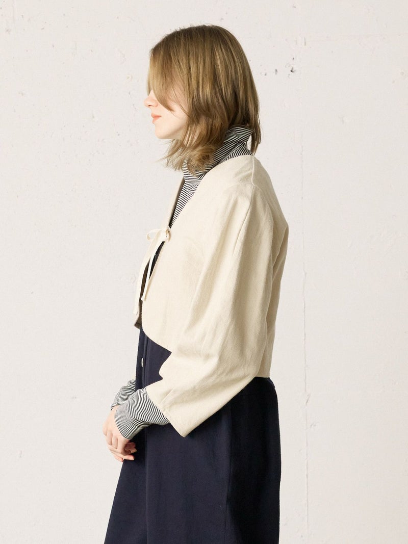 【HOMEシリーズ】粗野感、厚みと程よい固さのあるコットンネル素材を使用したオーガニックフランネルボレロです。シリーズとして4-751022/オーガニックフランネルオールインワンも展開。袖に丸みのあるボレロタイプのカーディガン。袖に余裕があるので重ね着がしやすいのもポイント。寒い季節でも羽織やすいデザインとなっています。ショート丈で身頃はコンパクトで女性らしい雰囲気を印象付けた羽織りアイテムです。優しいベージュとネイビーの2色展開。