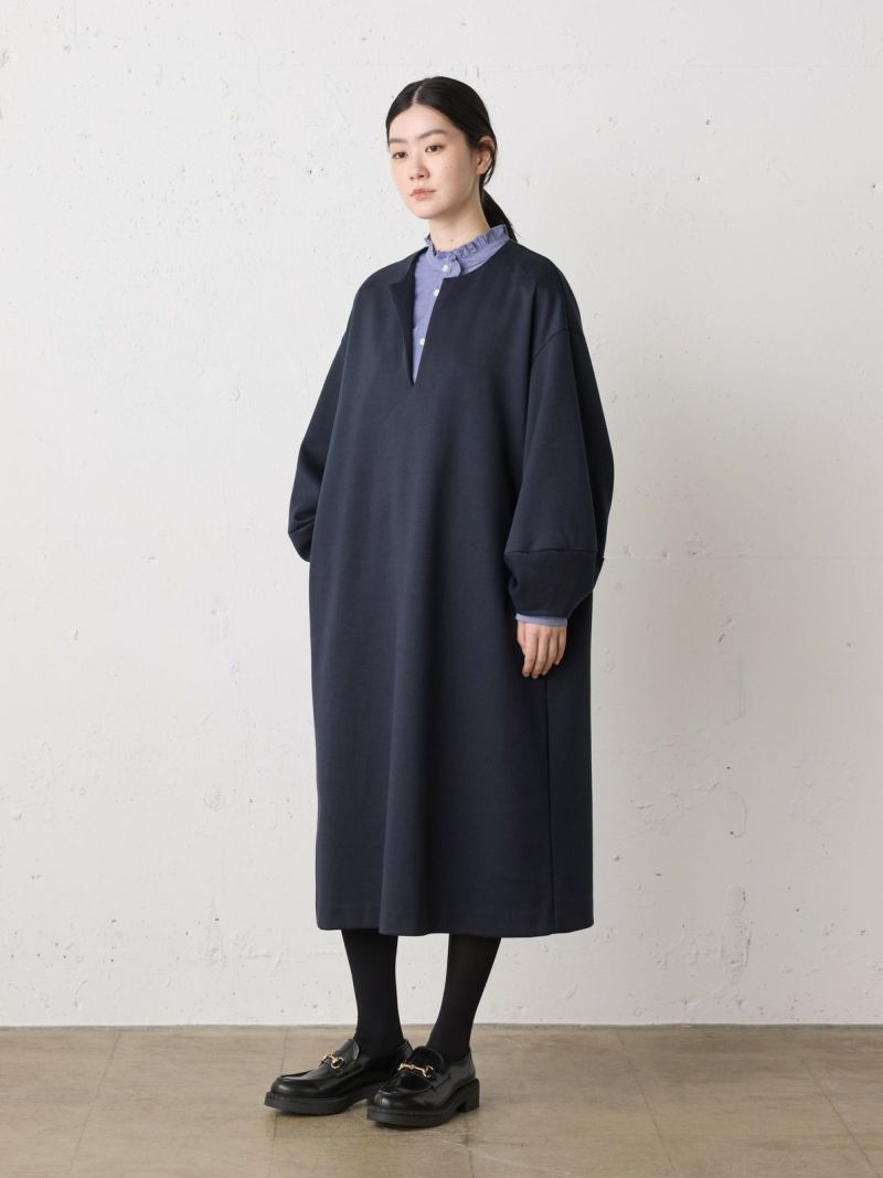 オーガニックコットンとリサイクルポリエステルを使用したスムースダブルニットスキッパーワンピースです。人気のダンボール素材を使用した軽くて温かな1枚。程よいツヤ感ともちもち感が魅力的。コクーン袖がポイントで女性らしい雰囲気のきれいめに使えるワンピースです。透けないので1枚でも着用いただけます。インナーはシャツやタートルなど重ね着もしやすく、首元のオシャレを楽しんでいただきやすいデザインです。シックなカラー展開で、気軽に着用できることもあり1枚あると大変重宝していただけるワンピースです。