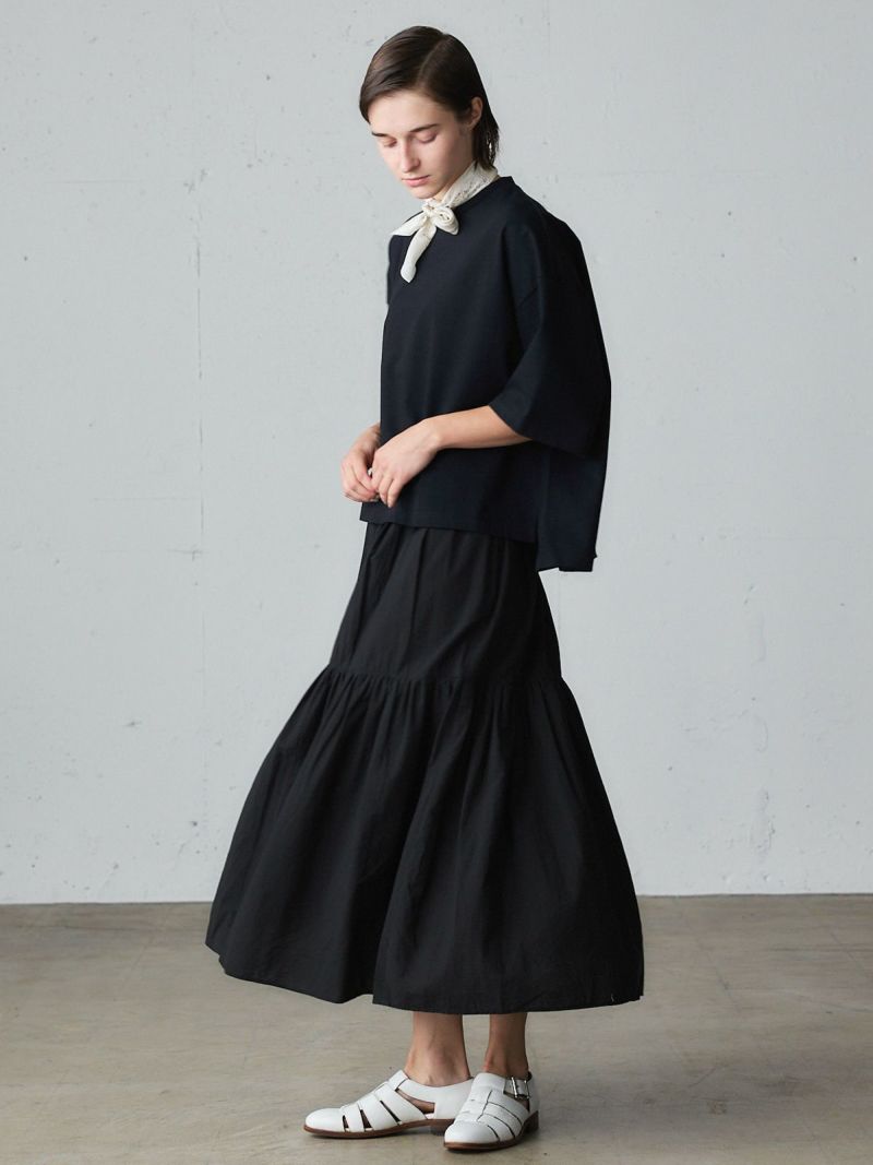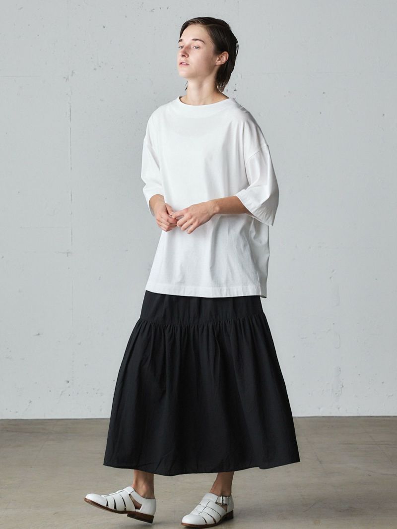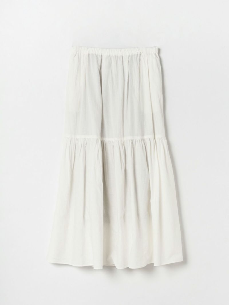 ナチュラルな風合いのコットン×リネンシリーズのティアードスカートです。レイヤードにもお勧め。切替下からボリュームが出るロング丈で軽くフンワリとしたシルエットが魅力の1枚です。ウエストはゴム使用に加え中紐付。ペチコート付なので透け感を気にすることなく気軽に穿いていただけます。通気性があり涼しく夏の暑い時期まで長く愛用できるスカートです。