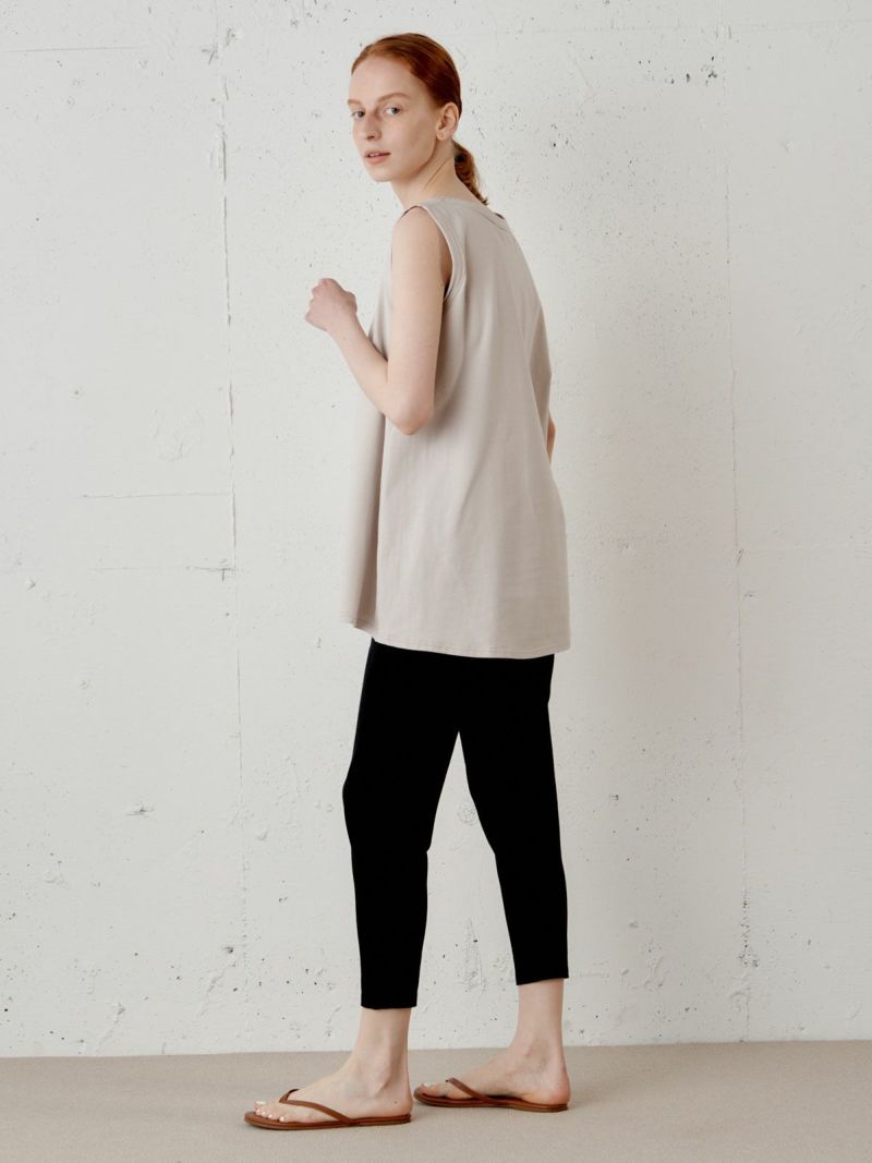 オーガニックコットンのベア天竺素材を使用したレギンスです。ポリウレタン混にすることで型崩れしにくく、ストレッチ性がプラスされ着心地抜群の1枚。股上は深く、テーパード型なのでスッキリとしたシルエットを印象付けます。レイヤードアイテムとして大変重宝するアイテムでウエストもゴムに加え紐付の大変穿きやすいデザインに仕上がっています。コーディネートのしやすい3色展開。